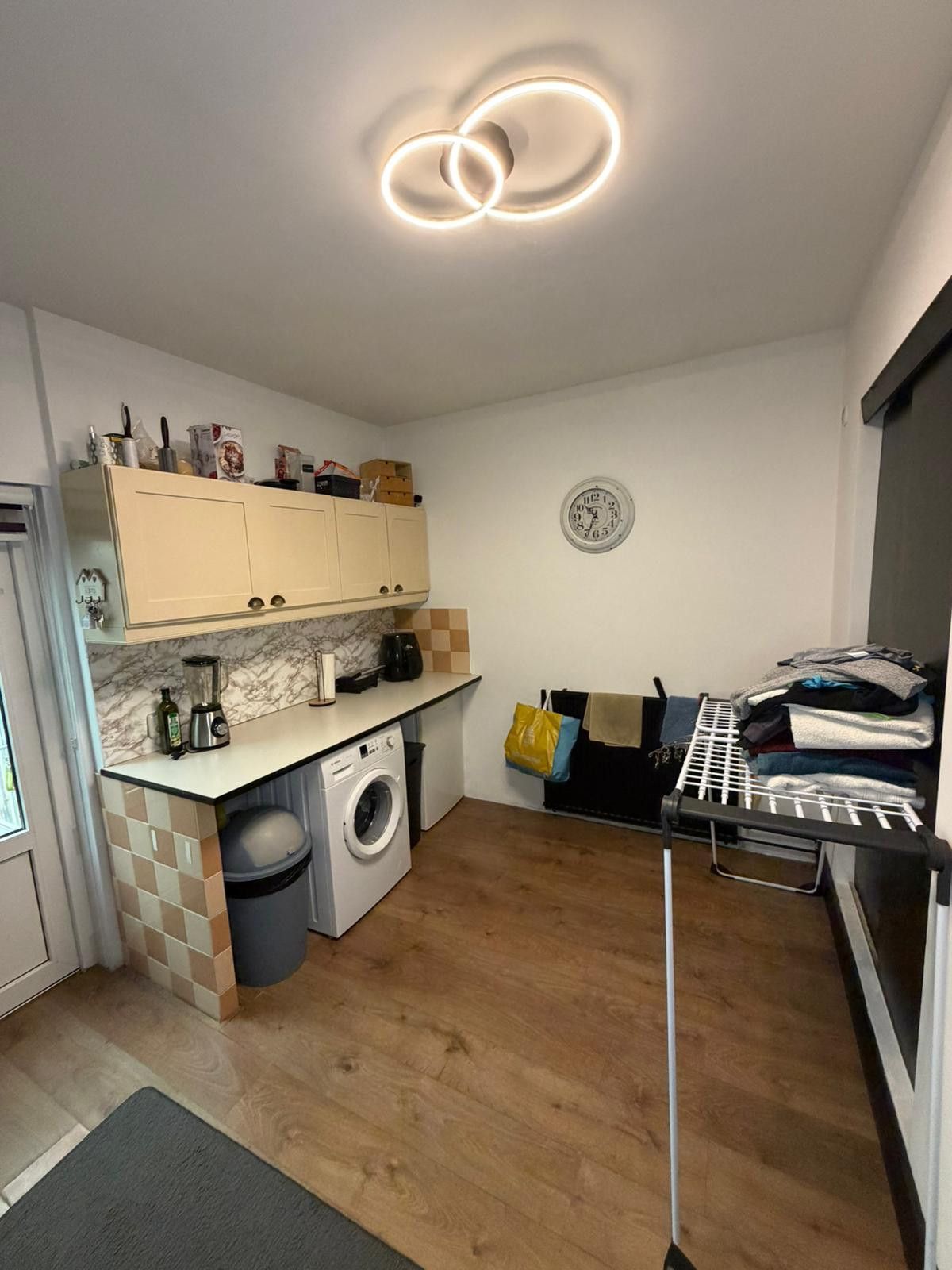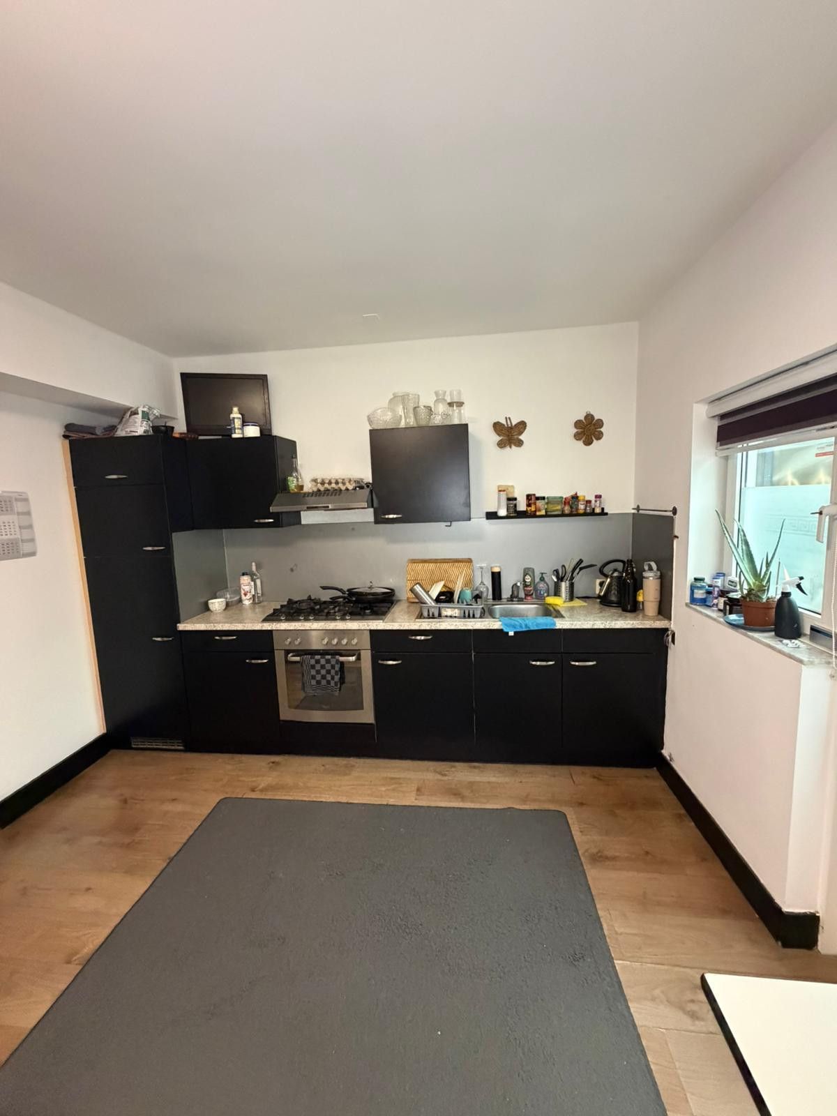 Leefkeuken (4.45m x 3.70 m) met aanbouwkeuken, voorzien van gasfornuis, afzuigkap en vaatwasser.