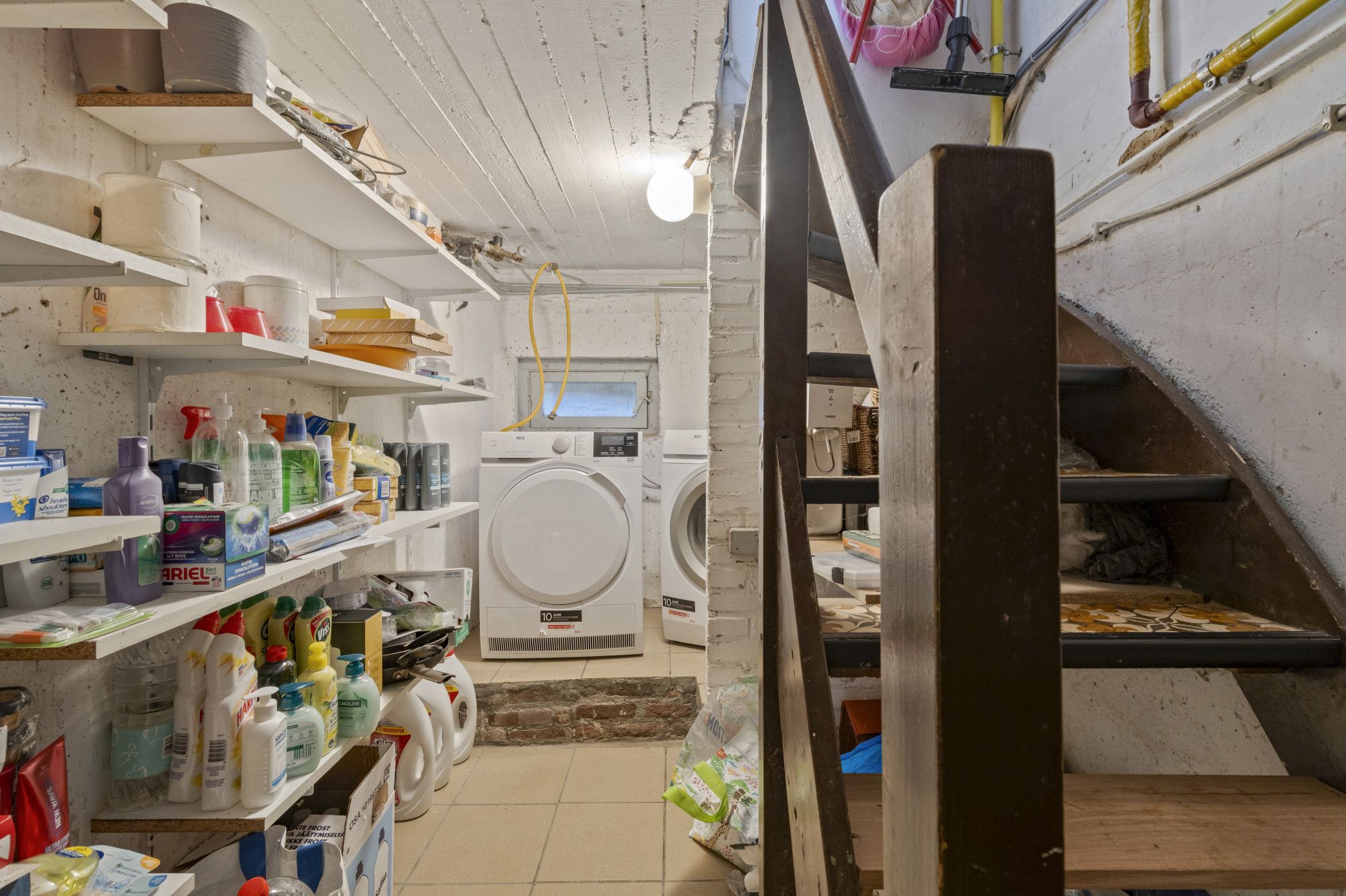 Praktische provisiekelder met volop opslagmogelijkheden en aansluiting voor de wasmachine.