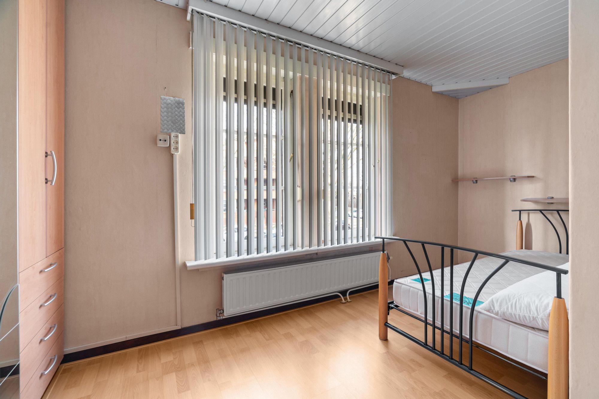 Slaapkamer (4.65mx3.03mx2.42m) met laminaatvloer en airco.