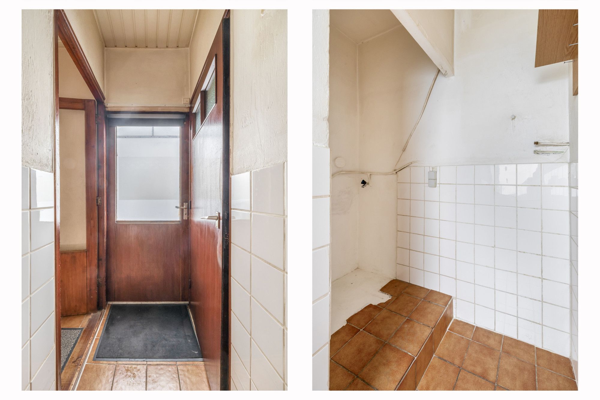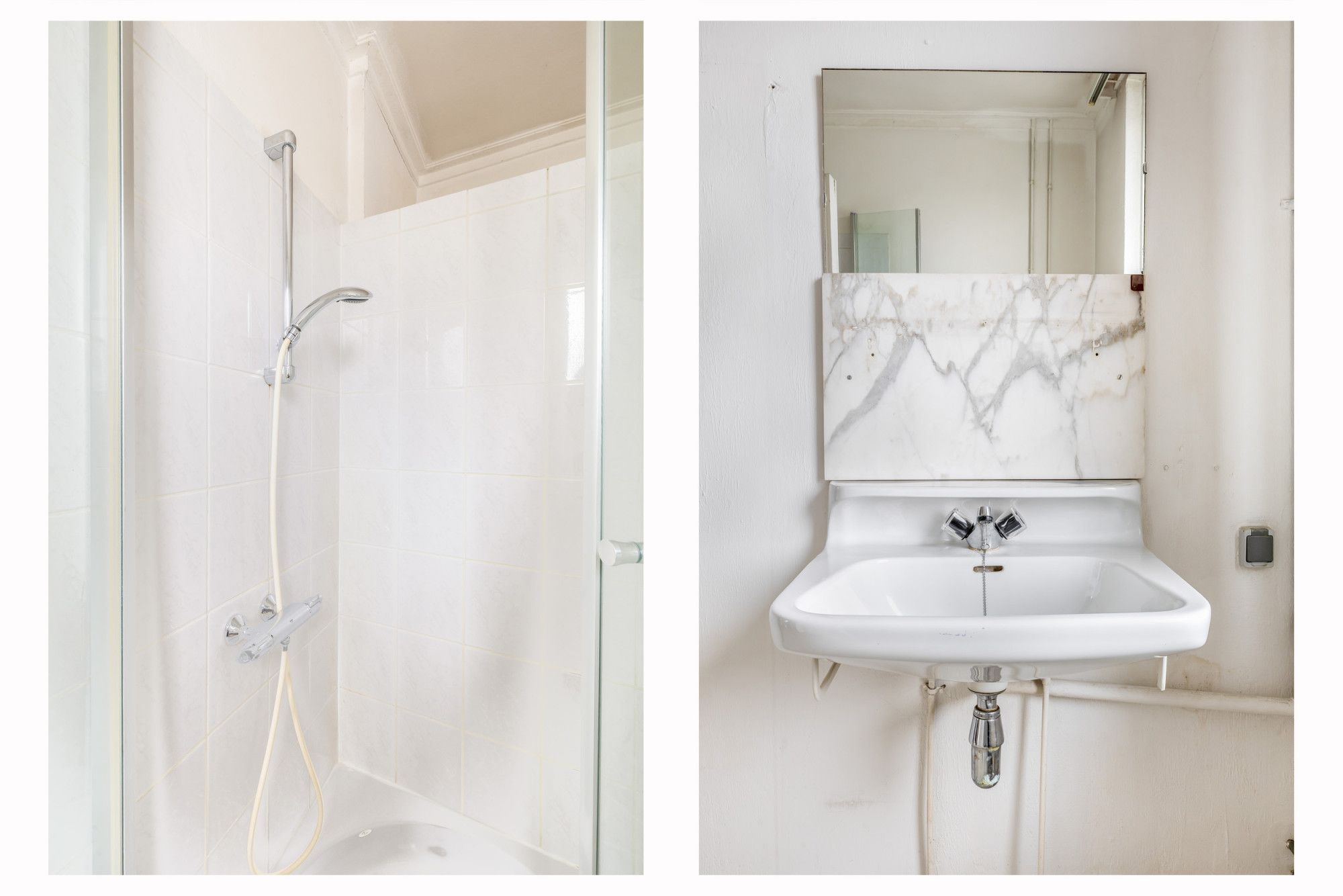 De badkamer is gedeeltelijk is voorzien van een wastafel, 2e toilet en douche.