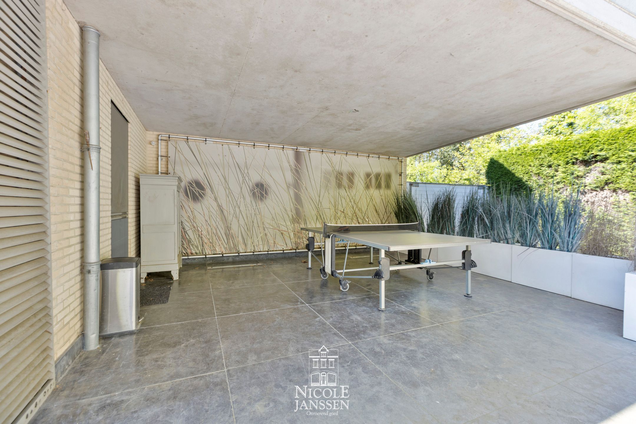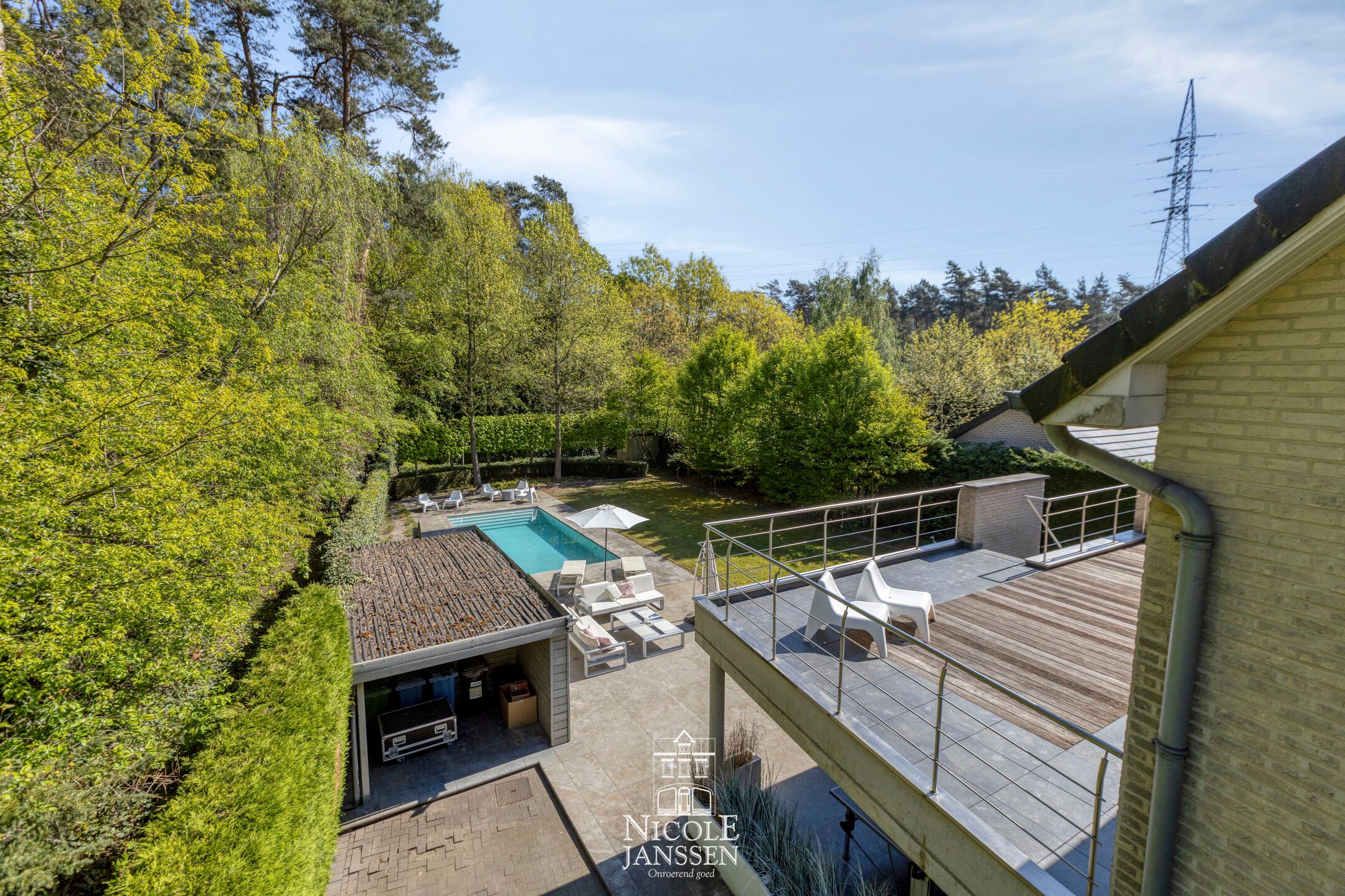 - Ruim terras met zicht op de aangelegde tuin met zwembad, uitgerust met elektrische screens