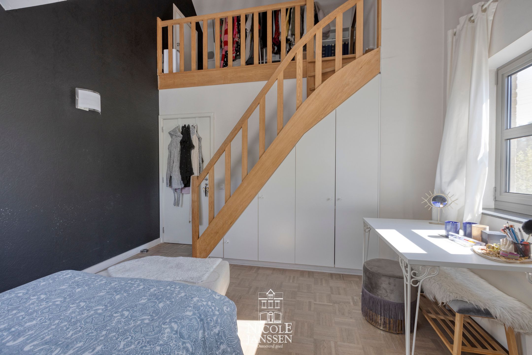 - Vierde slaapkamer voorzien van praktisch vaste kastenwanden en een trap naar een hoger gelegen dressingruimte