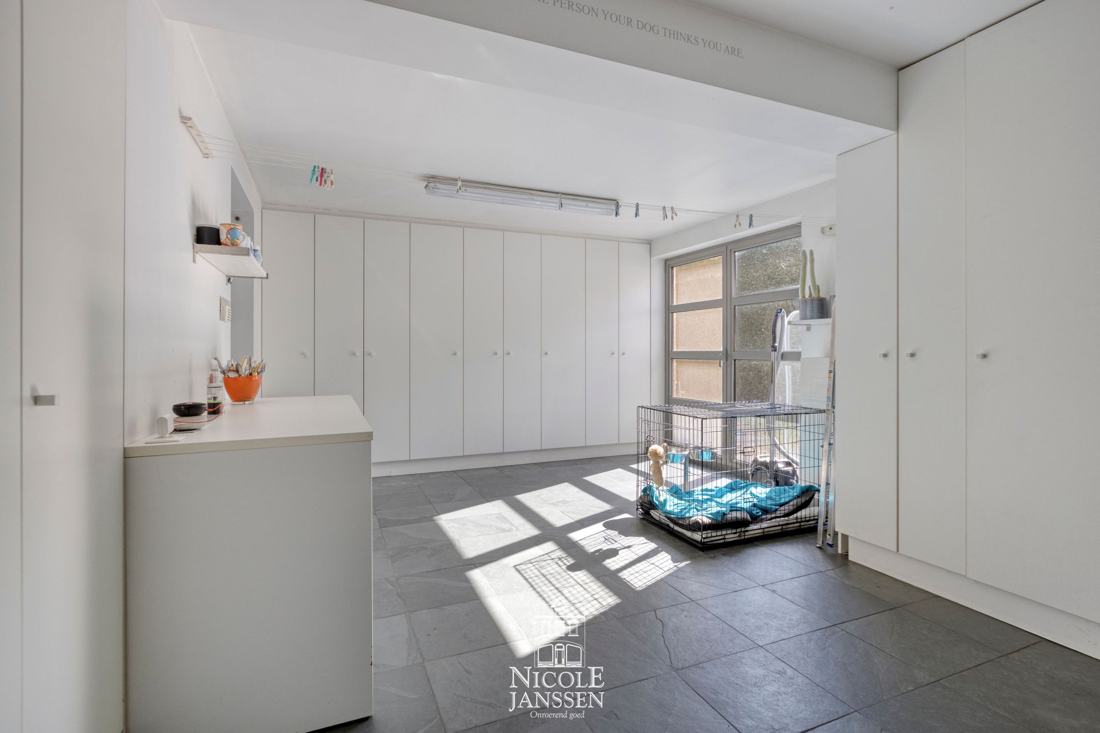 - Een praktische wasplaats met ingebouwde kastenwanden