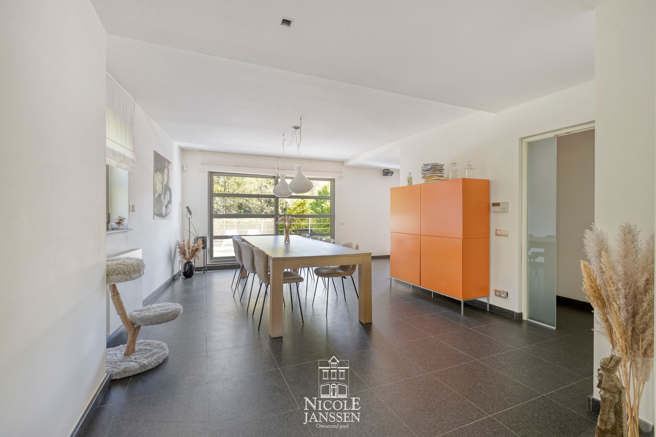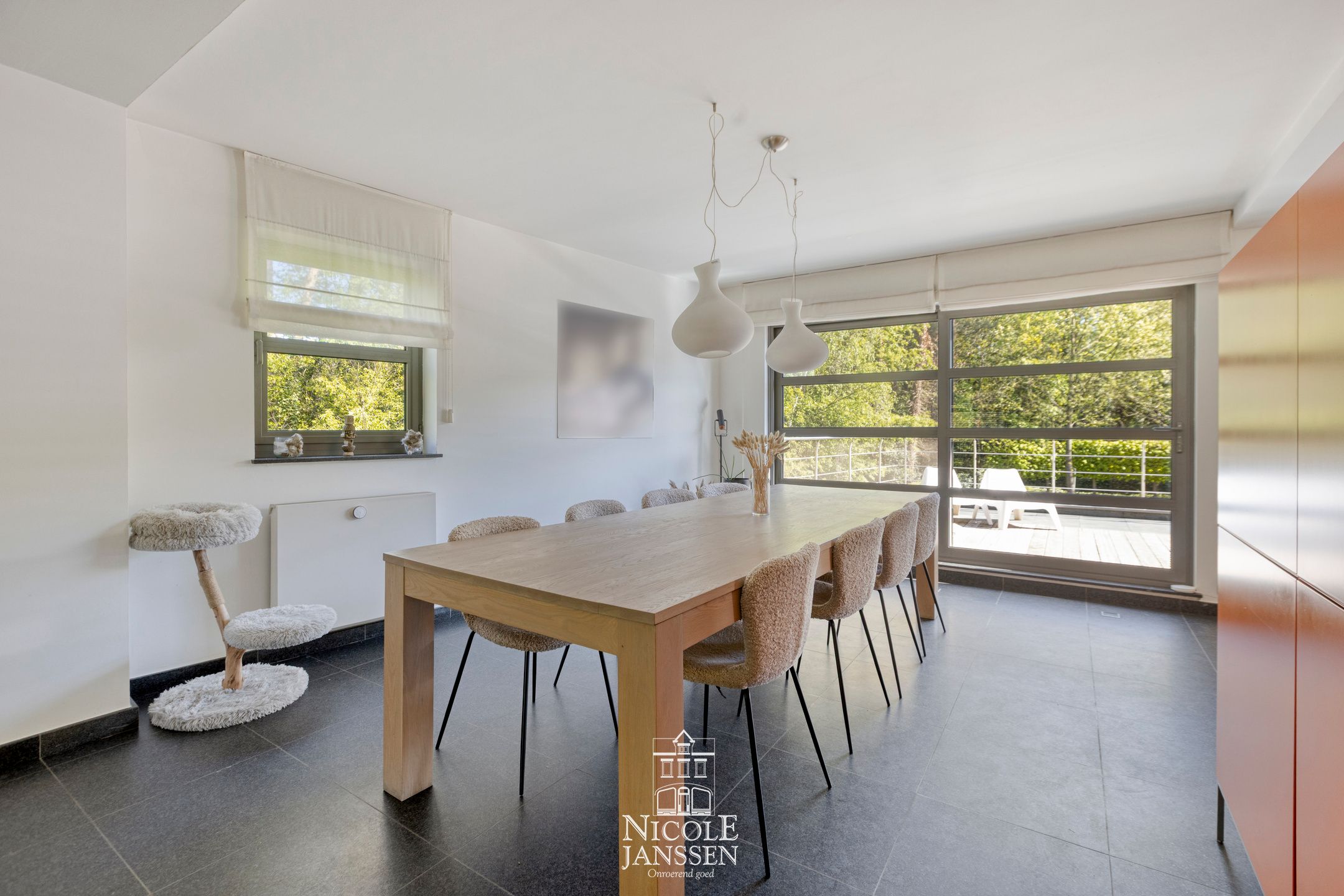 - Aansluitend bevindt zich de eetruimte met rechtstreekse toegang tot het terras, dat via de buitentrap in verbinding staat met de tuin