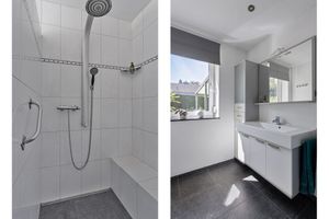 - Slaapkamer van ca. 22 m² met ensuite badkamer van ca. 7 m² en toegang tot het zijterras. De moderne badkamer is voorzien van een inloopdouche en wastafelmeubel.