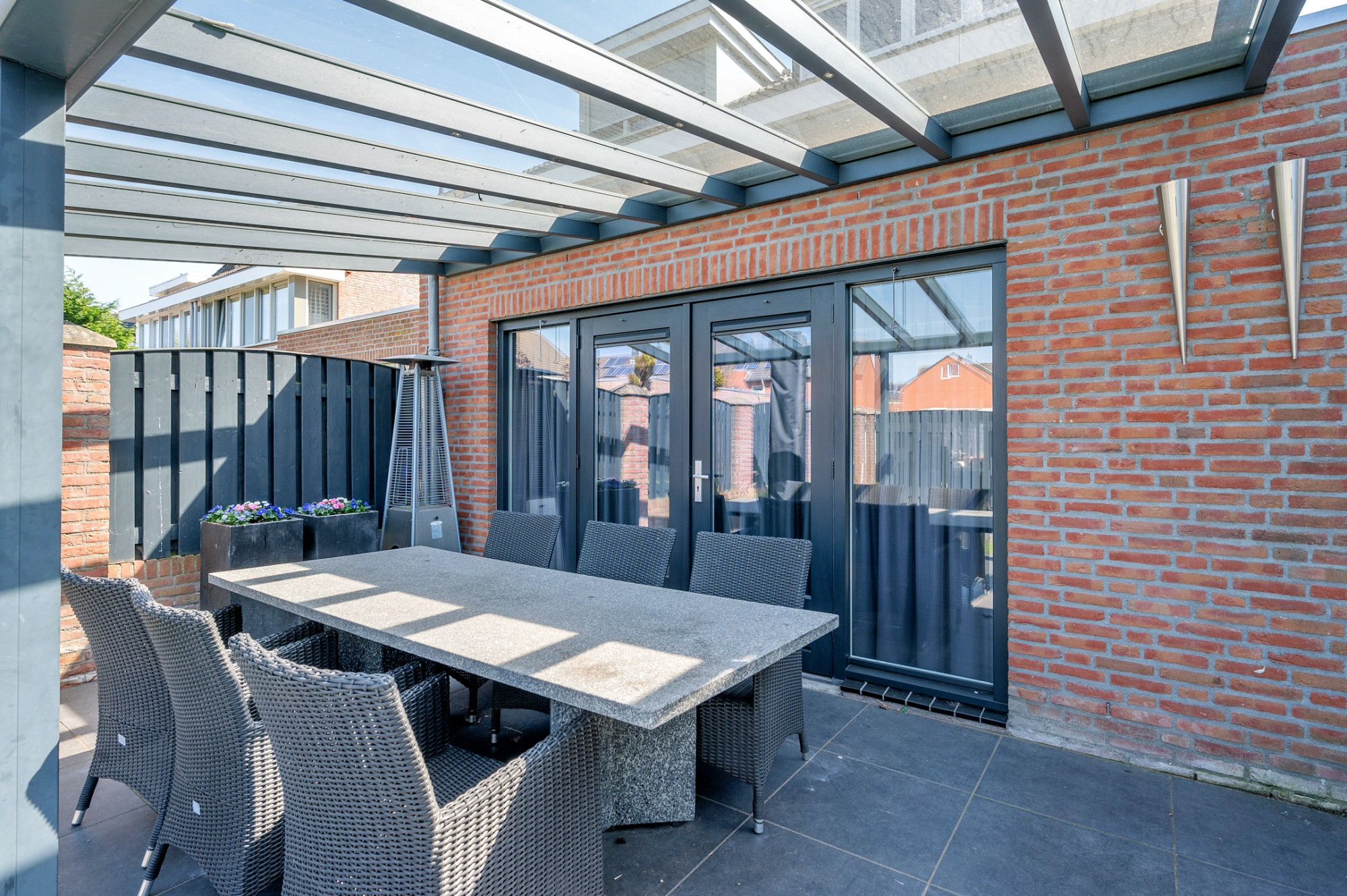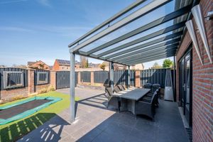 De achtertuin is deels betegeld en geheel omheind. Aan de achtergevel is een nette overkapping geplaatst. De tuin is gelegen op het noordwesten en te bereiken middels een achterom. Verder geniet de achtertuin veel privacy en is hij ruim van opzet. De achtertuin geeft toegang aan een plein met garageboxen waarvan er momenteel een gehuurd wordt. Deze kan in overleg overgenomen worden.