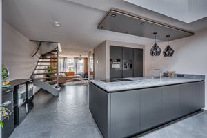 Middels de overdekte entree is de woning te bereiken. De entree/ hal geeft toegang tot de toiletruimte, meterkast en woonkamer. De geheel betegelde toiletruimte is voorzien van een zwevend toilet, fontein en mechanische ventilatie. De ruime woonkamer met open keuken is ingedeeld in een zit en eetgedeelte. Aan de voorzijde is het loungegedeelte te vinden en aan de achterzijde de open eetkamer. De open keuken is in 2017 vernieuwd en voorzien van een kookeiland met inductiekookplaat voorzien van interne afzuiging, Quooker, oven, wastafel, vaatwasmachine en zeer veel opbergruimte. De achterwand is voorzien van een combioven/ magnetron, koelkast en koffiemachine. De eetkamer is ca. 5m * 3.66m wat ervoor zorgt dat hier gemakkelijk een grote eettafel kan worden geplaatst. Middels openslaande tuindeuren is de tuin te betreden. Via een loopdeur is de garage te bereiken welke nu is ingedeeld in een speelkamer met berging.