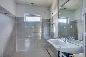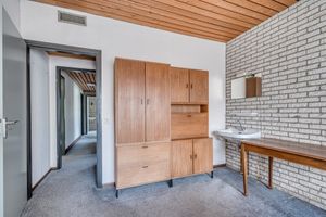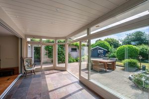 De overdekte entree geeft toegang tot de hal. De hal geeft toegang tot de separate toiletruimte en de woonkamer. De toiletruimte is deels betegeld en voorzien van een toilet en fonteintje. Middels een loopdeur is de ruime woonkamer te bereiken. Deze staat middels een schuifpui in open verbinding met de serre. De woonkamer geniet daardoor zeer veel natuurlijk lichtinval. Via de woonkamer is de ruime keuken te bereiken. De keuken is ruim van opzet en voorzien van een 4-pits gasfornuis, afzuigkap, koelkast en combimagnetron. Middels een loopdeur is de berging te bereiken. Deze is voorzien van de witgoedaansluitingen en is verder de CV-ketel hier geplaatst. Deze is van het merk Nefit met bouwjaar 2023. De gang welke toegang geeft tot de slaapvertrekken, badkamer en inpandige garage is te bereiken via een loopdeur in de woonkamer. Hier zijn de 4 slaapkamers van ca. 18m², 12m², 9m² en 9m² en alle voorzien van vloerbedekking. 3 slaapkamers zijn voorzien van een wastafel. De badkamer is deels betegeld en voorzien van een ruime inloopdouche, wastafel, toilet en buitenraam.