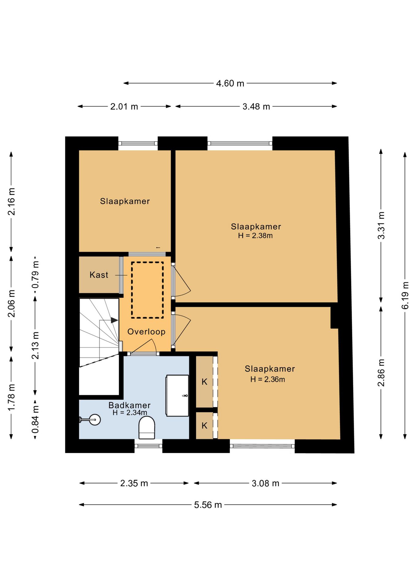 Slaapkamer 3: ca. 2.16 x 2.01 m voorzien van rolluik.