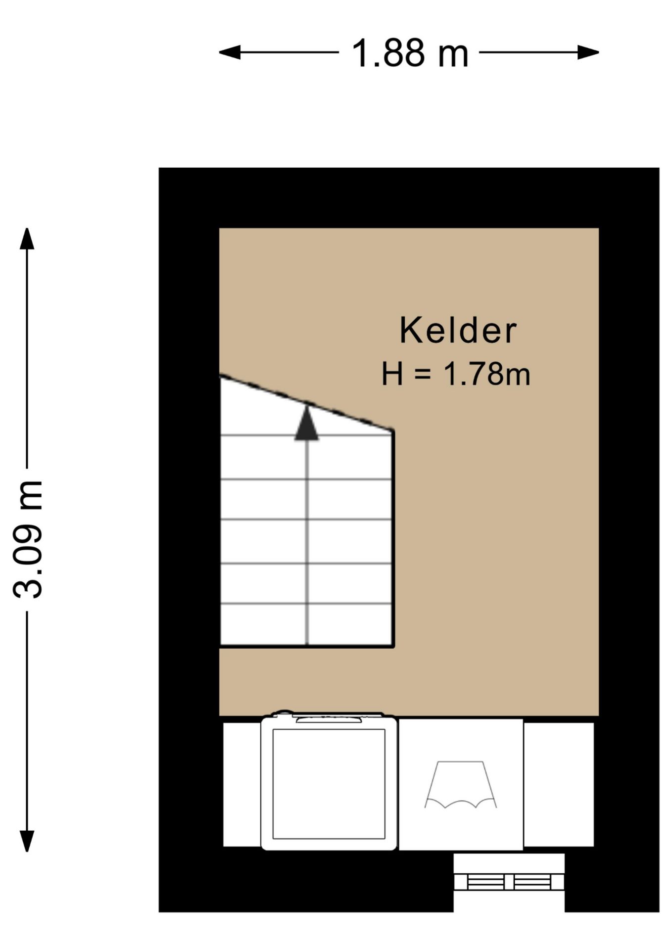 Betegelde provisiekelder.