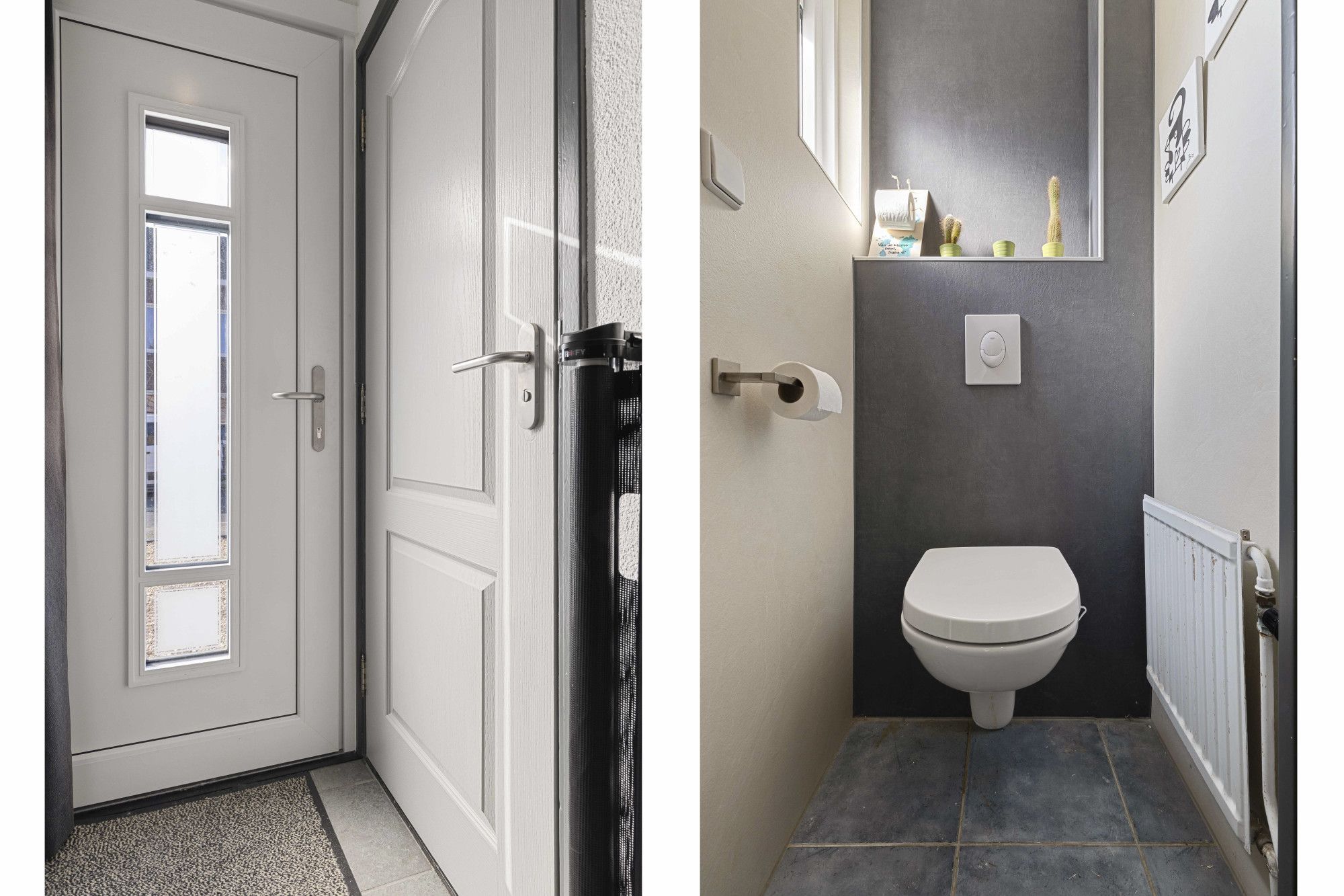 Hal/entree, moderne meterkast, toiletruimte met zwevend closet.