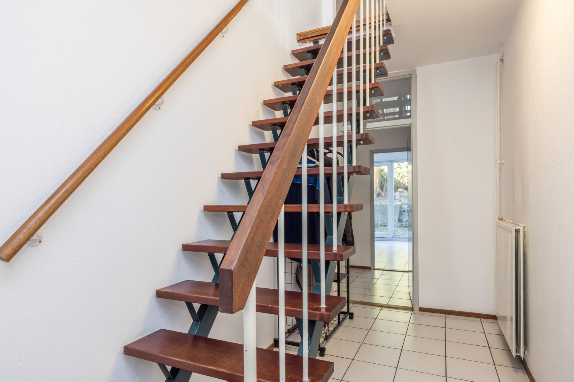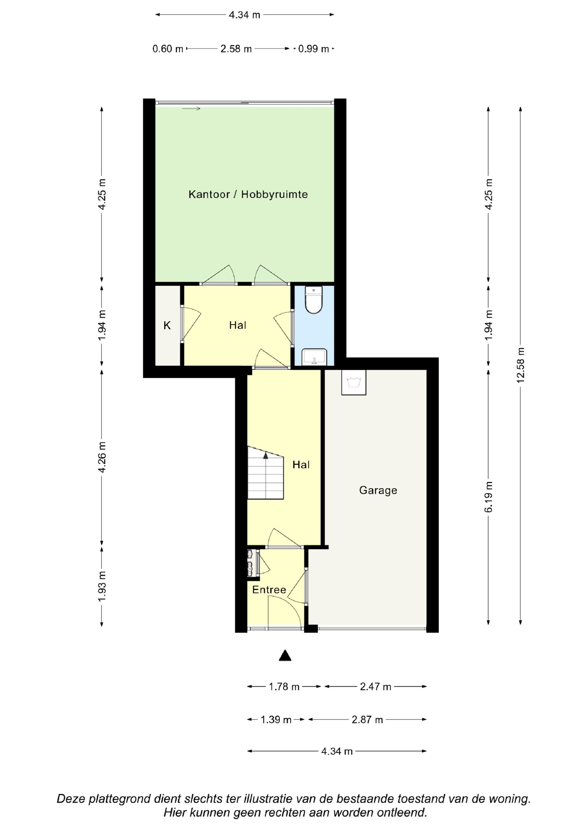 Middels oprit te bereiken entree. De entree biedt toegang tot hal en inpandige garage (6,19 m x 2,87 m/ 2,47 m) v.v. elektrische poort en aansluiting voor witgoedapparatuur. Vanuit de hal heeft men toegang tot trap naar verdieping en deur naar tussenhal. De tussenhal v.v. bergkast biedt toegang tot toiletruimte en multifunctionele ruimte/ 3e slaapkamer (4,34 m x 4,25 m). Deze ruimte is ideaal geschikt als 3e slaapkamer of eventueel kantoor/ praktijk aan huis en biedt middels schuifpui toegang tot de tuin.