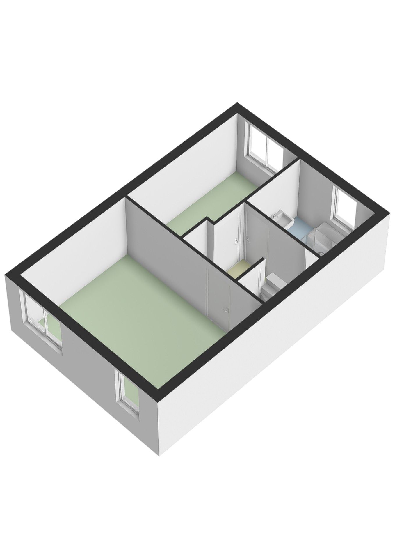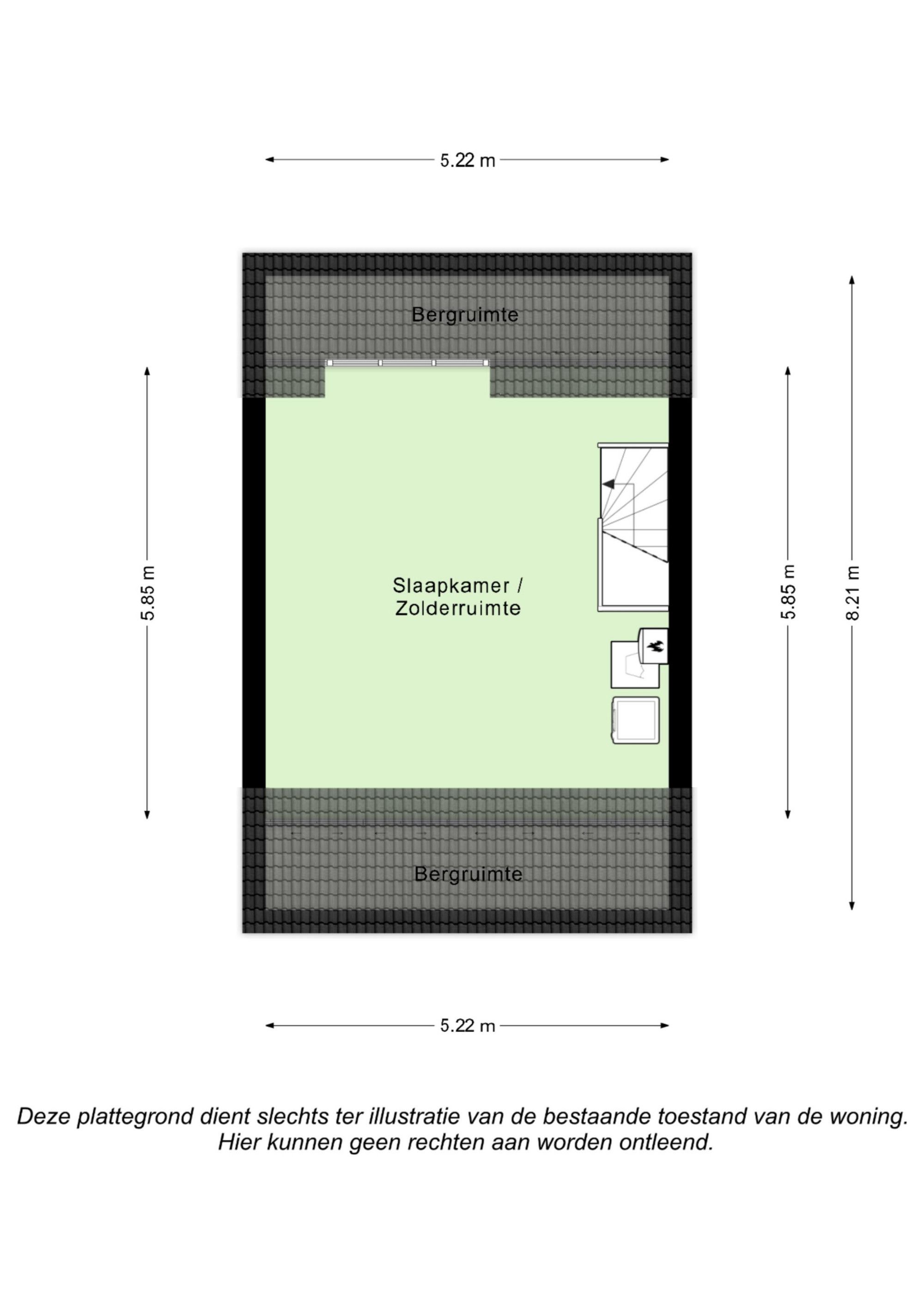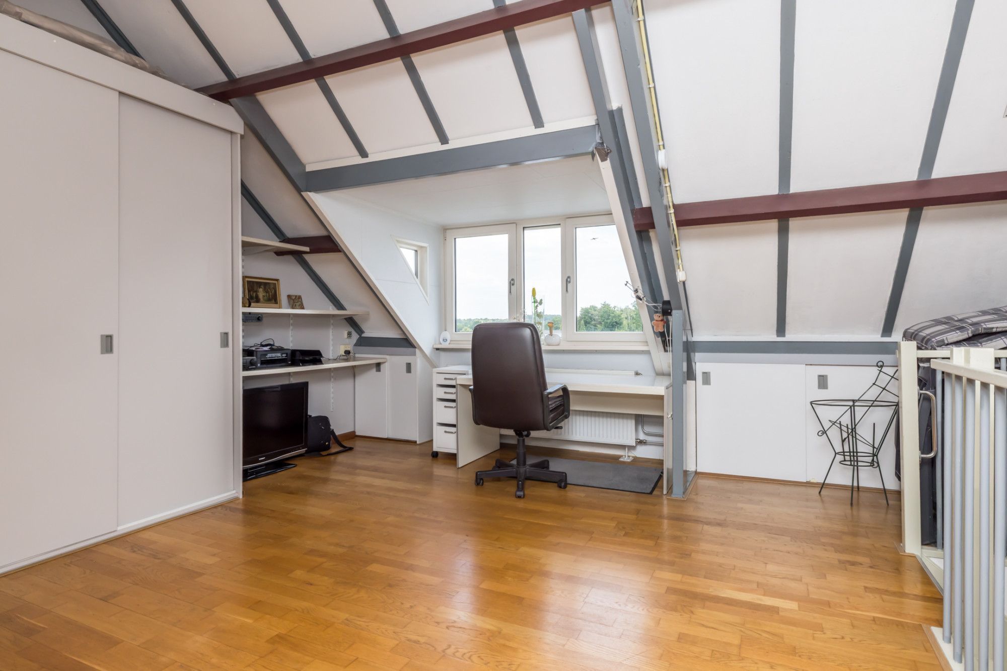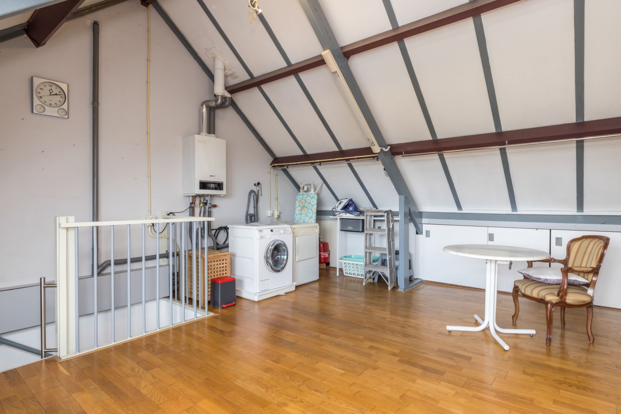 Middels vaste trap te bereiken riante zolderkamer (ca. 27 m2) v.v. parketvloer en dakkapel, tevens heeft men aansluitingen voor witgoedapparatuur en cv-ketel.