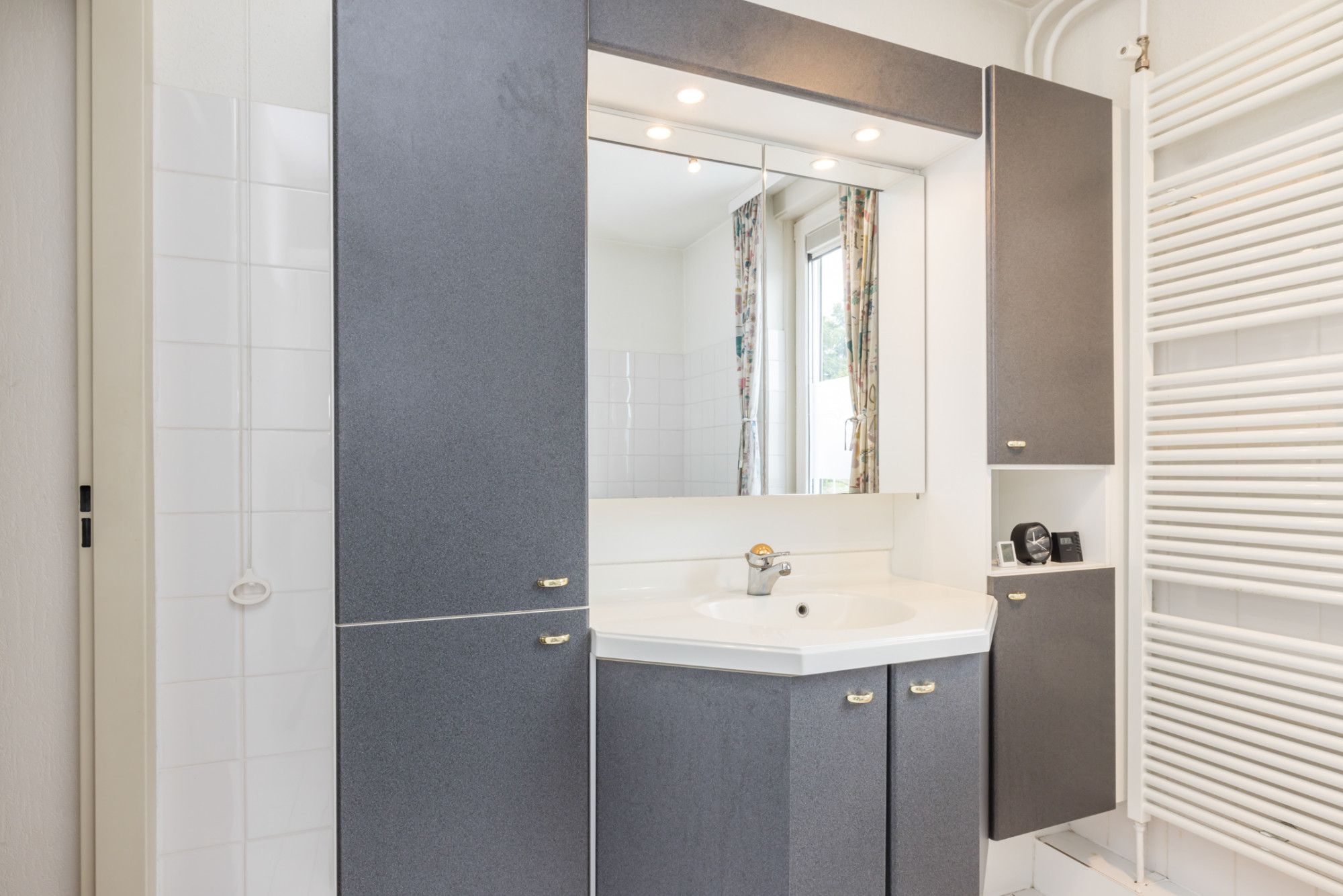 De zonnige/ verzorgde achtertuin is v.v. een riant terras en middels poort achterom bereikbaar. De riante garage (ca. 30 m2) is inpandig vanuit de tuinkamer te bereiken en is v.v. een vaste wastafel en elektrische poort.