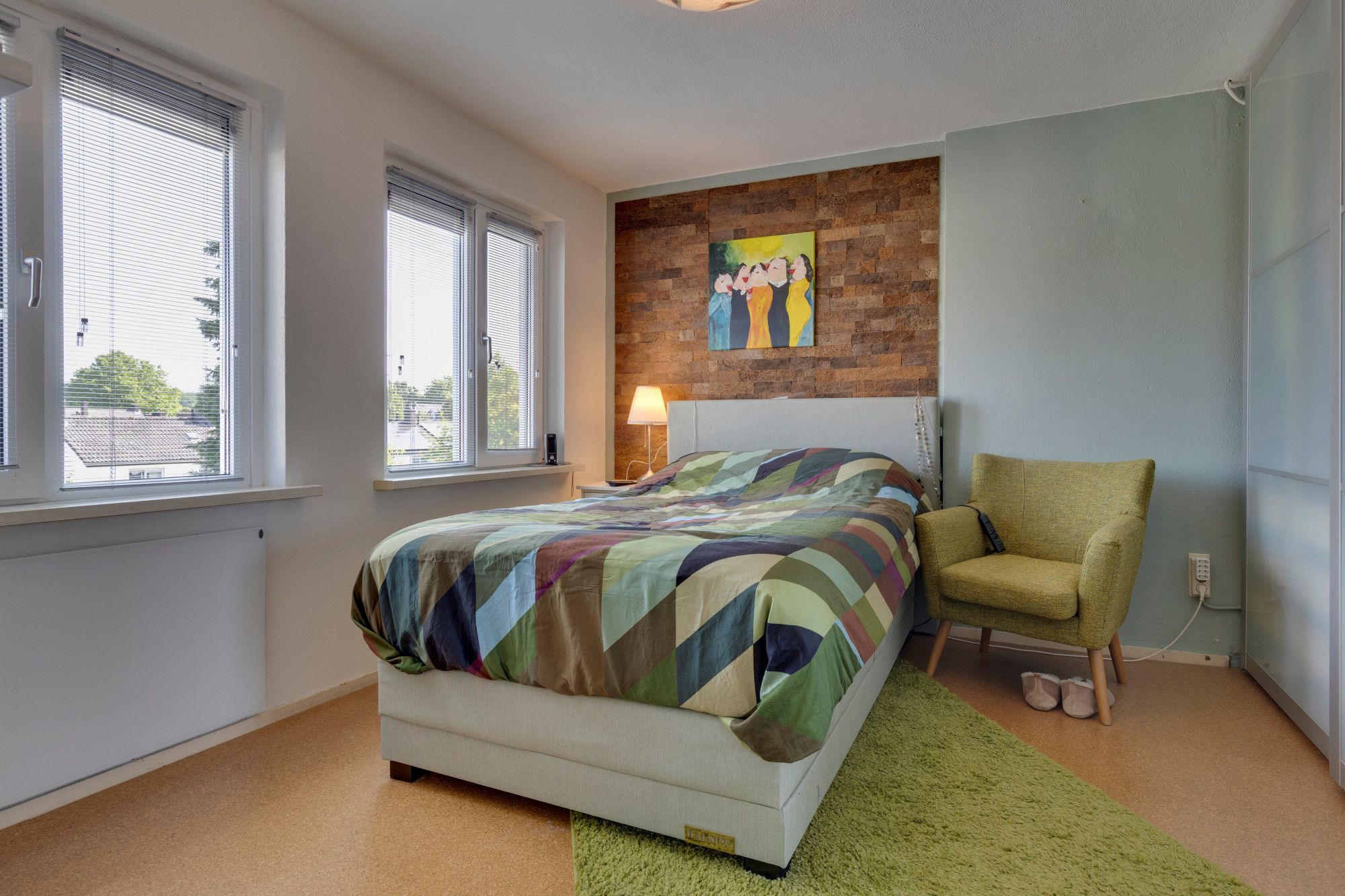 Slaapkamer 1 V/Z voorzien van een kurkvloer