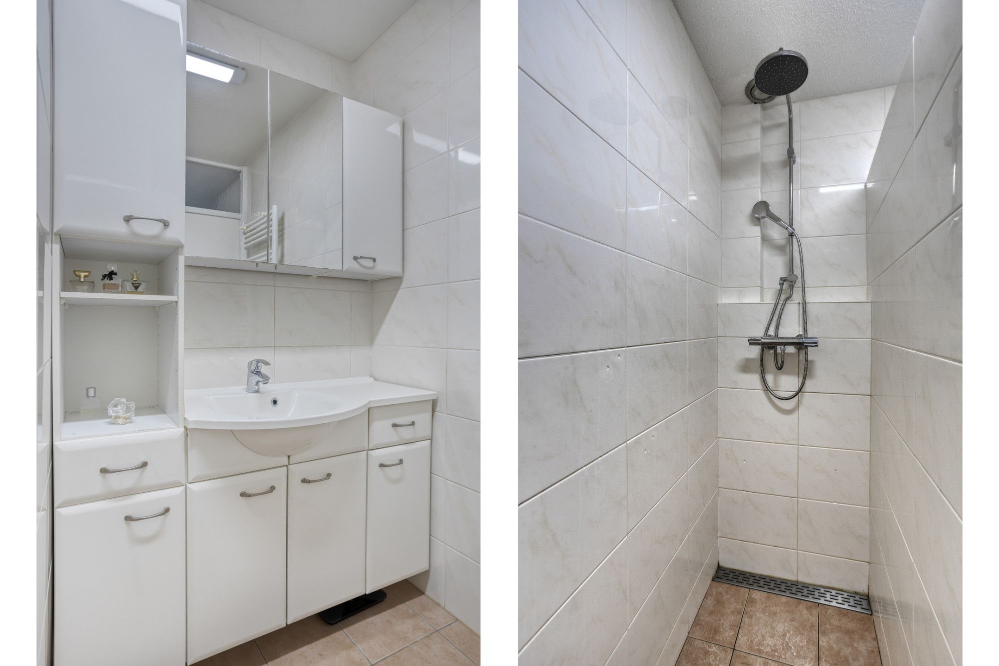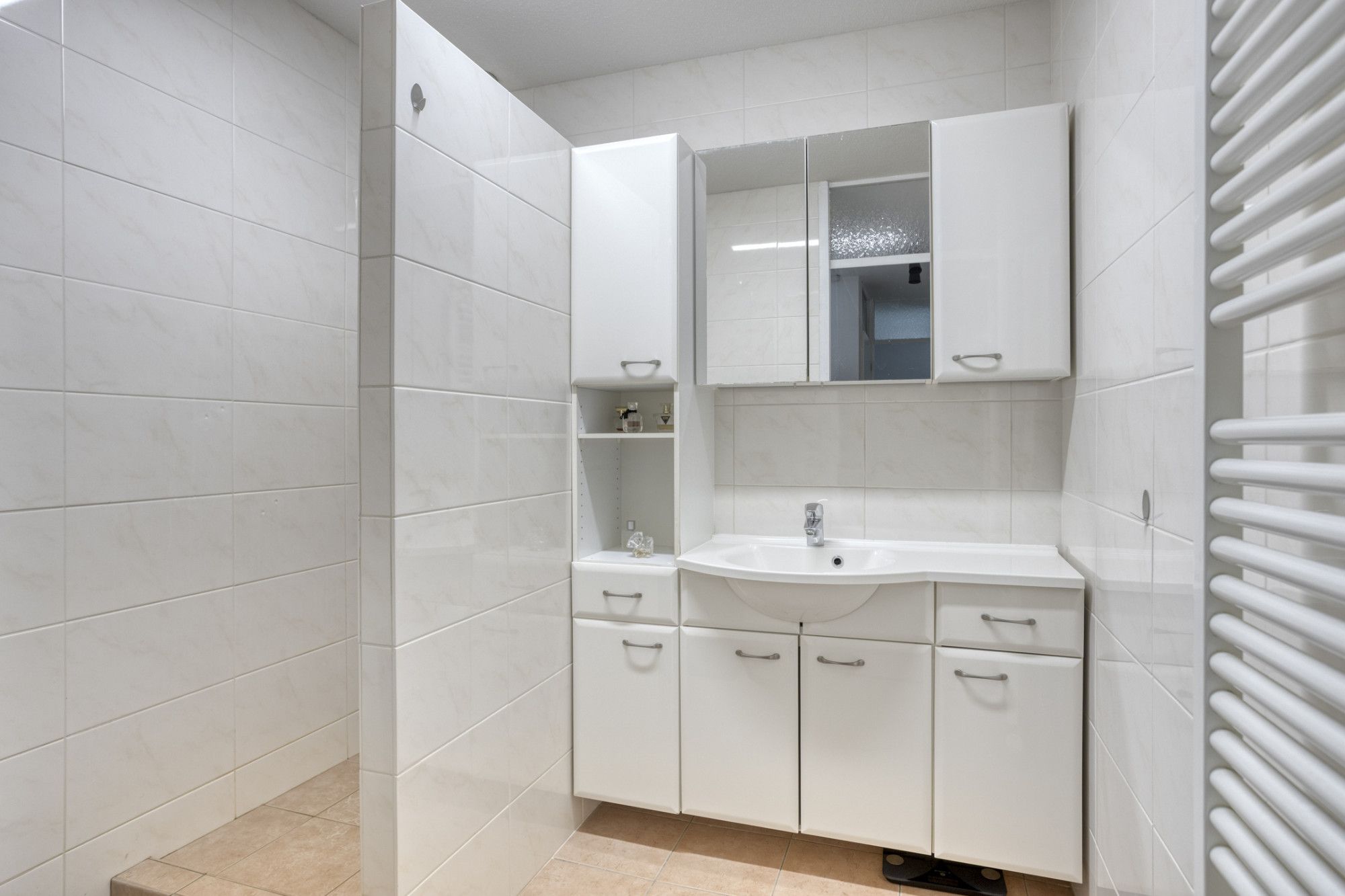 Badkamer (2.09 x 2.07 m) met (instap)inloopdouche, badmeubel met vaste wastafel en design radiator