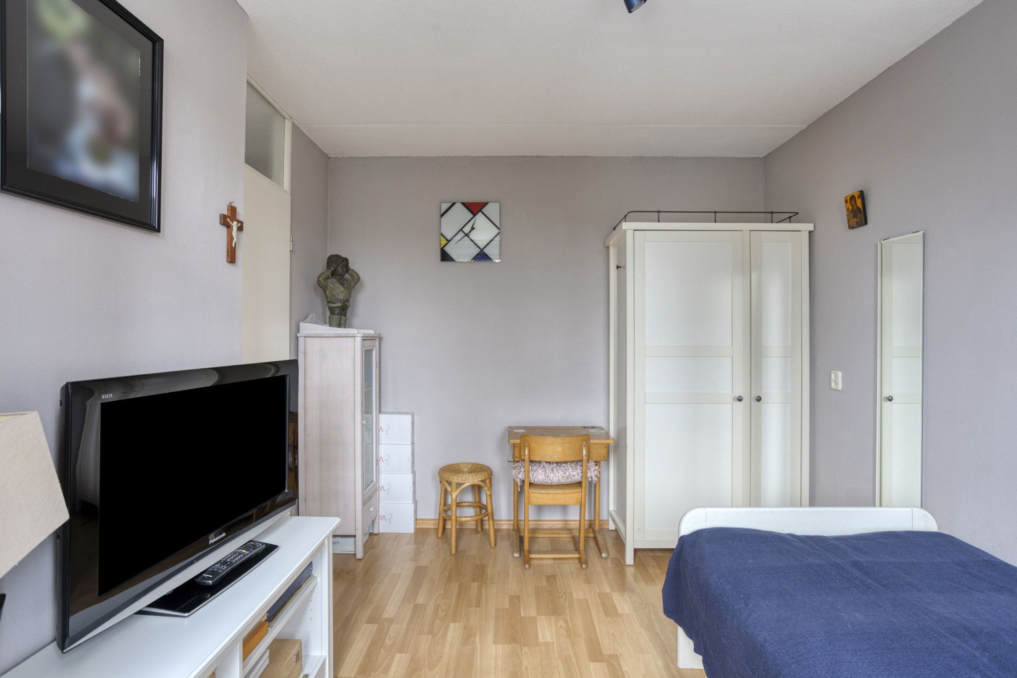 Slaapkamer 2 (4.24 x 2.10 m) voorzien van laminaatvloer.