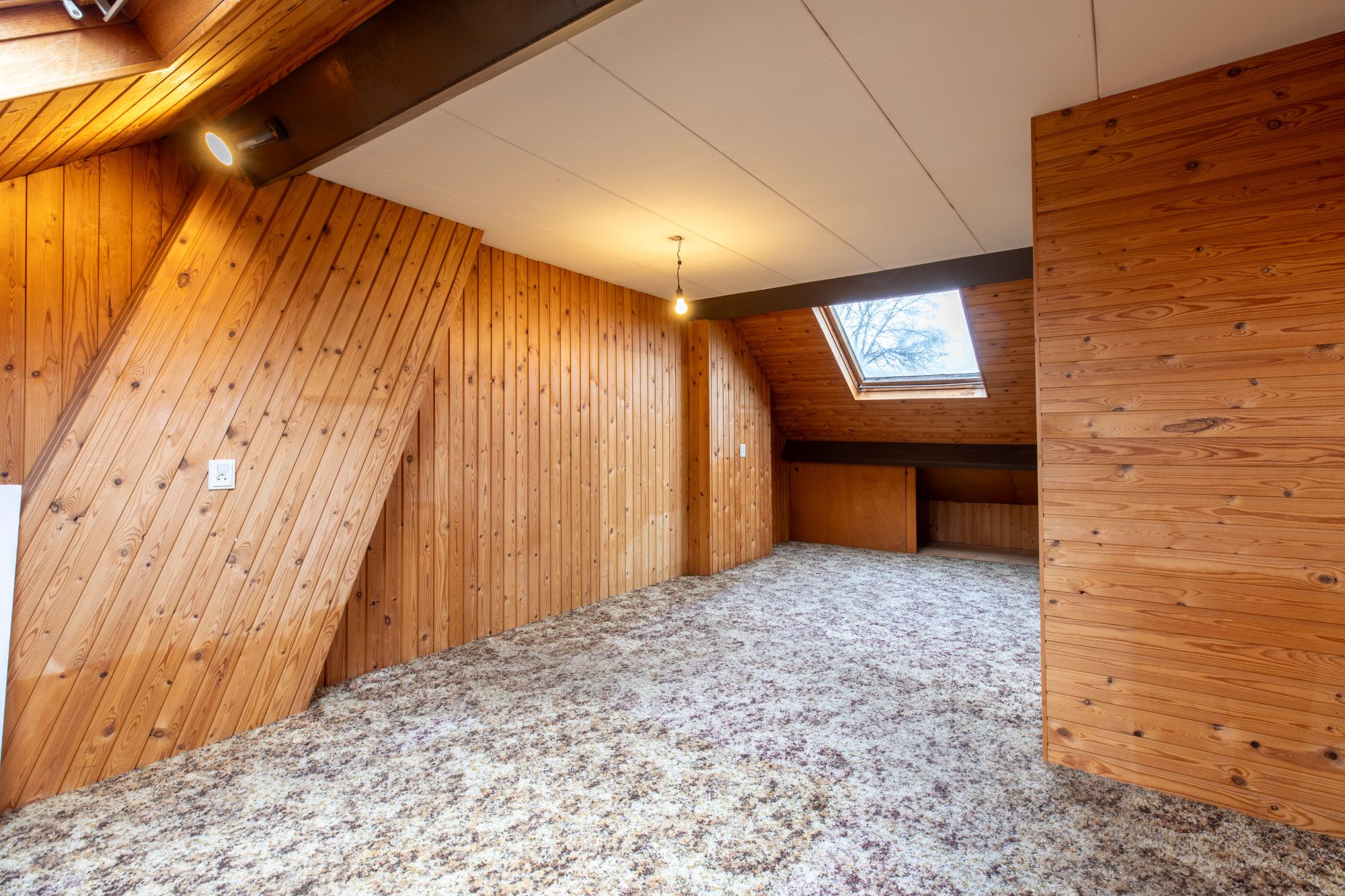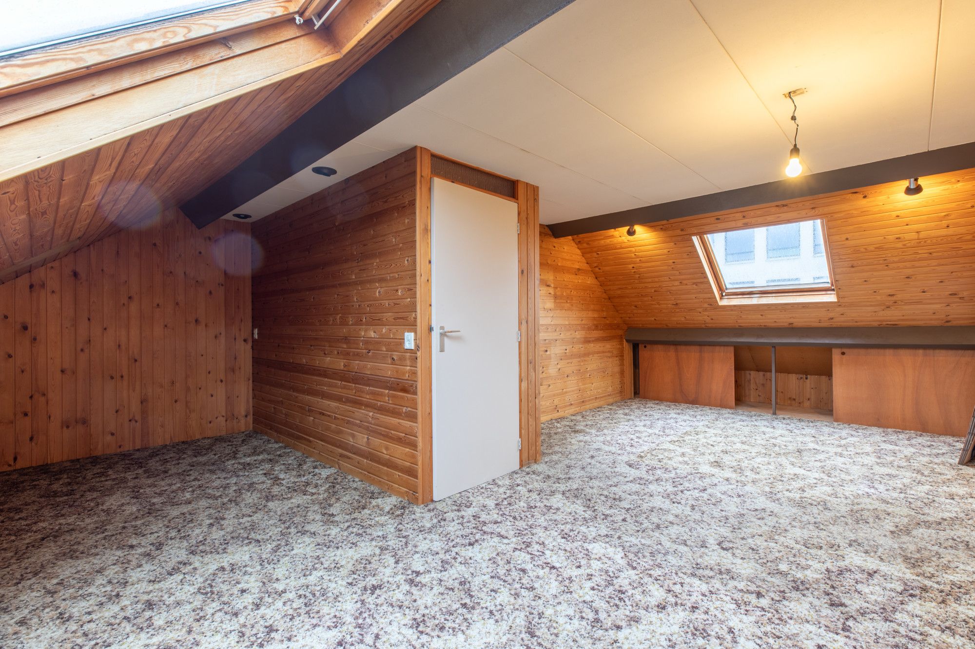Via een vaste trap is de overloop bereikbaar met toegang naar een slaapkamer met dakramen en een (opberg)kamer met dakraam. Via een luik op de overloop is er nog een bergvliering.