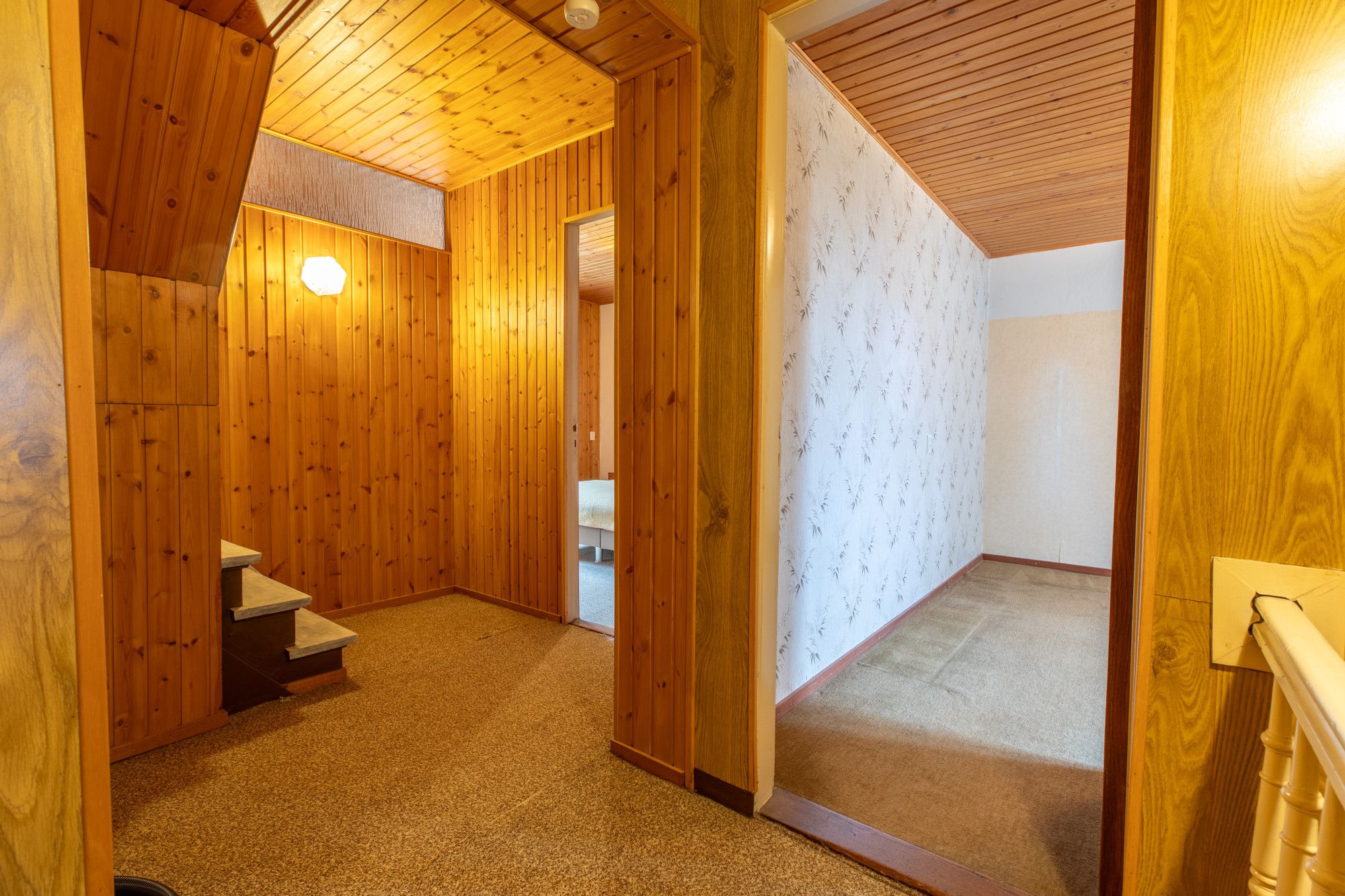 Overloop met toegang naar 3 slaapkamers. Middels doorloop vanuit 1 slaapkamer is er toegang naar de badkamer met ligbad, douchecabine, wastafel en 2e toilet.