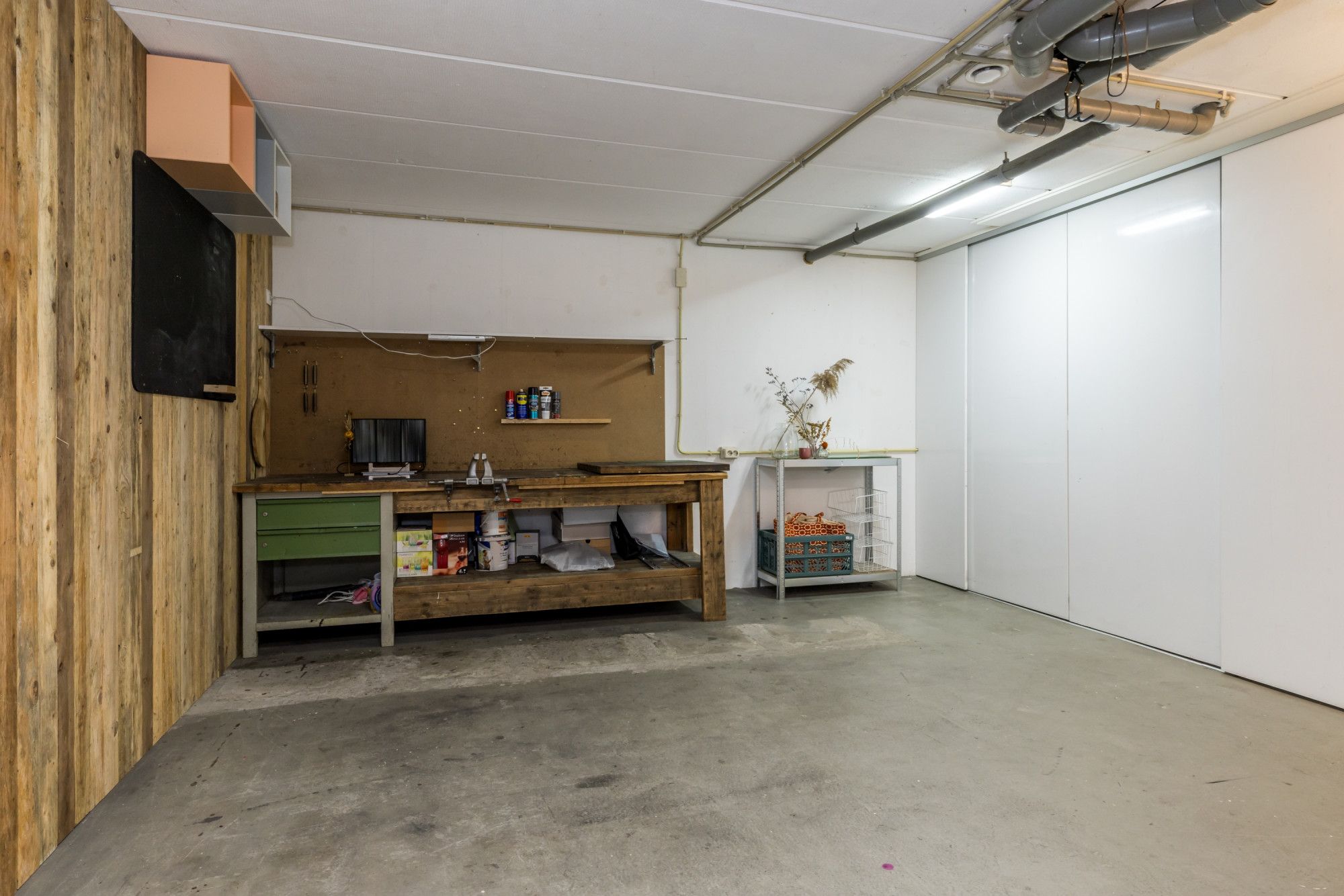 Vanuit de hal heb je toegang naar de ruime garage met een grote vaste kastenwand met veel opbergmogelijkheden en de aansluitpunten voor het witgoed. Oprit heeft plaats voor meerdere auto's.