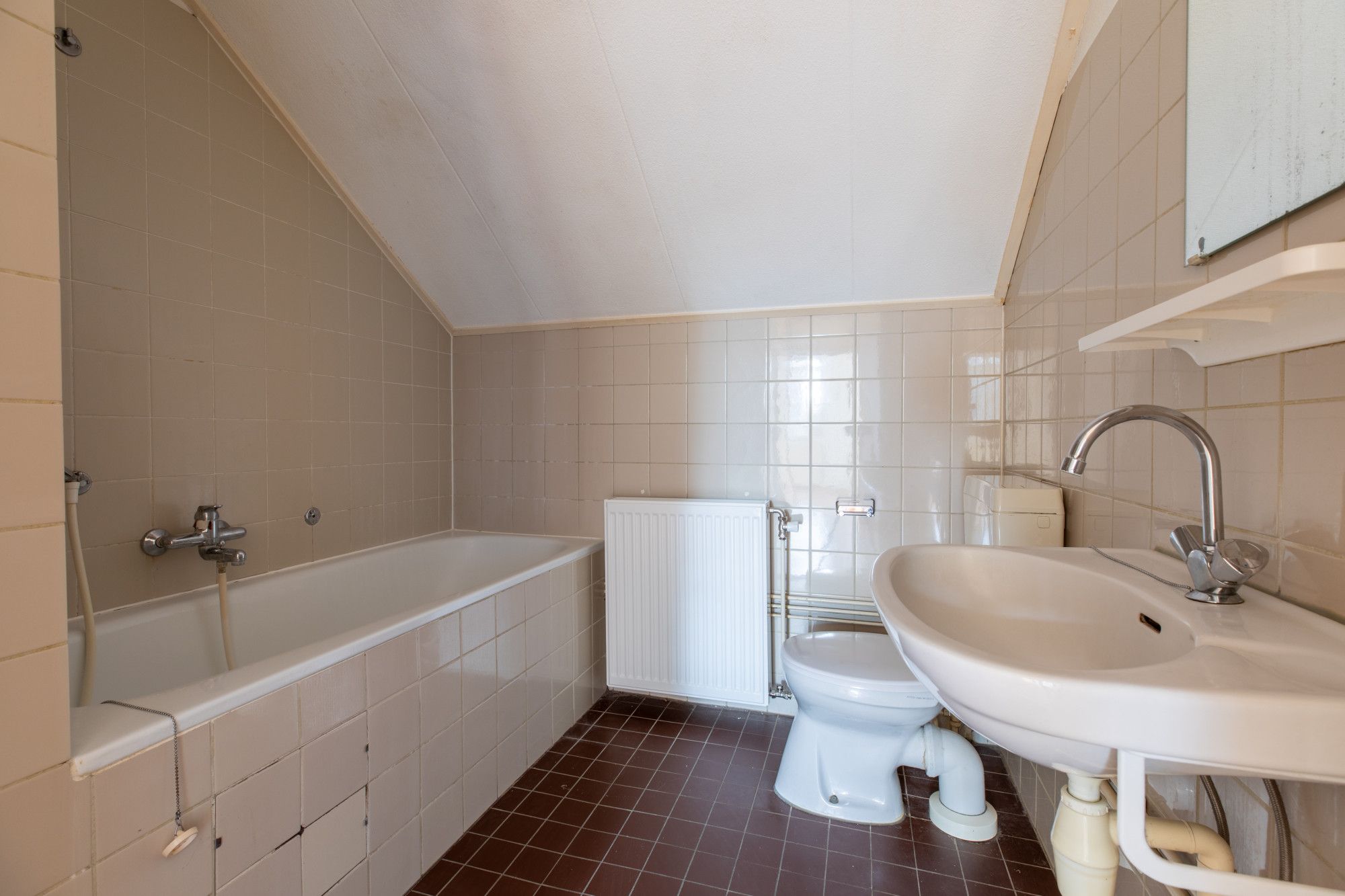 Overloop met toegang naar 3 slaapkamers. Badkamer met ligbad, toilet en wastafel.