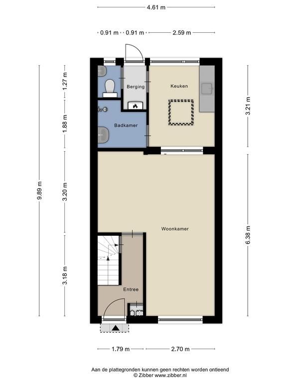 Via de entree/hal met trap en meterkast komt u bij de woonkamer met toegang tot de keuken. Achter de keuken is de badkamer met een douche en wastafel gesitueerd. Separaat is er nog een toilet. De achtertuin is betegeld en heeft een buitenberging. De tuin is via een poortje ook achterom bereikbaar.