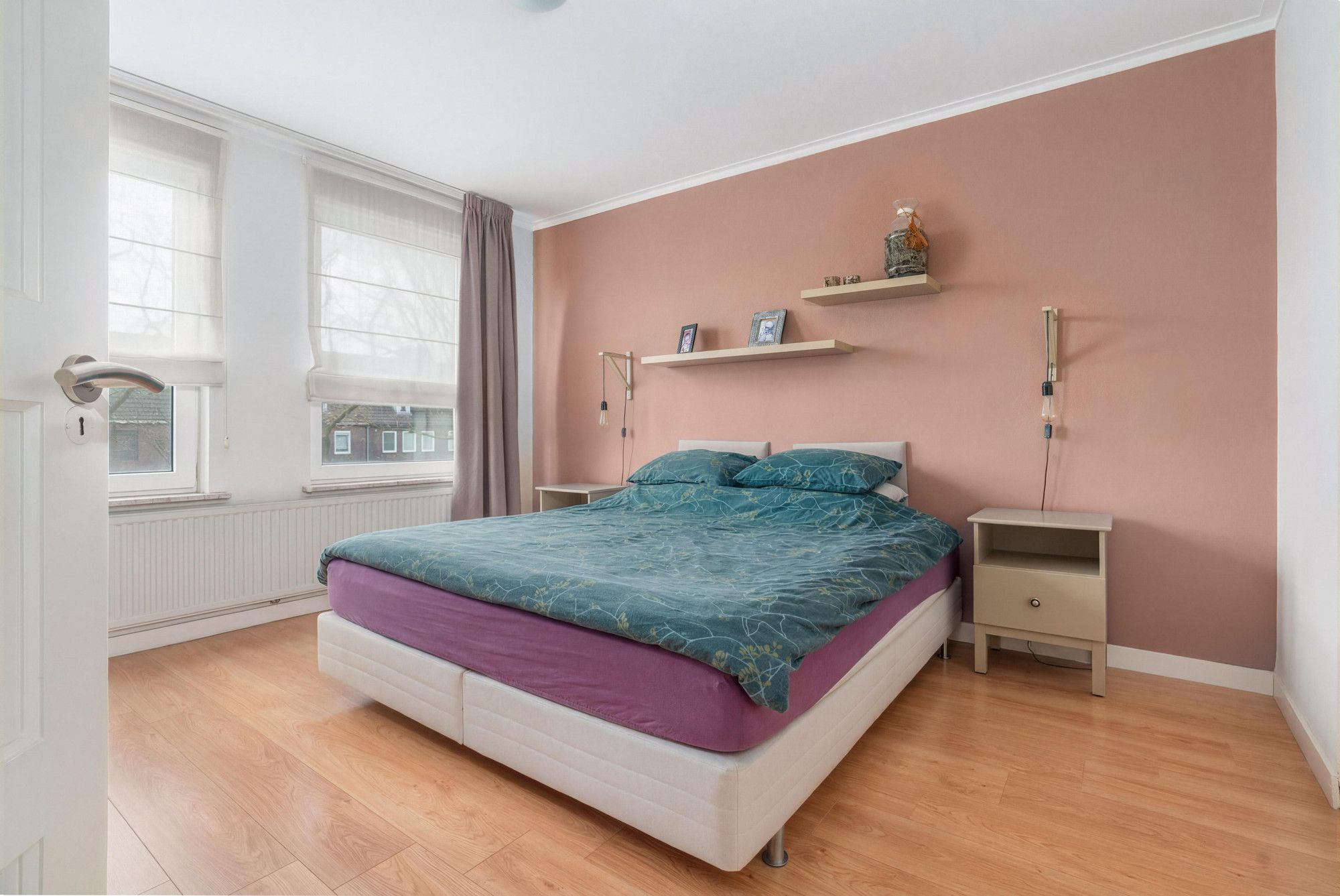 Slaapkamer(3.44m2.86m) met laminaatvloer.