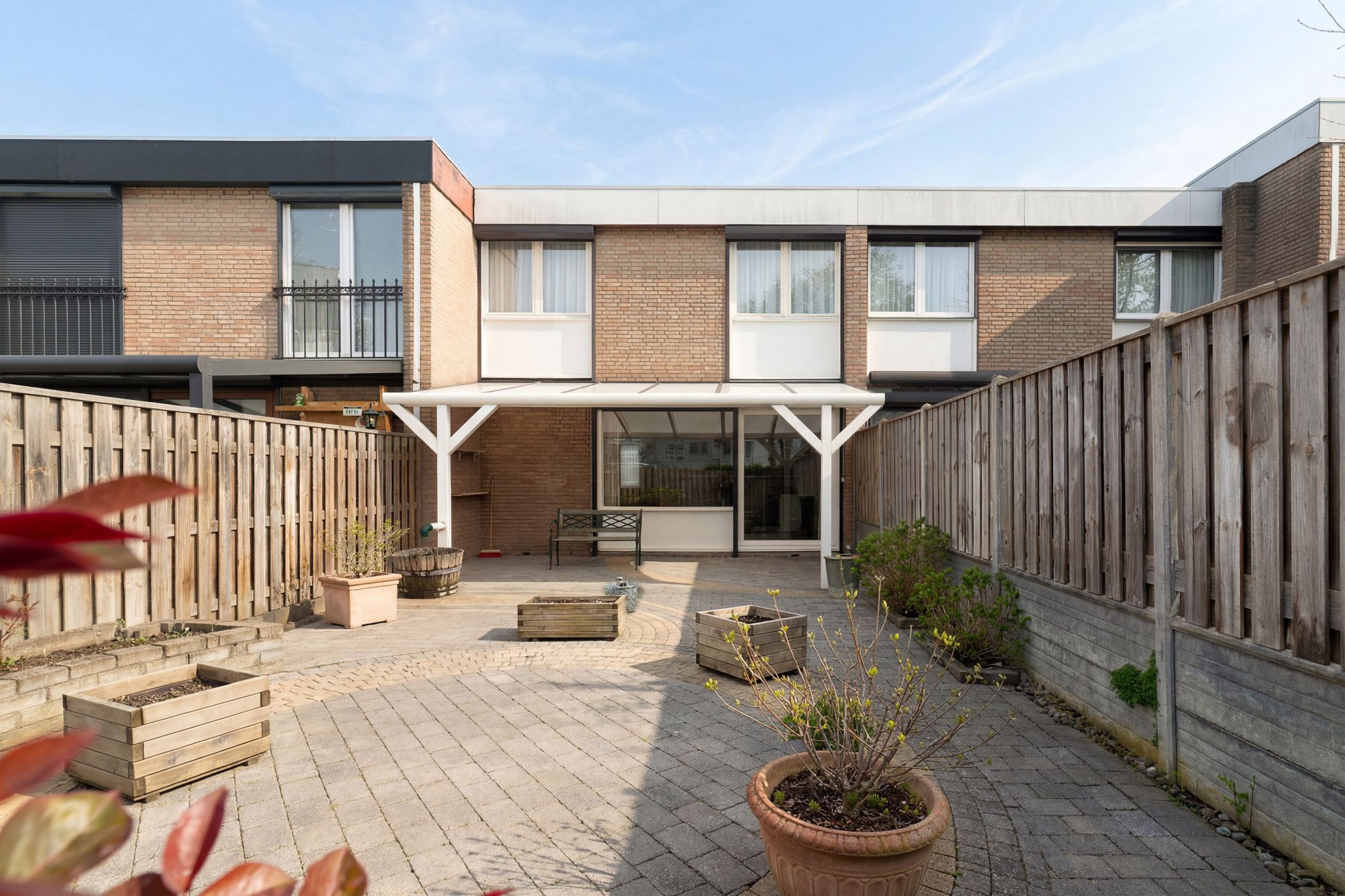 De verzorgde achtertuin is van alle gemakken voorzien. Onder de sfeervolle terrasoverkapping is het heerlijk ontspannen, borrelen of lang tafelen met familie en vrienden. De tuin beschikt daarnaast over een achteringang, terras en borders.