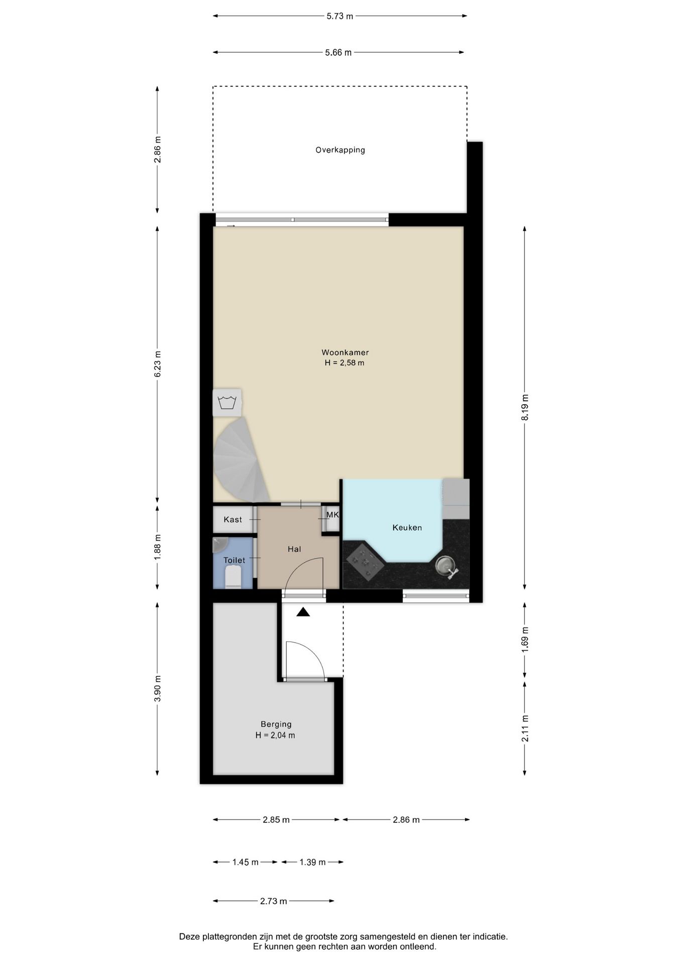 Alle door ons kantoor verstrekte informatie omtrent onroerende zaken, moet beschouwd worden als een uitnodiging om in onderhandeling te treden, en is geheel vrijblijvend! Alle vermelde maten en afmetingen zijn slechts bij benadering. Aan deze beperkte informatie kunnen geen rechten worden ontleend. Indien in enige documentatie of op enige website informatie staat die niet overeen komt met de werkelijkheid, dan geldt de feitelijke situatie waarin de woning zich bevindt, zoals koper deze tijdens de bezichtiging heeft kunnen waarnemen, en wordt de woning in deze feitelijke situatie/staat verkocht. Een (eventueel) bijgevoegde plattegrond dient uitsluitend als globale indicatie/visualisatie. Hieraan kunnen uitdrukkelijk geen rechten worden ontleend.