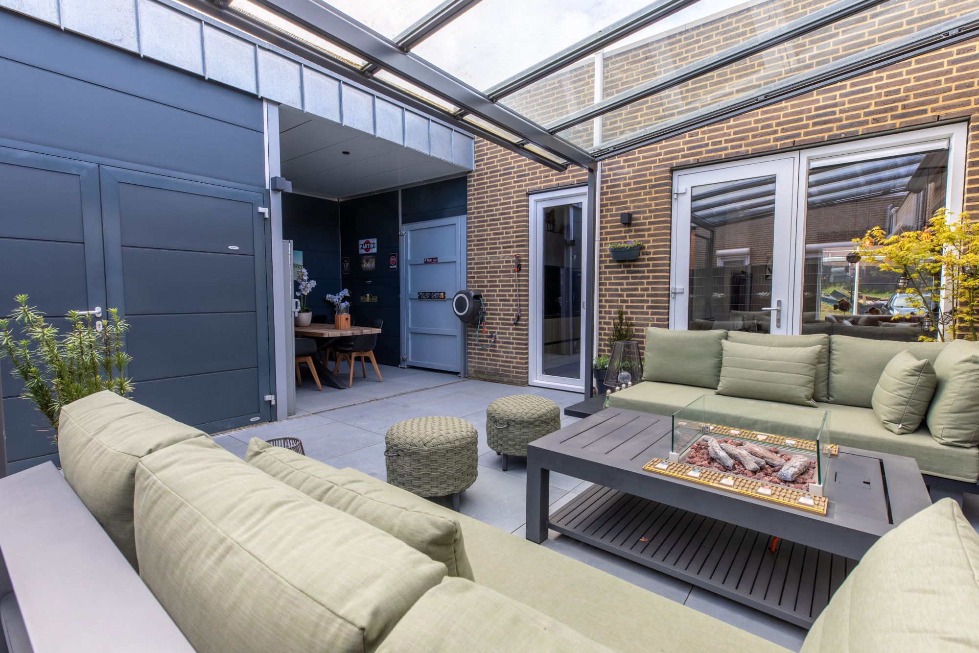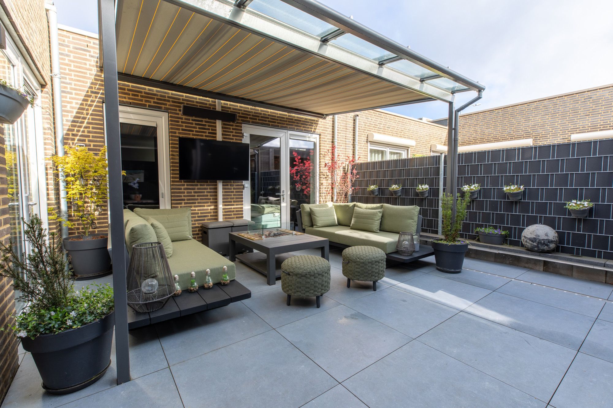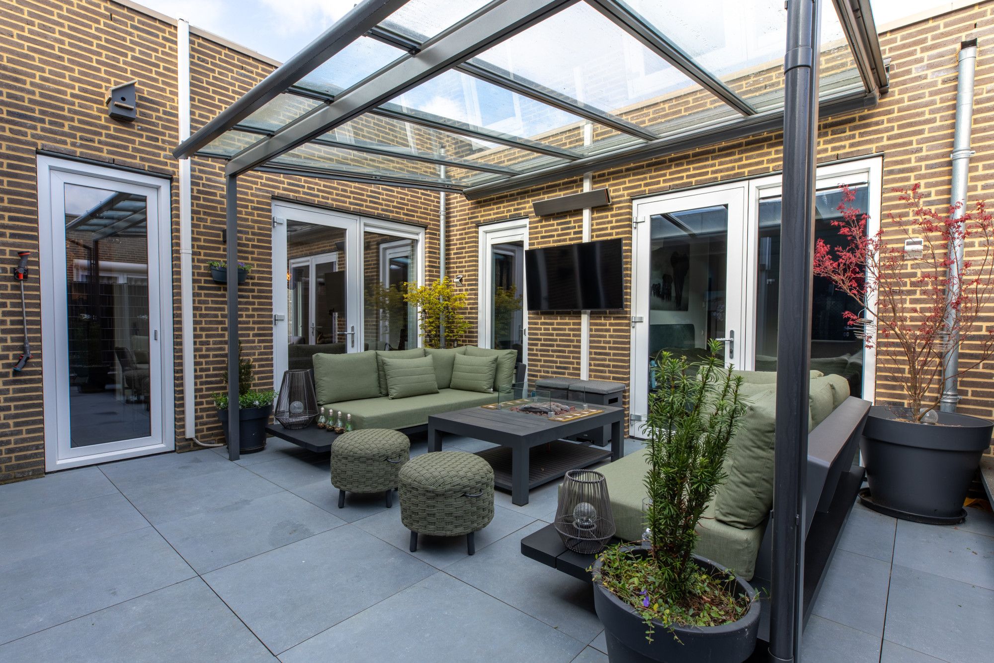 Bij de afbouw van de woning heeft de eigenaar gekozen voor een moderne afwerking en voor hoogwaardige materialen. Ook is samen met de buren een afsluitbare carport/garage een elektrisch bedienbare poort gerealiseerd. In de privacyrijke patio is een overkapping met elektrisch bedienbaar zonneluifel geplaatst, waardoor het daar ook in het voor- en najaar heerlijk vertoeven is. Ook is er in de patio een berging gemaakt.