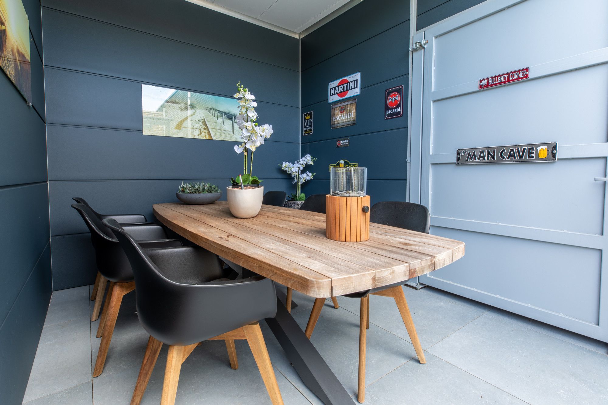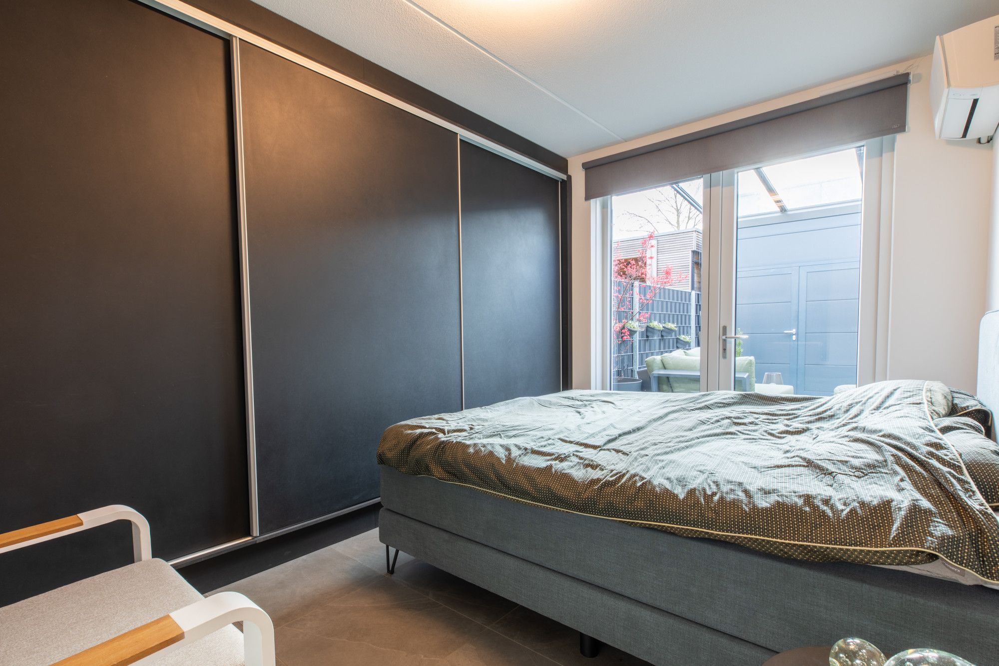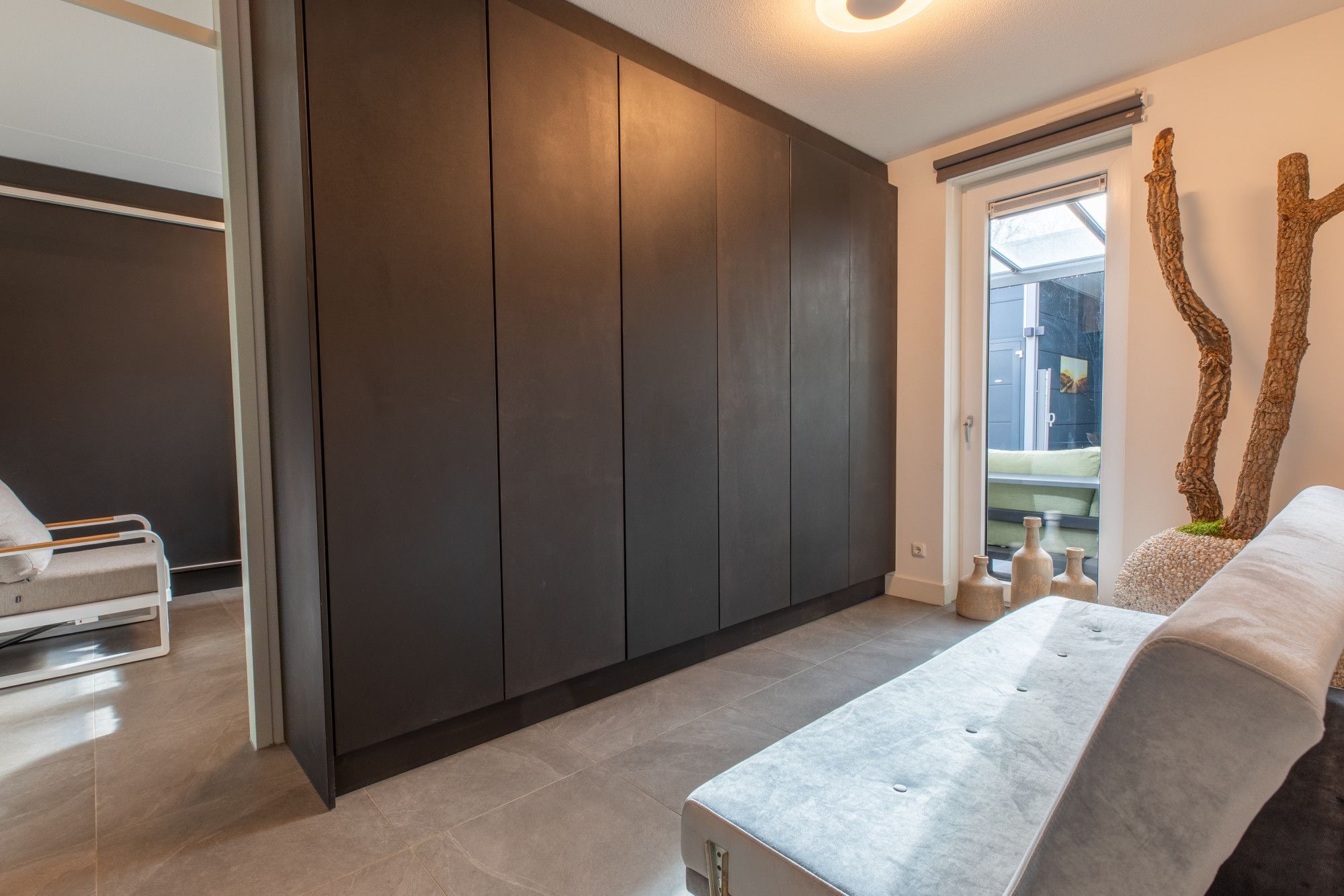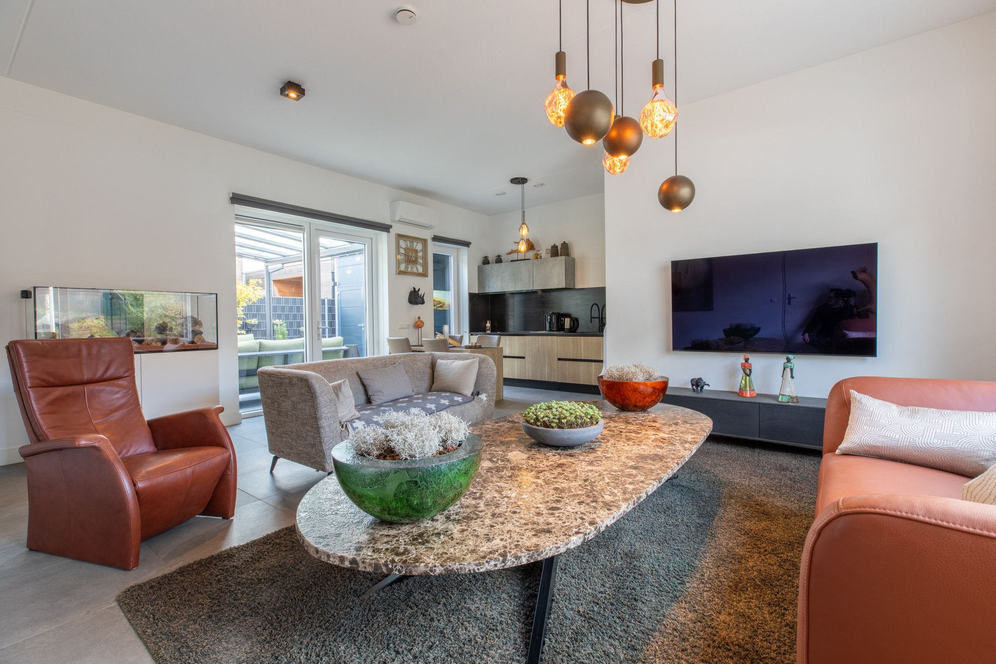 Bij de afbouw van de woning heeft de eigenaar gekozen voor een moderne afwerking en voor hoogwaardige materialen. Ook is samen met de buren een afsluitbare carport/garage een elektrisch bedienbare poort gerealiseerd. In de privacyrijke patio is een overkapping met elektrisch bedienbaar zonneluifel geplaatst, waardoor het daar ook in het voor- en najaar heerlijk vertoeven is. Ook is er in de patio een berging gemaakt.