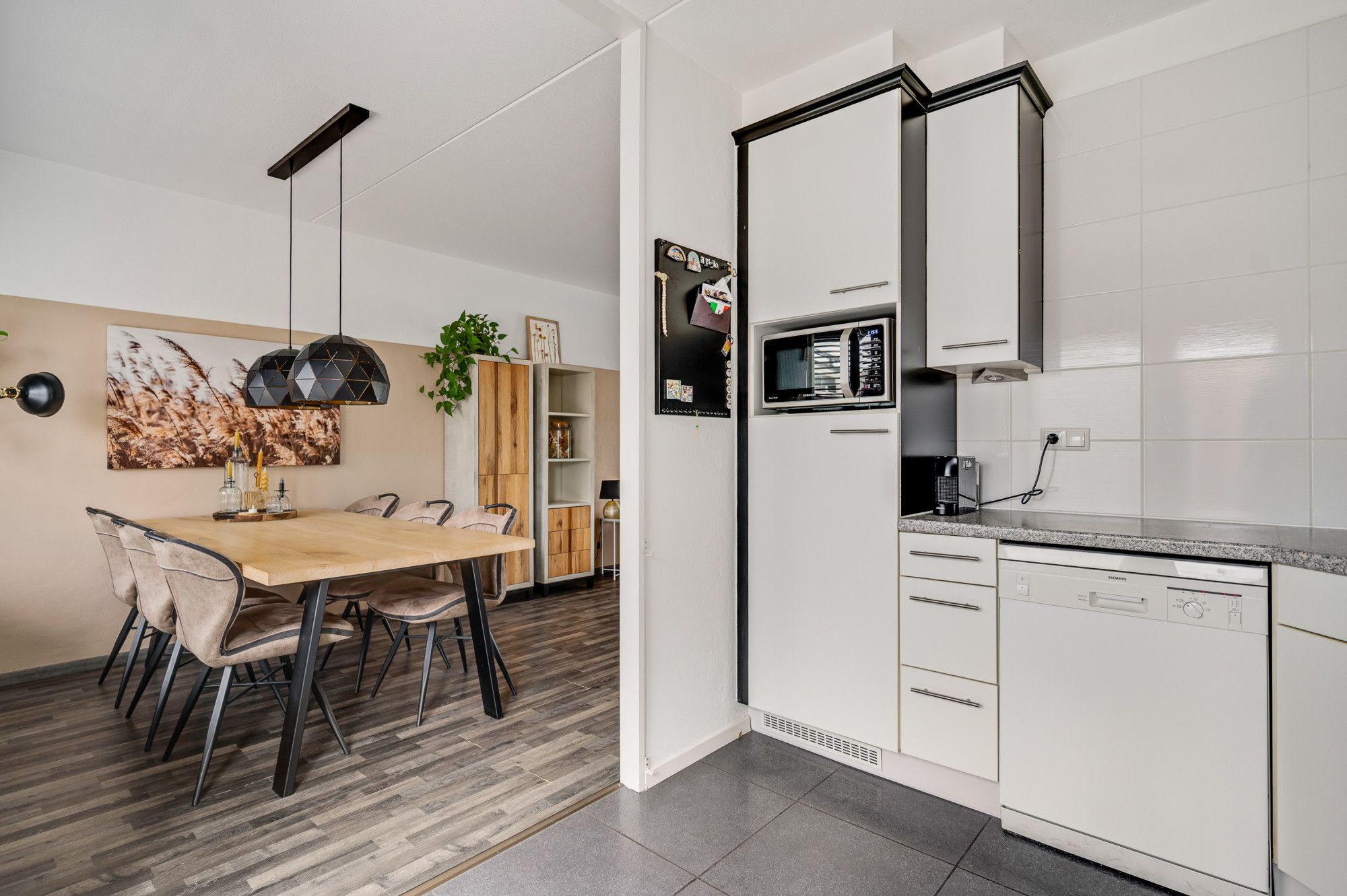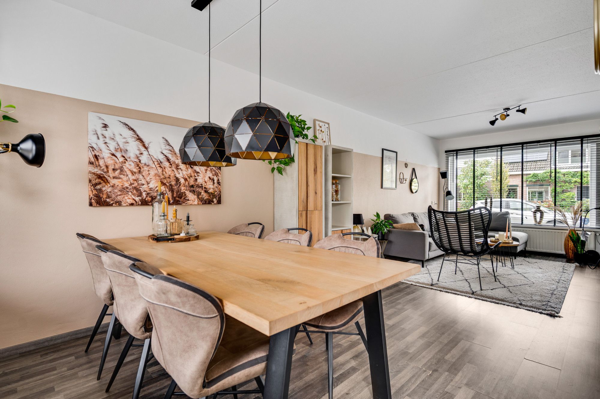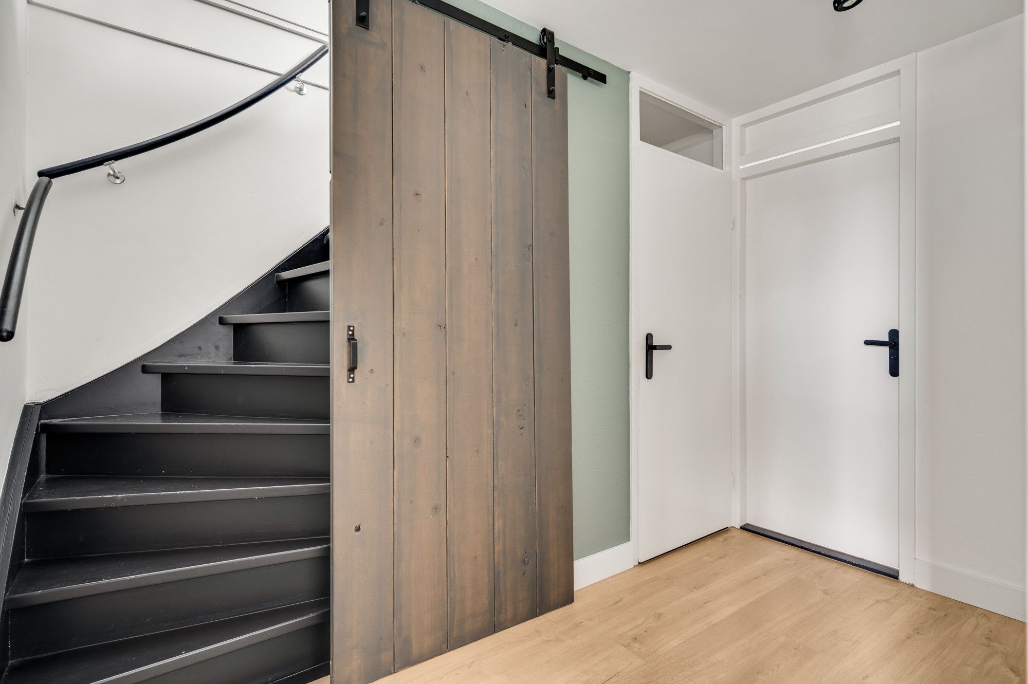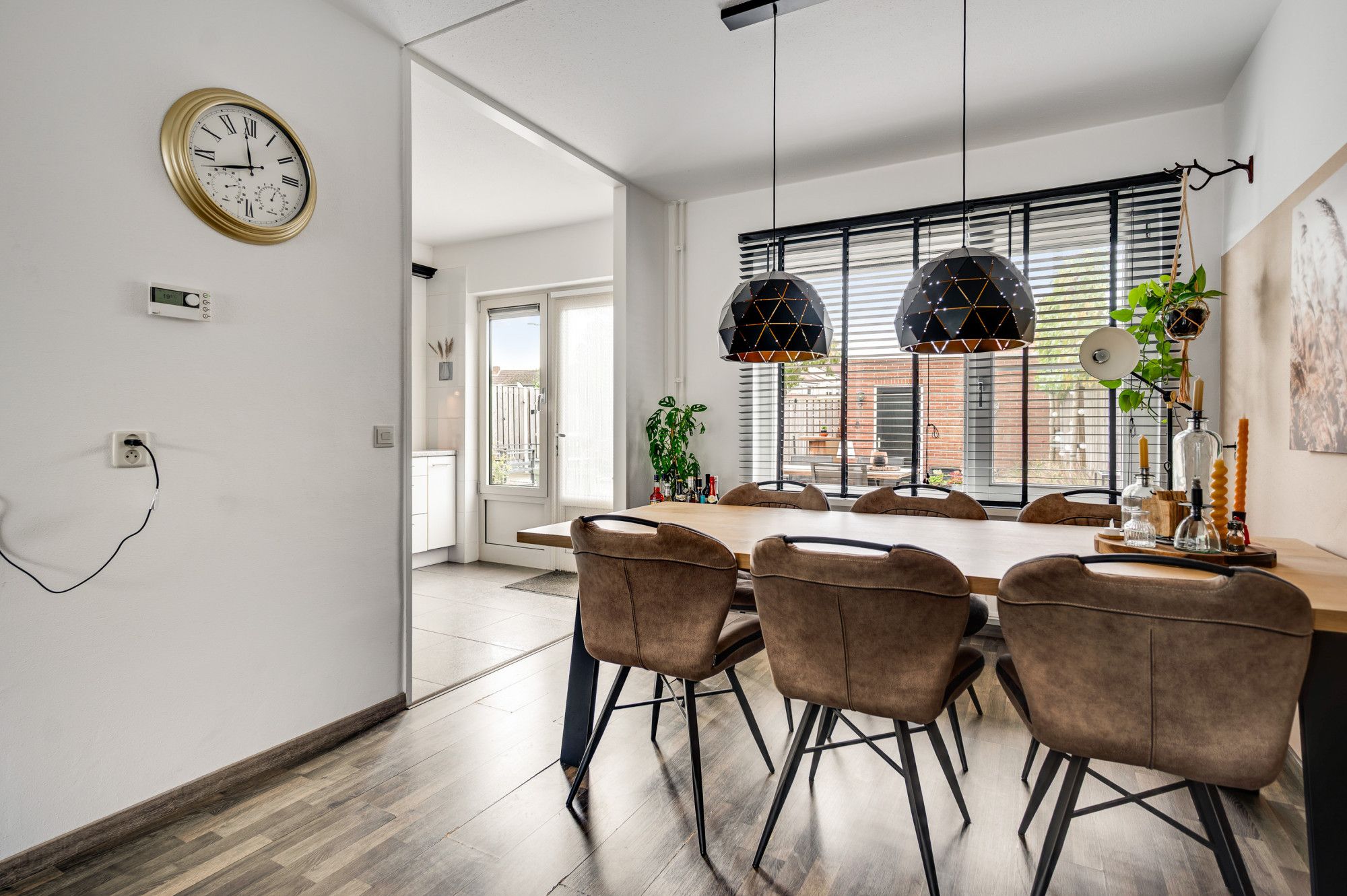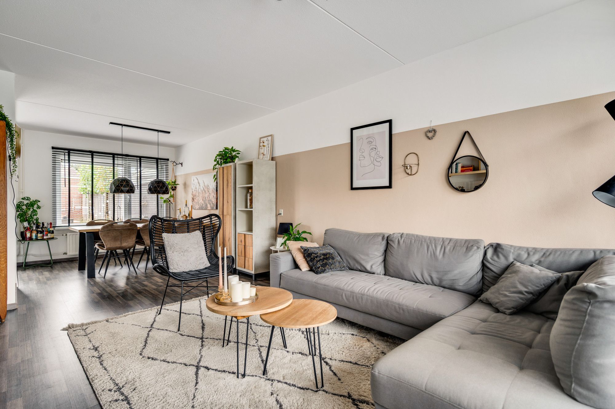 Via de hal met meterkast en moderne toiletruimte met zwevend toilet en fonteintje bereikt u de sfeervolle woonkamer. Grote ramen aan zowel de voor- als achterzijde zorgen voor veel natuurlijk licht en een prettige woonbeleving. De halfopen keuken biedt een combinatie in hoekopstelling en is voorzien van een gasfornuis, afzuigkap, oven, koelkast en een vaatwasser. De magnetron en het koffiezetapparaat worden ter overname aangeboden. Via de loopdeur komt u direct in de zonnige achtertuin. De woonkamer beschikt verder over een praktische trapkast en de trap naar de eerste verdieping. De begane grond is grotendeels voorzien van een laminaatvloer, wat bijdraagt aan een warme en uitnodigende sfeer.