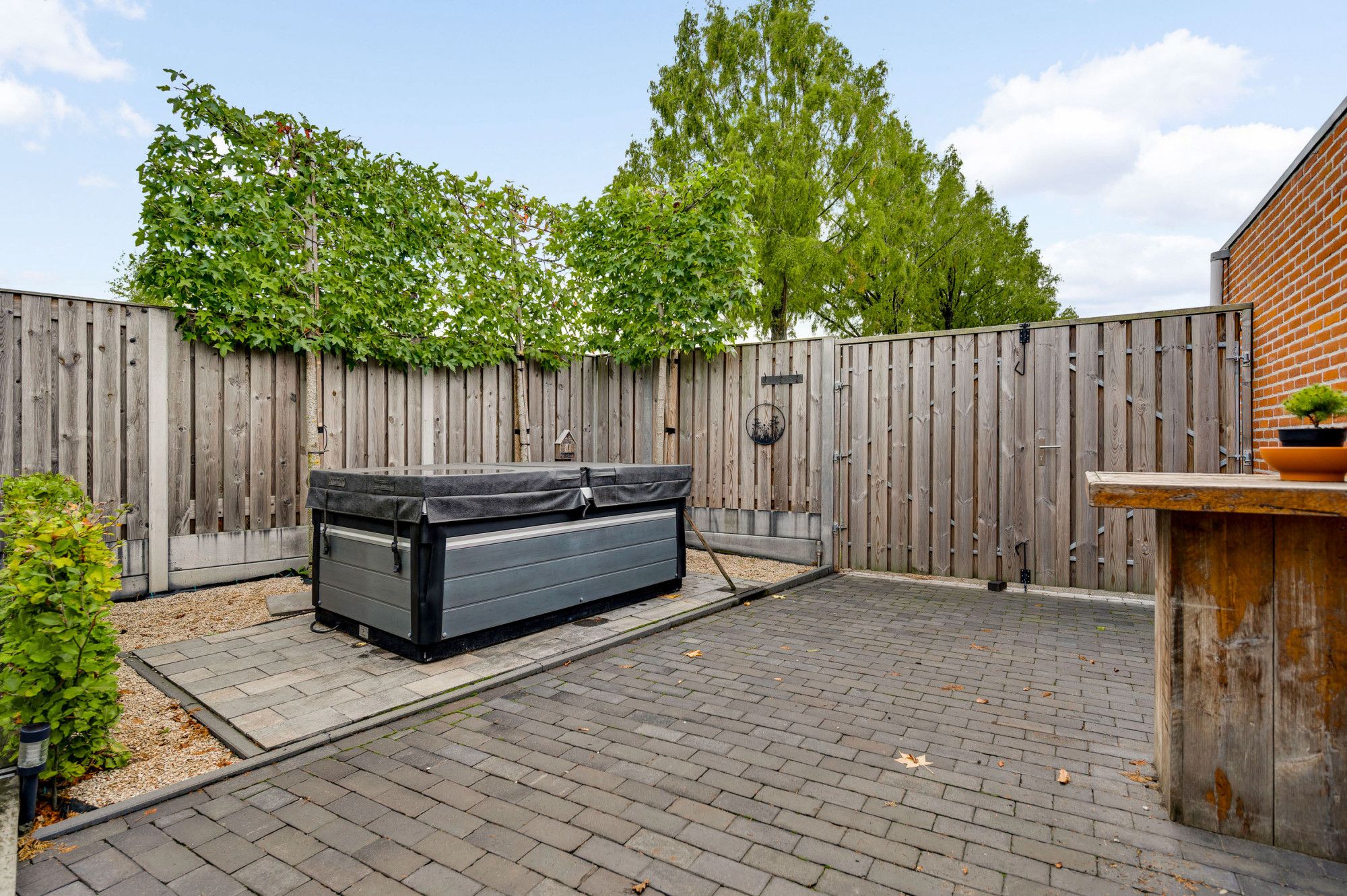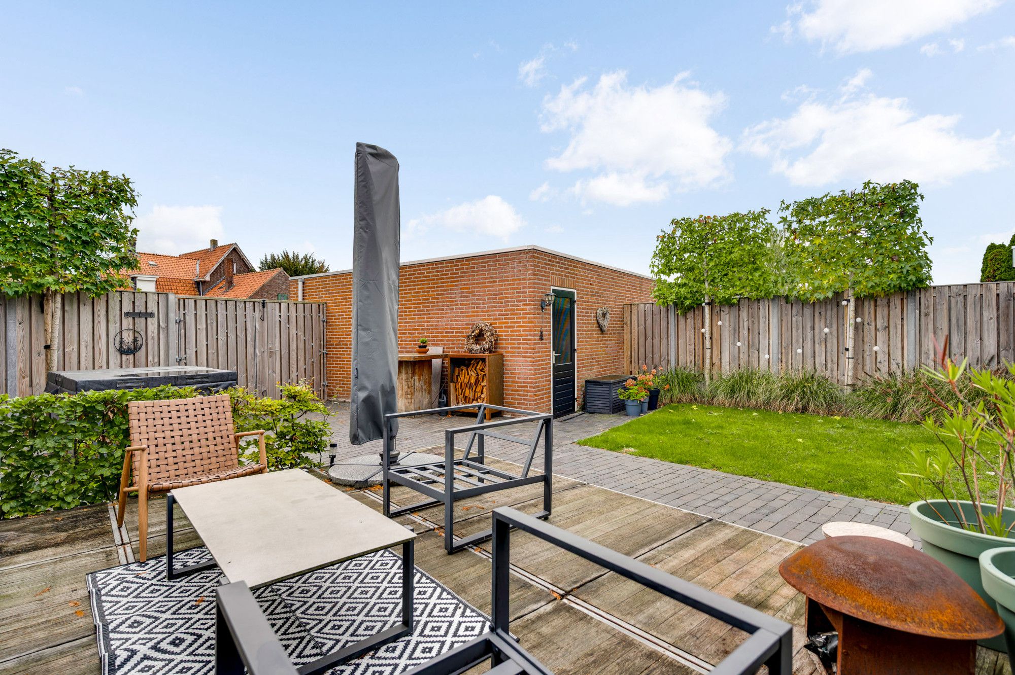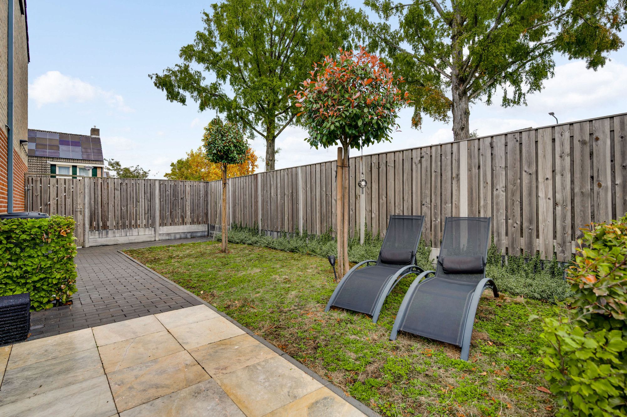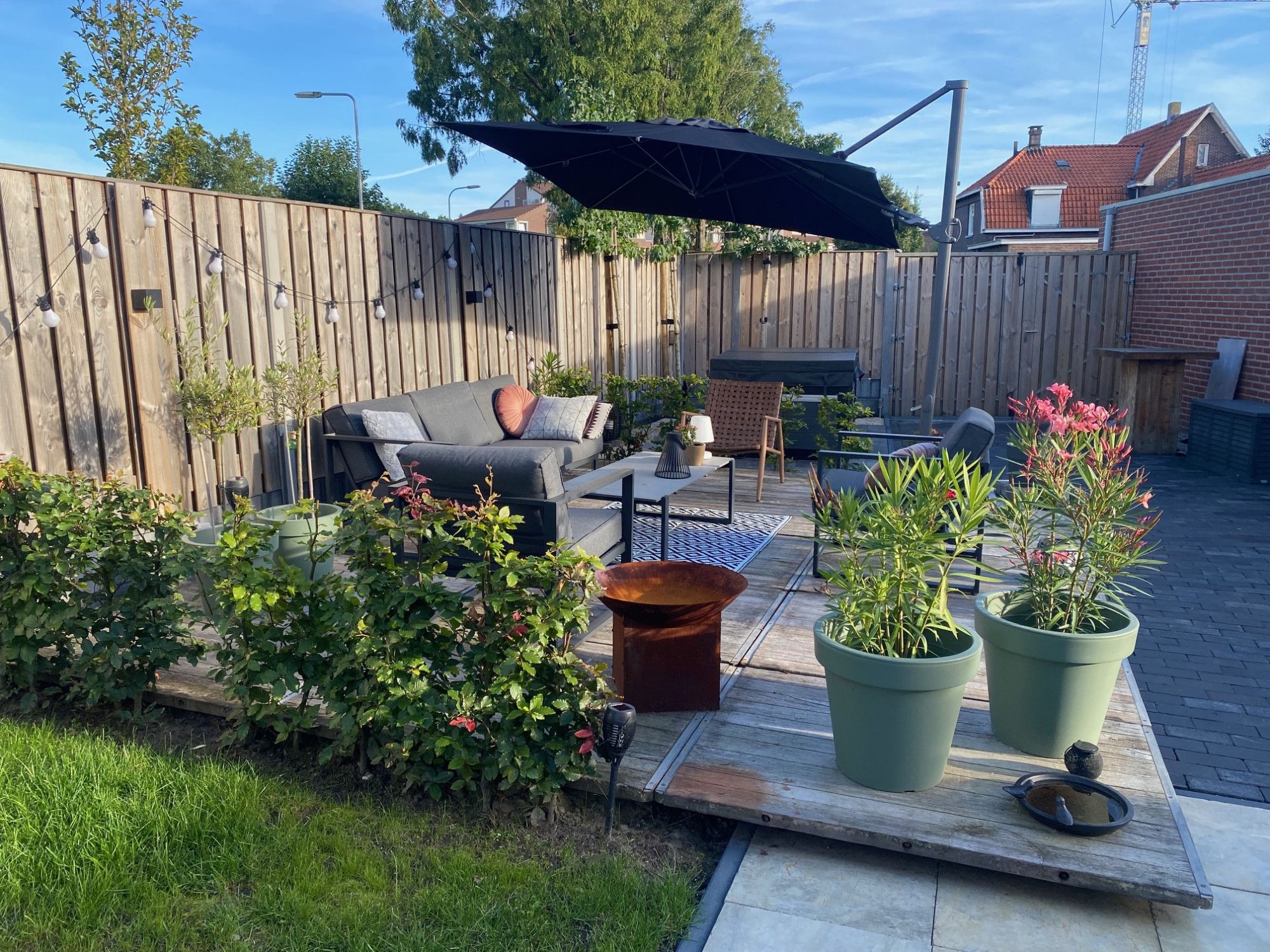 Er is een verzorgde voortuin met toegang tot de achterom en een zonnige achtertuin op het zuidoosten met veel privacy. Verder is er een eigen vrijstaande garage met elektra en witgoedaansluitingen, een terras met zonnescherm, gazon en beplanting. De tuin is een prettige plek om tot rust te komen of te genieten van gezellige momenten met familie en vrienden.