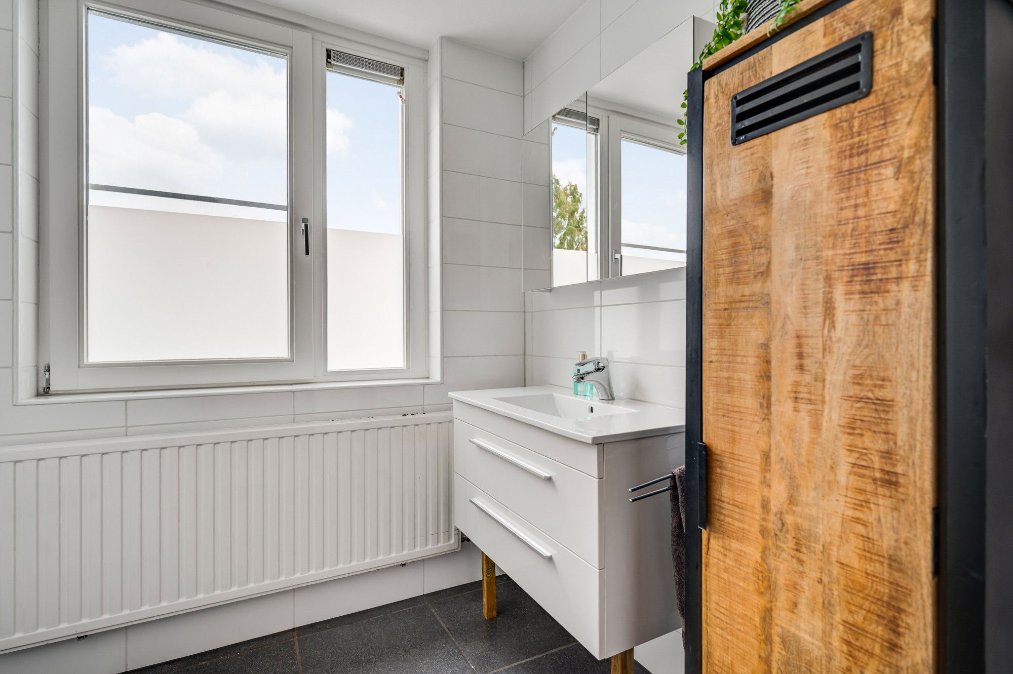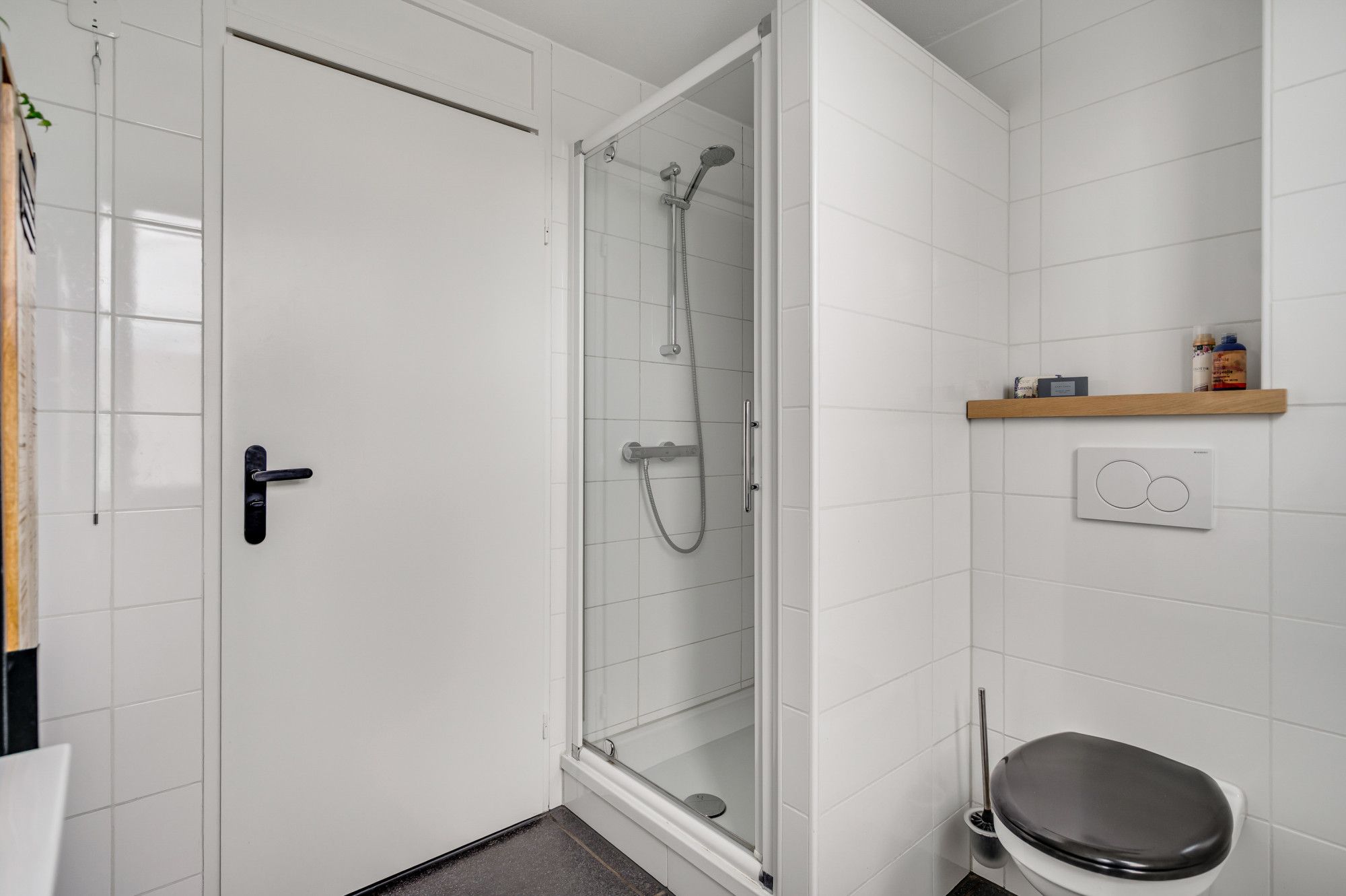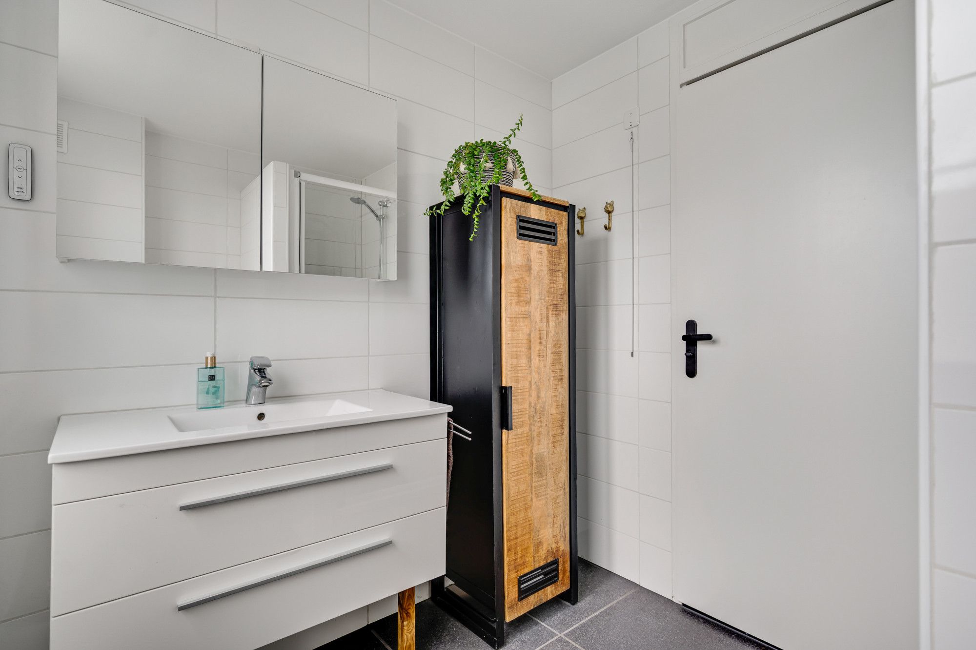 De overloop biedt toegang tot de eerste drie slaapkamers en de volledig betegelde badkamer, uitgerust met een douche, zwevend toilet en wastafelmeubel. Ook de eerste verdieping is (met uitzondering van de badkamer) voorzien van een laminaatvloer.