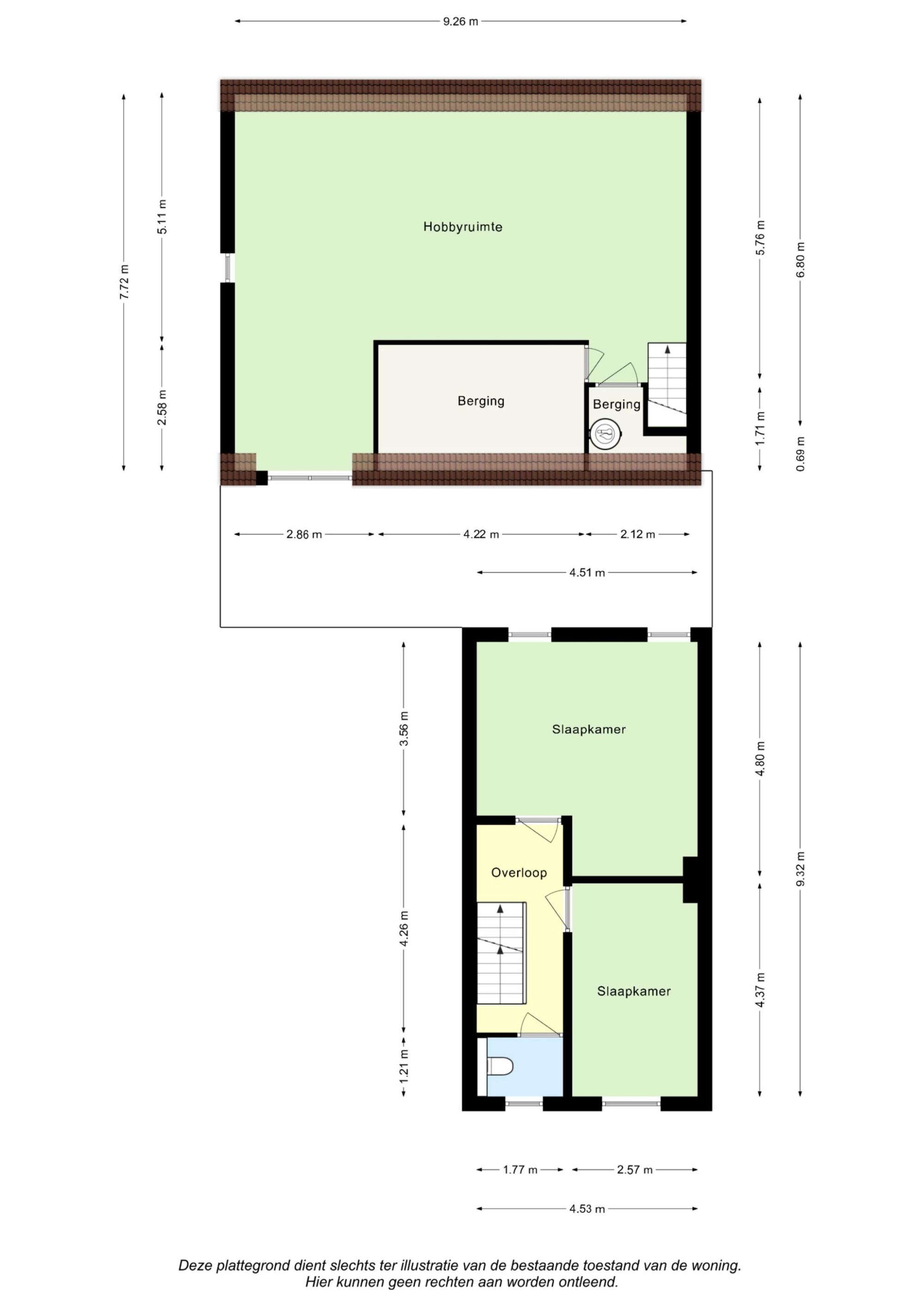 De overloop v.v. separate toiletruimte biedt toegang tot slaapkamer I (4,37 m x 2,57 m) en slaapkamer II (4,80 m/ 3,56 m x 4,53 m/ 2,57 m).