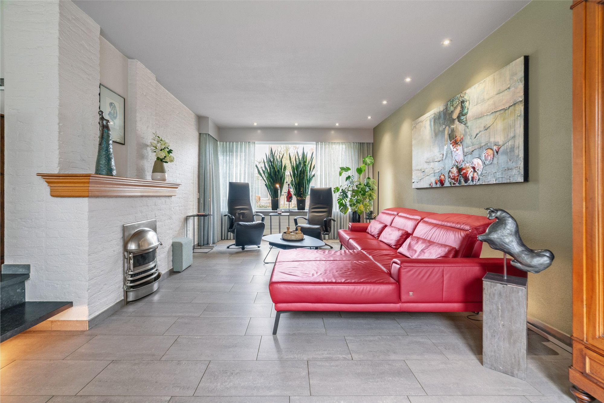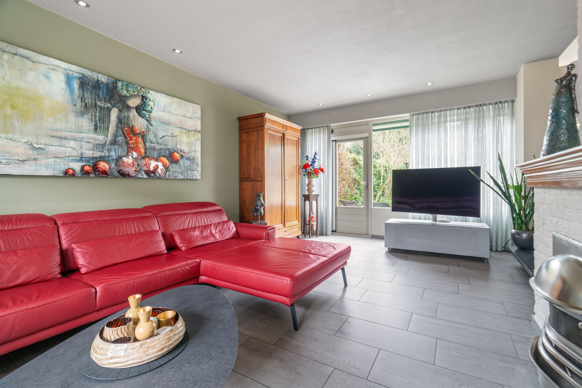 De doorzonwoonkamer met open haard geniet van grote raampartijen aan zowel de voor- als achterzijde, wat zorgt voor een prettige lichtinval gedurende de dag. Vanuit de woonkamer is er directe toegang tot de achtertuin.