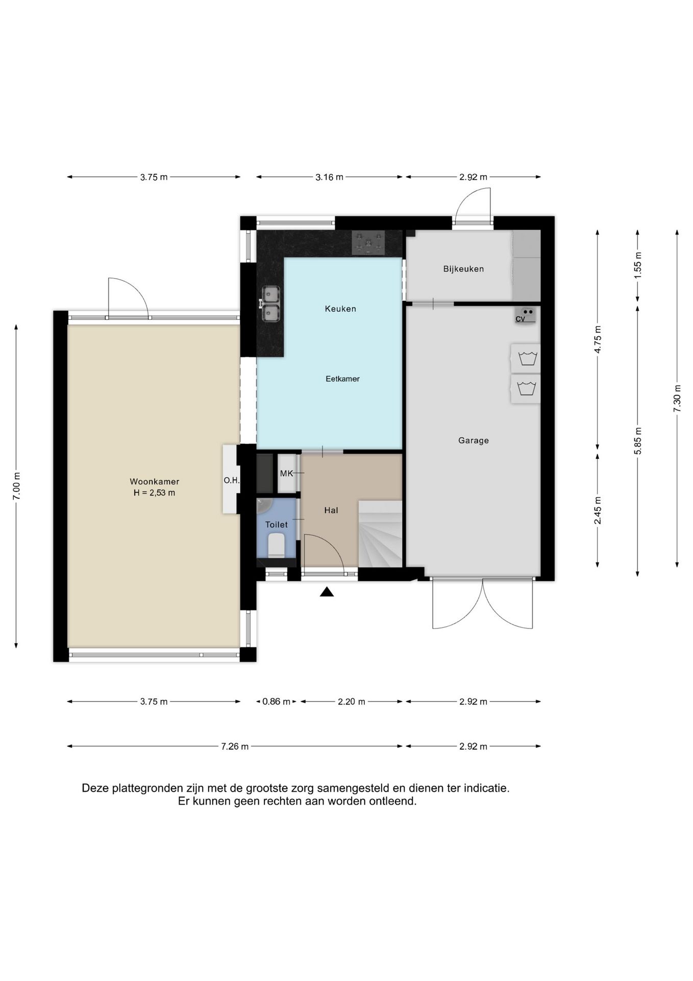 Alle door ons kantoor verstrekte informatie omtrent onroerende zaken, moet beschouwd worden als een uitnodiging om in onderhandeling te treden, en is geheel vrijblijvend! Alle vermelde maten en afmetingen zijn slechts bij benadering. Aan deze beperkte info kunnen geen rechten worden ontleend. Indien in enige documentatie of op enige website informatie staat die niet overeen komt met de werkelijkheid, dan geldt de feitelijke situatie waarin de woning zich bevindt, zoals koper deze tijdens de bezichtiging heeft kunnen waarnemen, en wordt de woning in deze feitelijke situatie/staat verkocht. Een (eventueel) bijgevoegde plattegrond dient uitsluitend als globale indicatie/visualisatie. Hieraan kunnen uitdrukkelijk geen rechten worden ontleend.