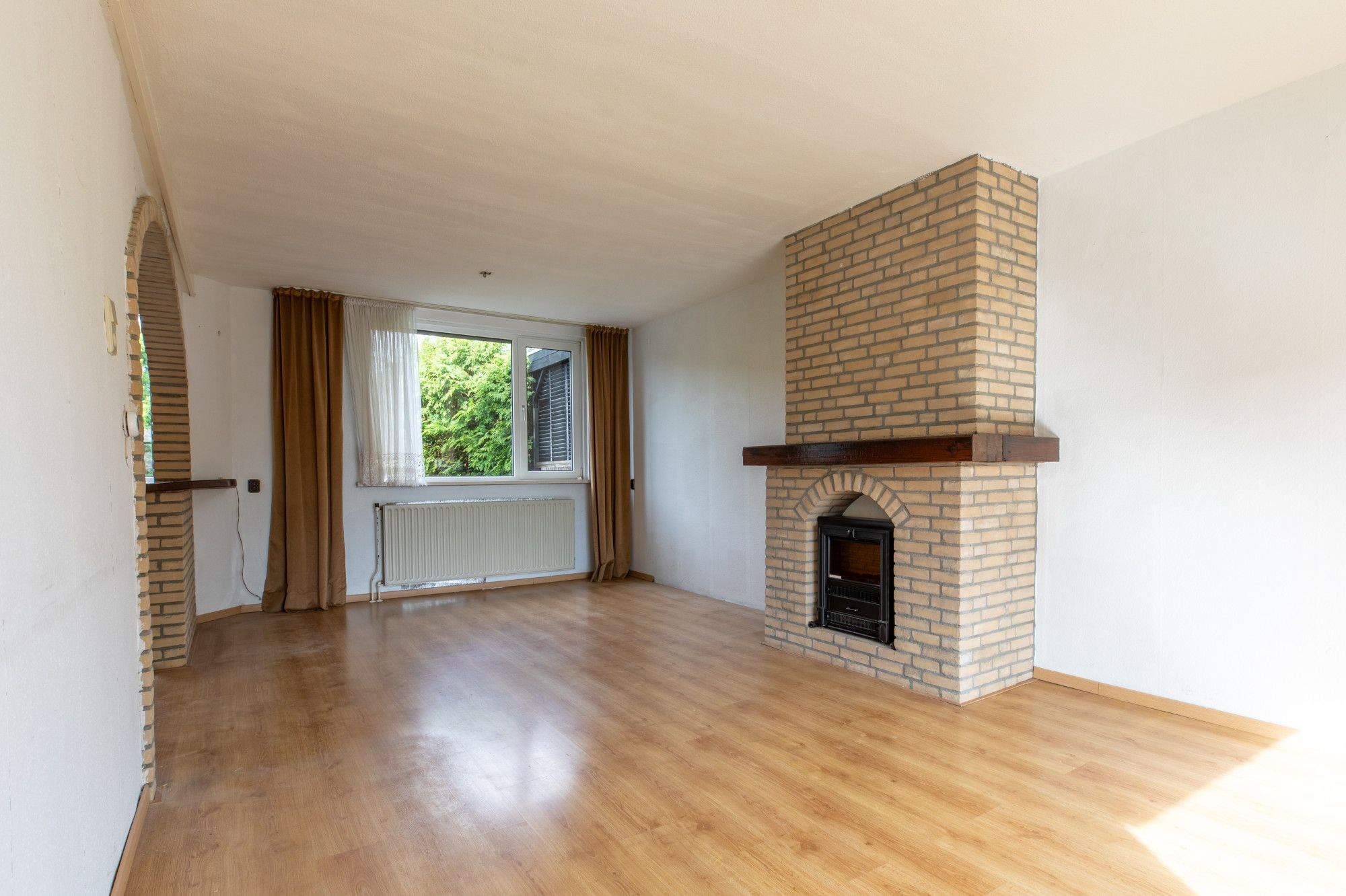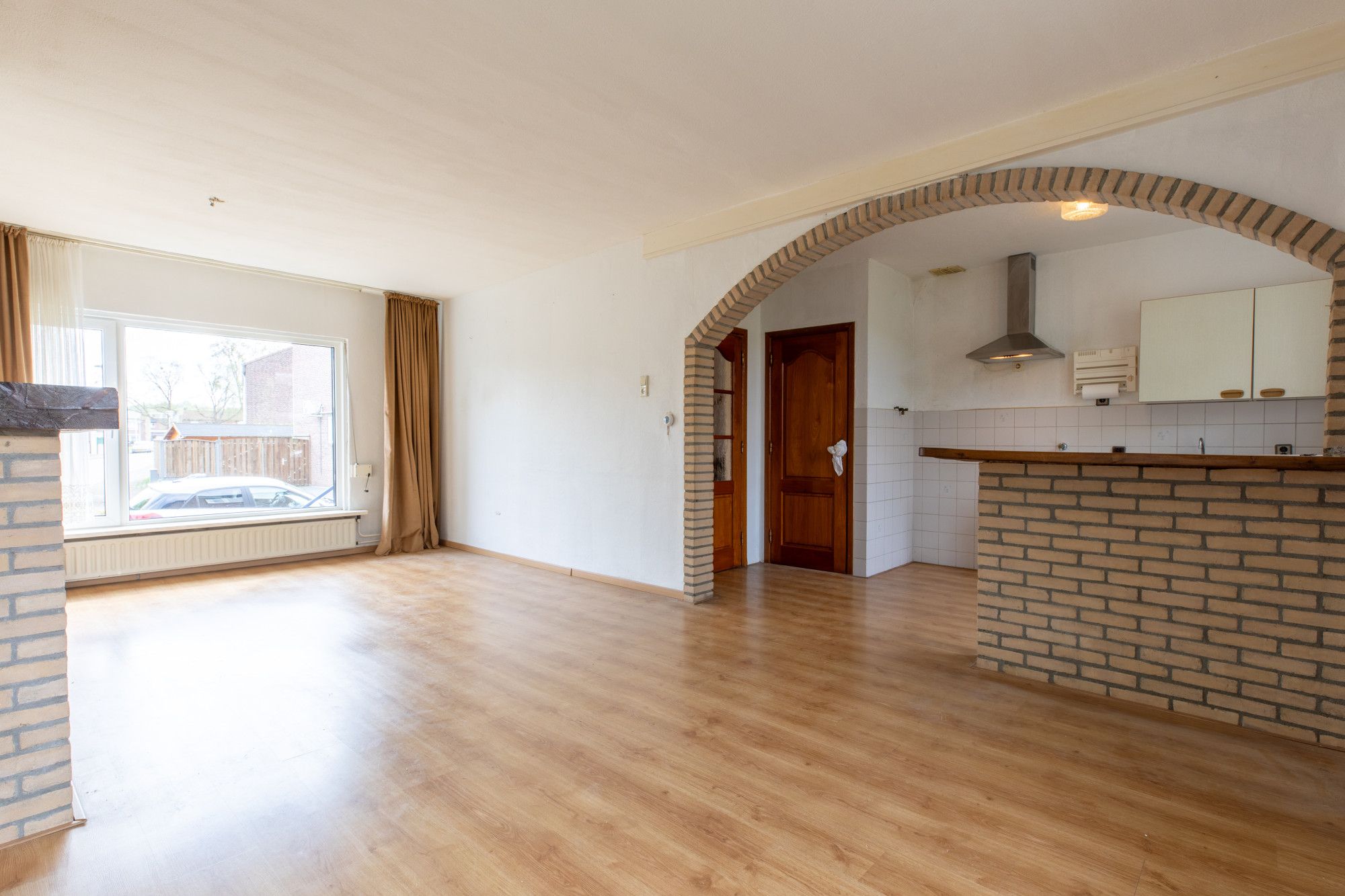 Woonkamer (7.30 x 3.71 m) voorzien van laminaatvloer.