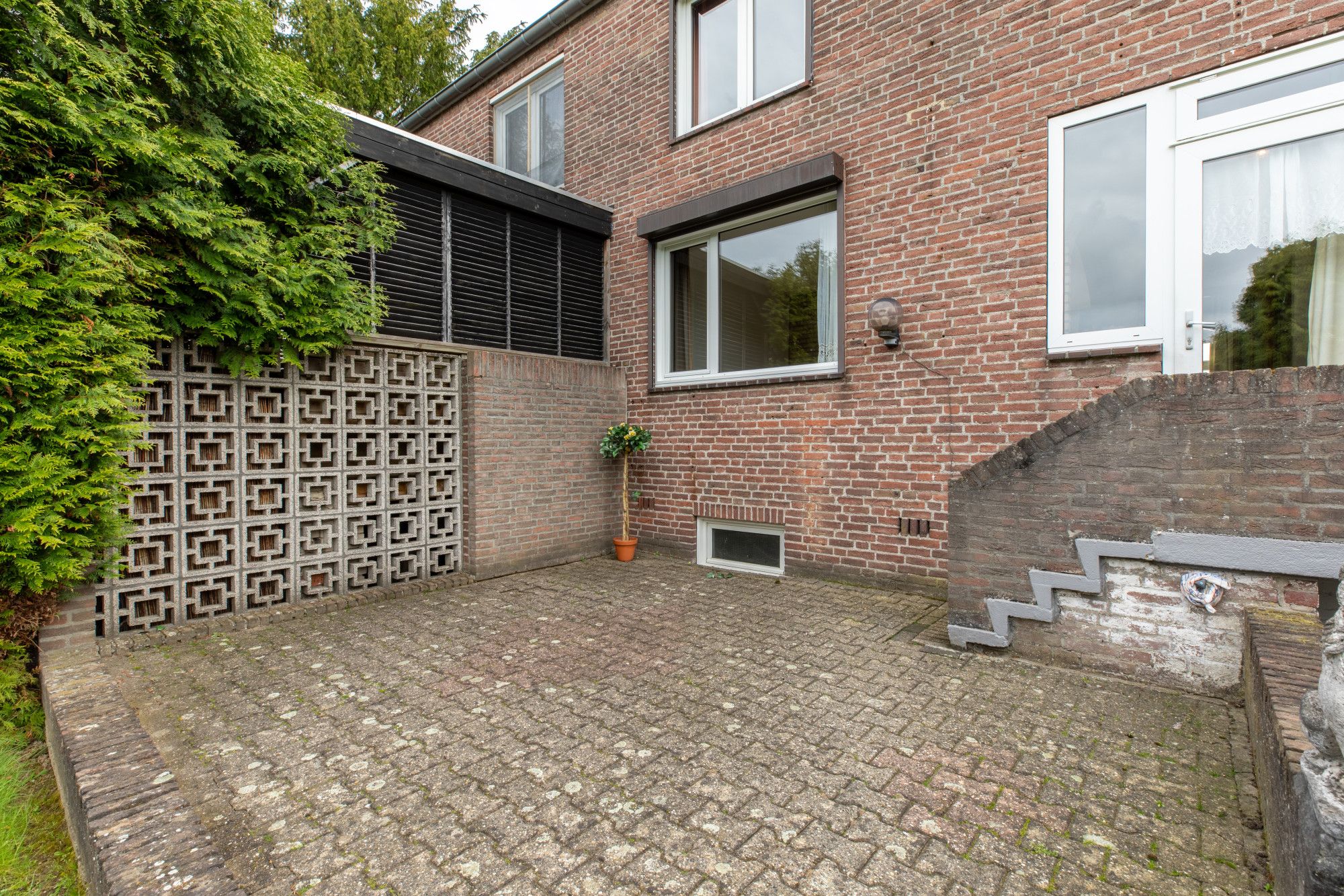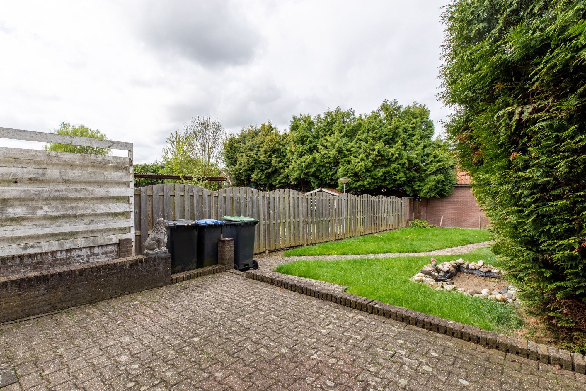 Voortuin met bestrating naar entree.