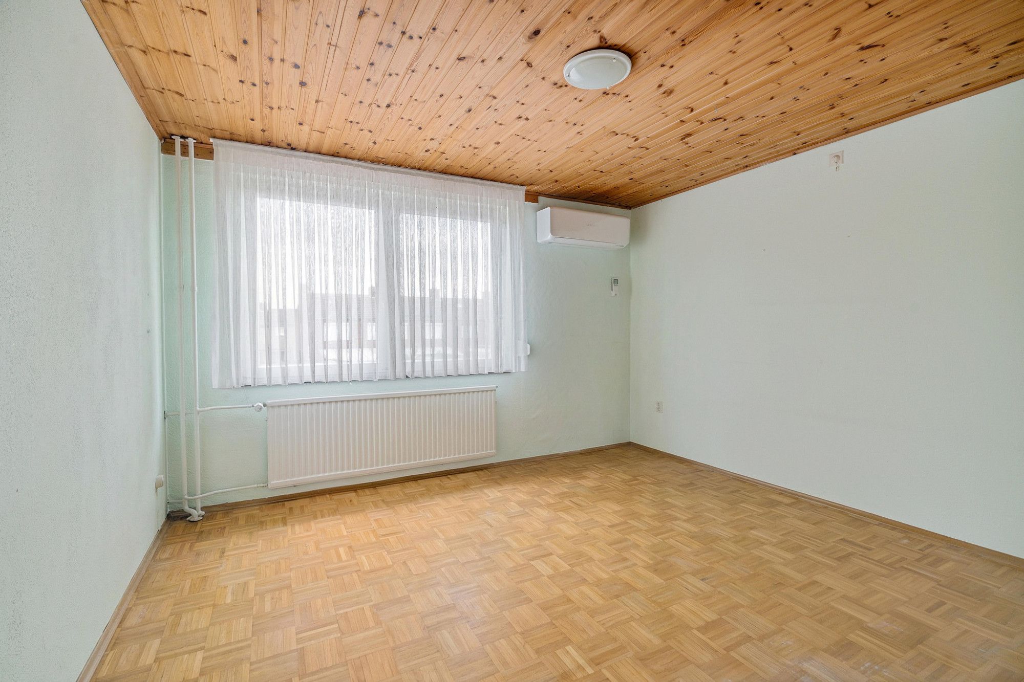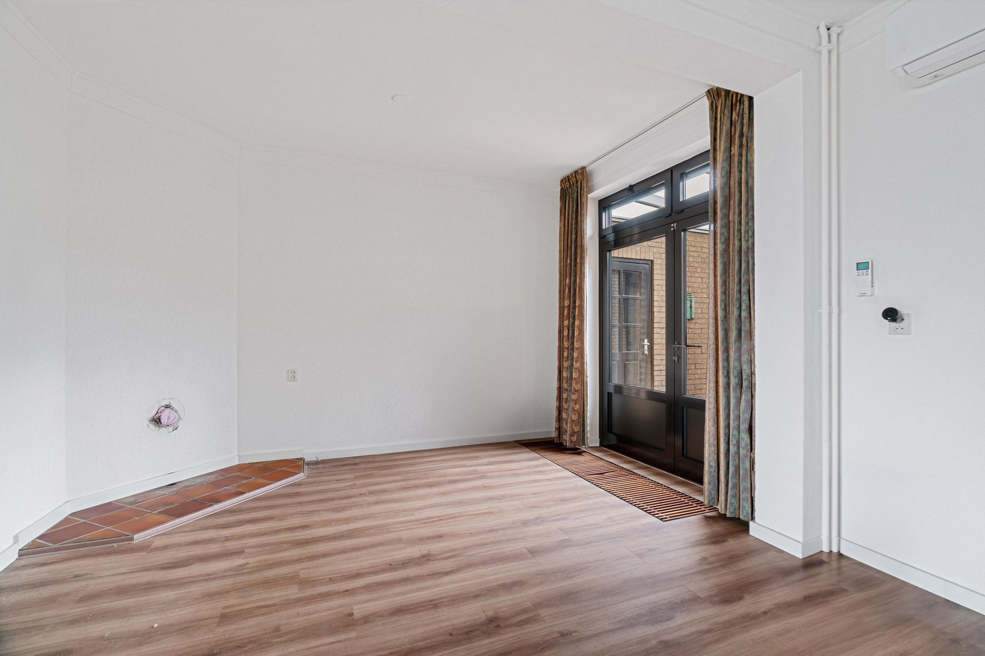 Overloop met parketvloer en airconditioning.