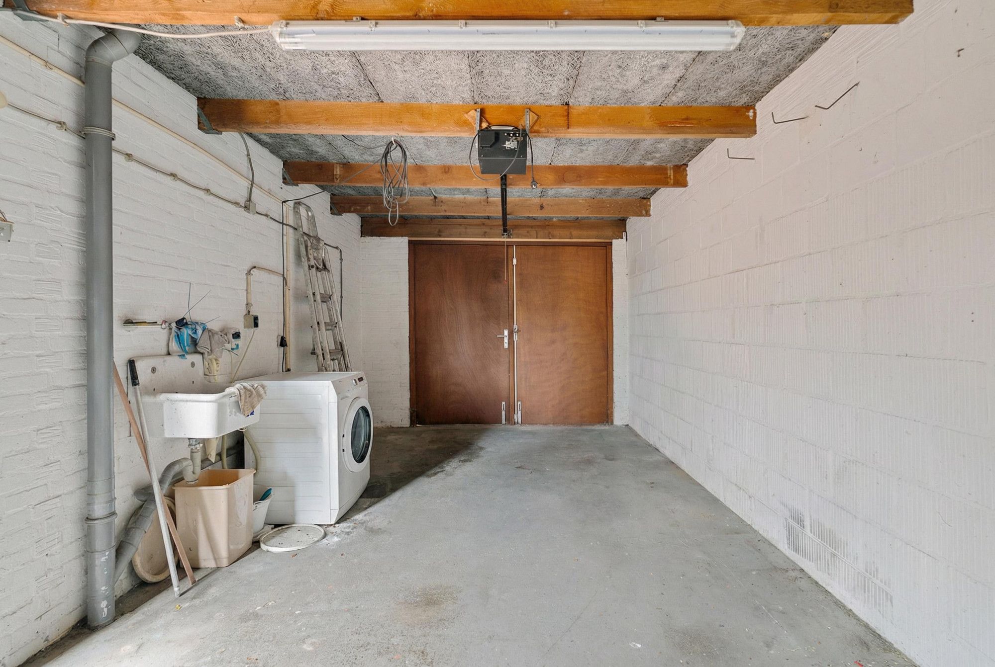 Daarnaast beschikt de woning over een royale garageberging (7.08 x 3.00 m) met aansluitingen voor wasmachine en droger en een vaste wastafel.
