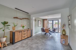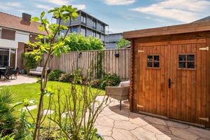 Vanuit de woonkamer zijn er openslaande tuindeuren die toegang bieden tot de achtertuin. De openkeuken en de sfeervolle zonnige doorzonwoonkamer (ca. 47m2) bieden veel natuurlijke lichtinval. De onderhoudsvriendelijke omheinde achtertuin is gelegen op het Noorden en heeft een vrije achterom een tuinhuisje, gazon, beplanting en een zeer ruim terras.