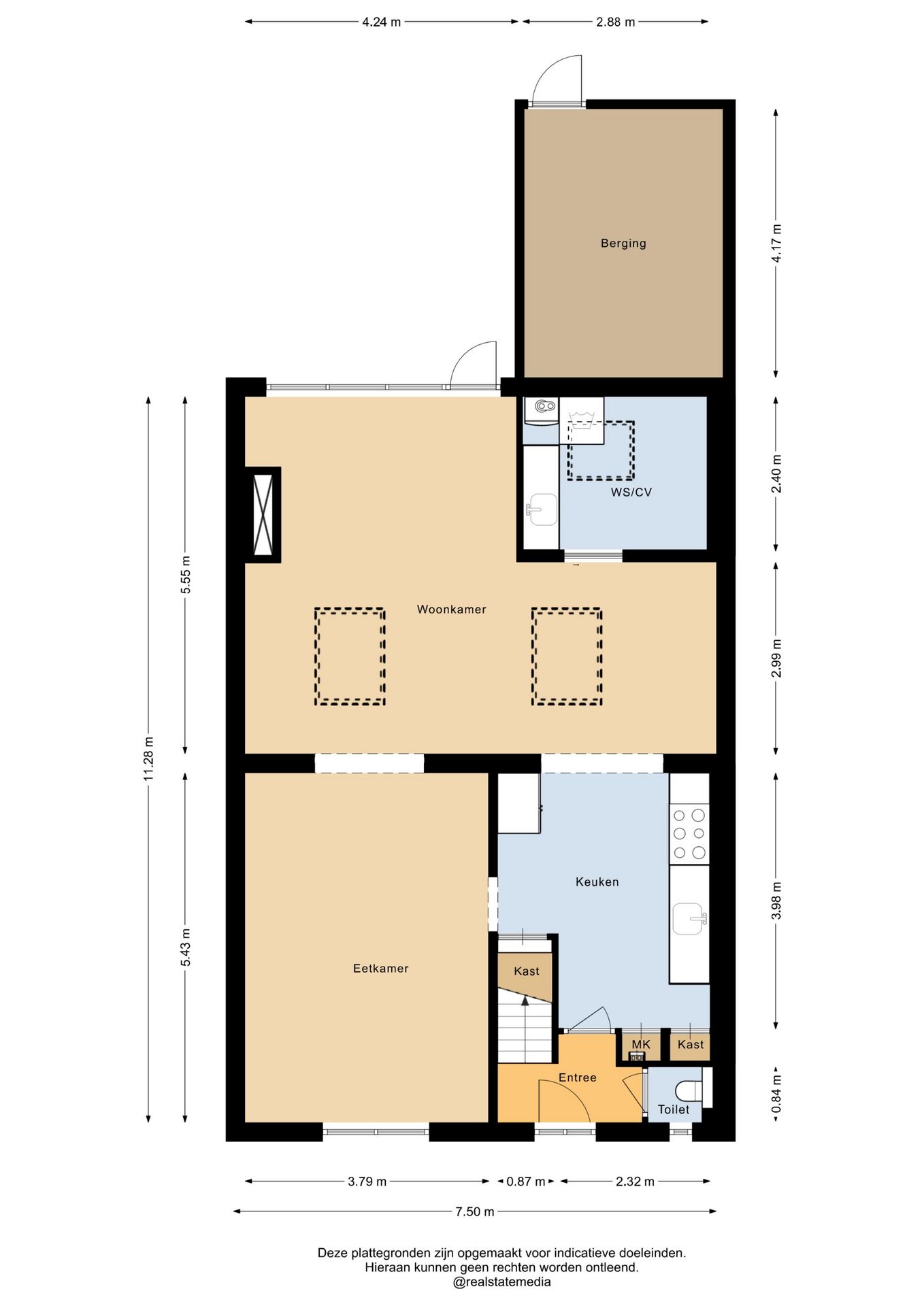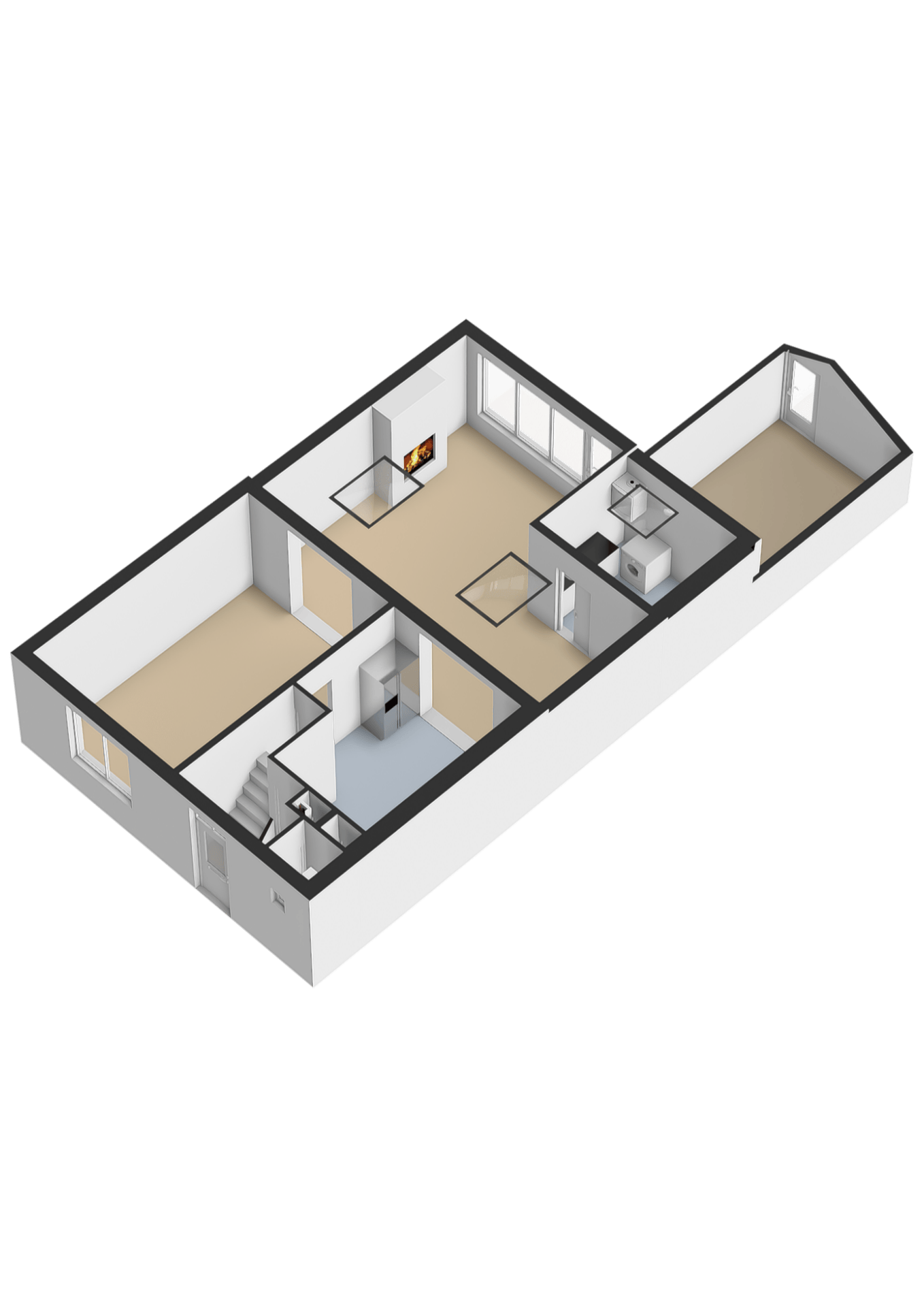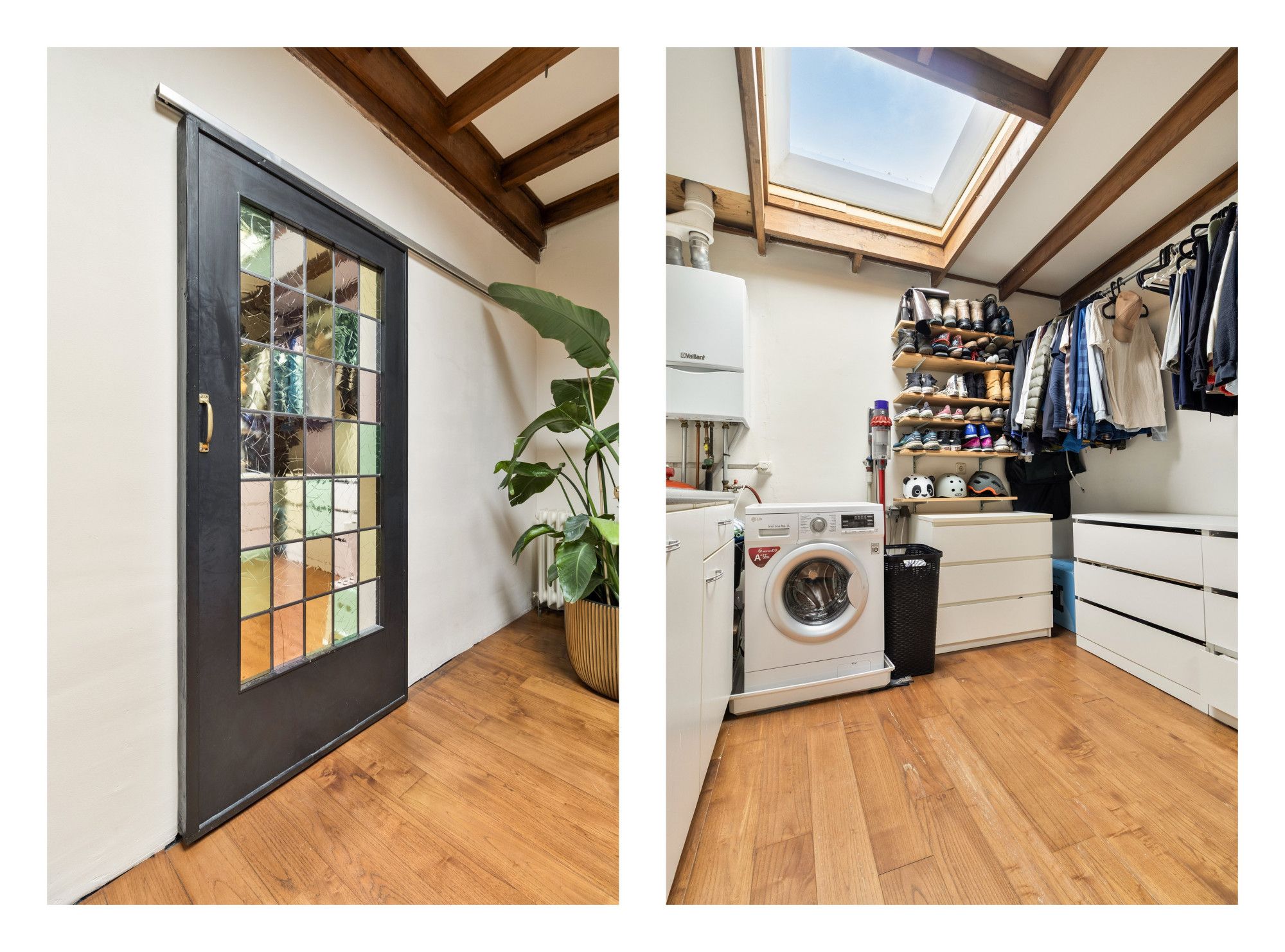 Daarnaast bevindt zich op de begane grond een aparte wasruimte. Deze ruimte is voorzien van een wasbak en aansluitingen voor de wasmachine. Tevens is hier de cv-installatie geplaatst.