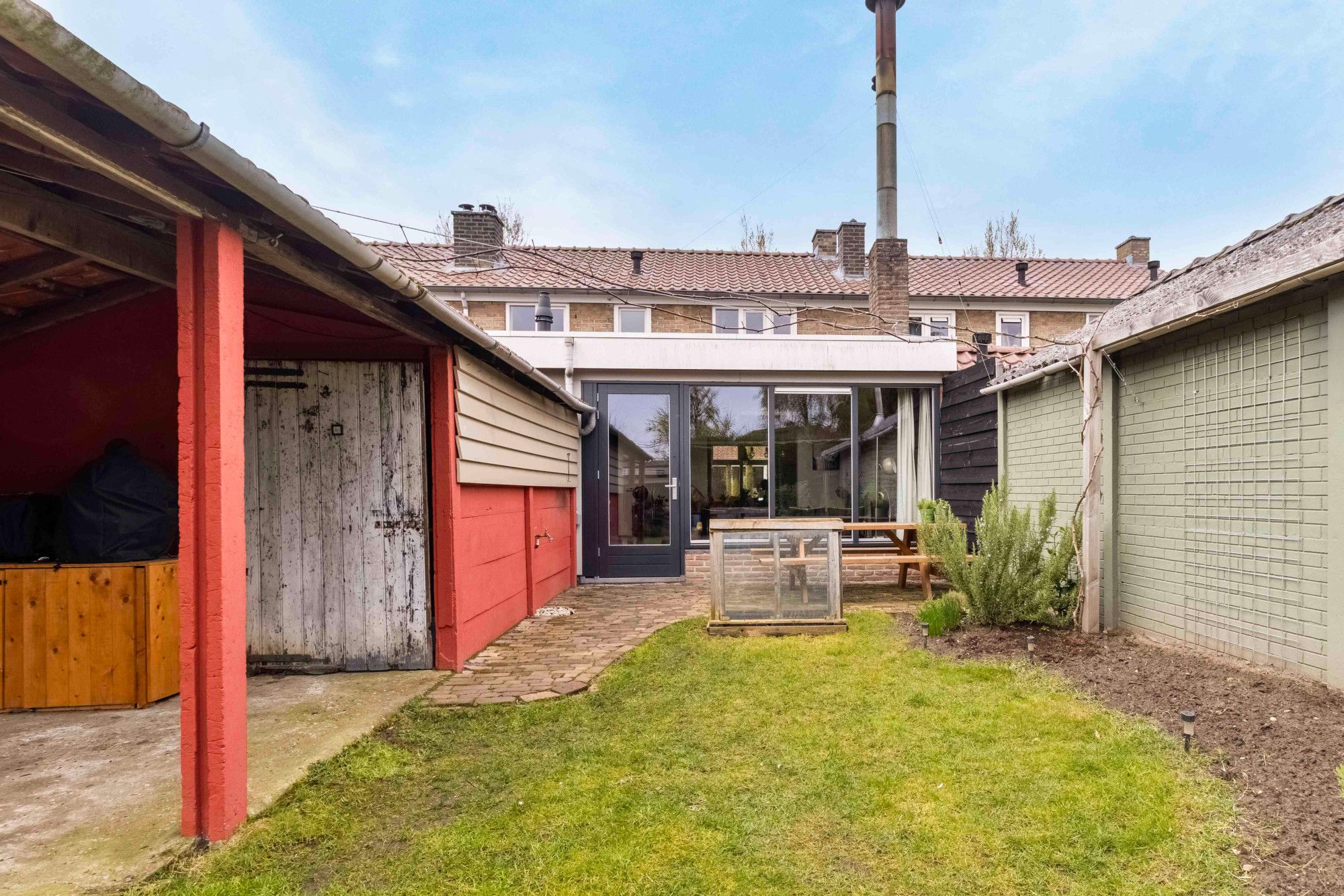 De woning beschikt over een ruime achtertuin van circa 119 m². De tuin is voorzien van een overkapping, waardoor je ook bij minder goed weer comfortabel buiten kunt zitten. Dit maakt de tuin een fijne plek om te ontspannen, te genieten van het buitenleven of gezellig samen te komen met familie en vrienden. De tuin biedt enorm veel privacy.