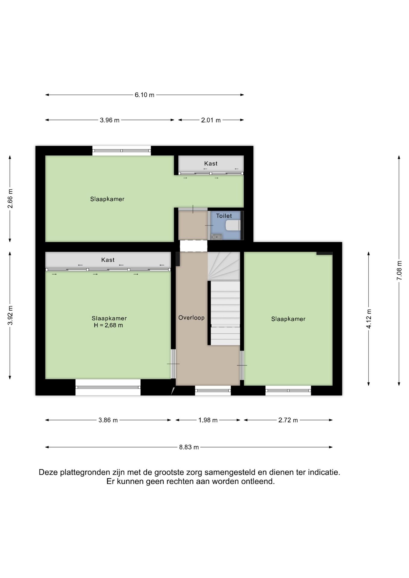 Alle door ons kantoor verstrekte informatie omtrent onroerende zaken, moet beschouwd worden als een uitnodiging om in onderhandeling te treden, en is geheel vrijblijvend! Alle vermelde maten en afmetingen zijn slechts bij benadering. Aan deze beperkte informatie kunnen geen rechten worden ontleend. Indien in enige documentatie of op enige website informatie staat die niet overeen komt met de werkelijkheid, dan geldt de feitelijke situatie waarin de woning zich bevindt, zoals koper deze tijdens de bezichtiging heeft kunnen waarnemen, en wordt de woning in deze feitelijke situatie/staat verkocht. Een (eventueel) bijgevoegde plattegrond dient uitsluitend als globale indicatie/visualisatie. Hieraan kunnen uitdrukkelijk geen rechten worden ontleend.