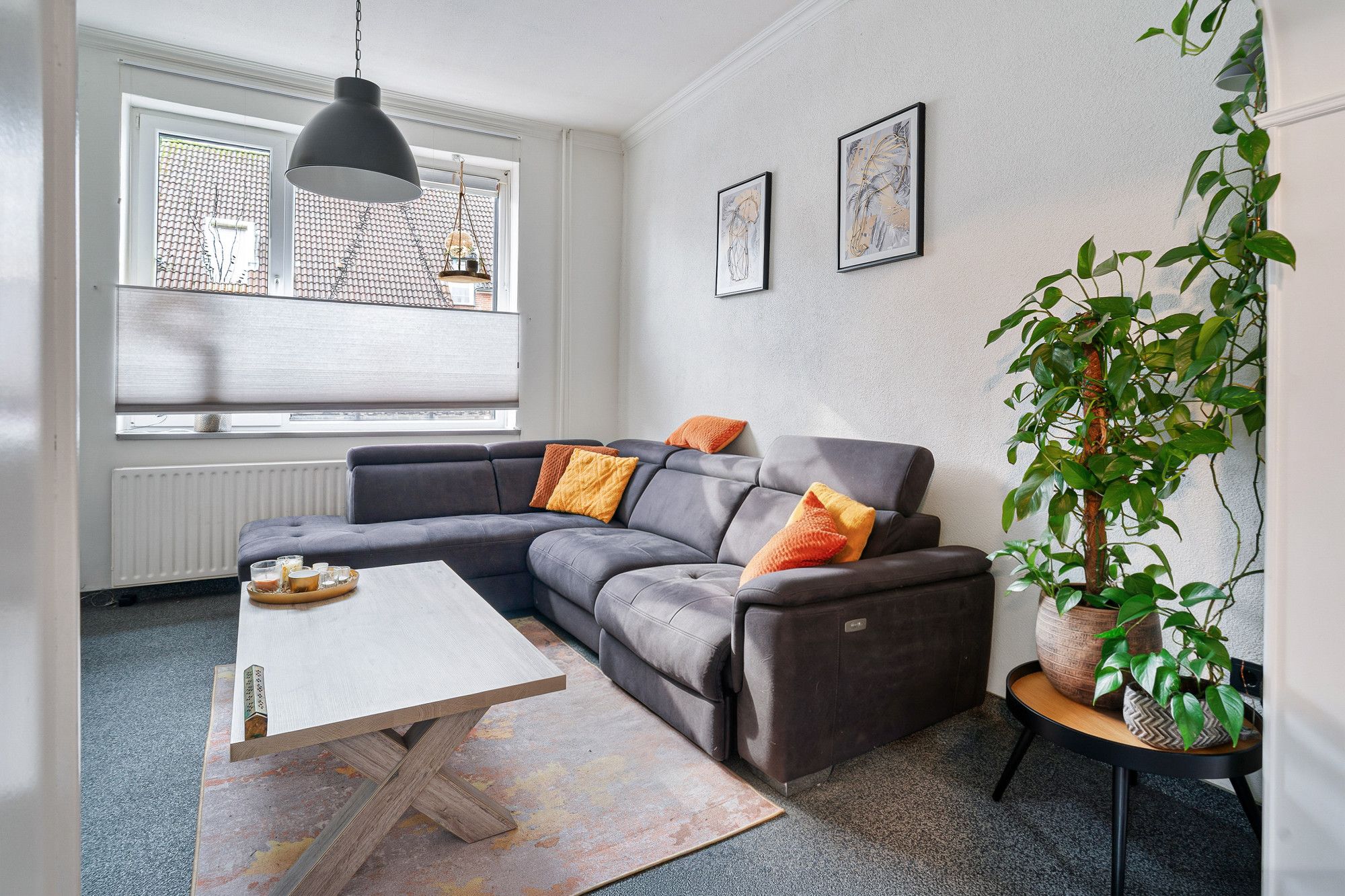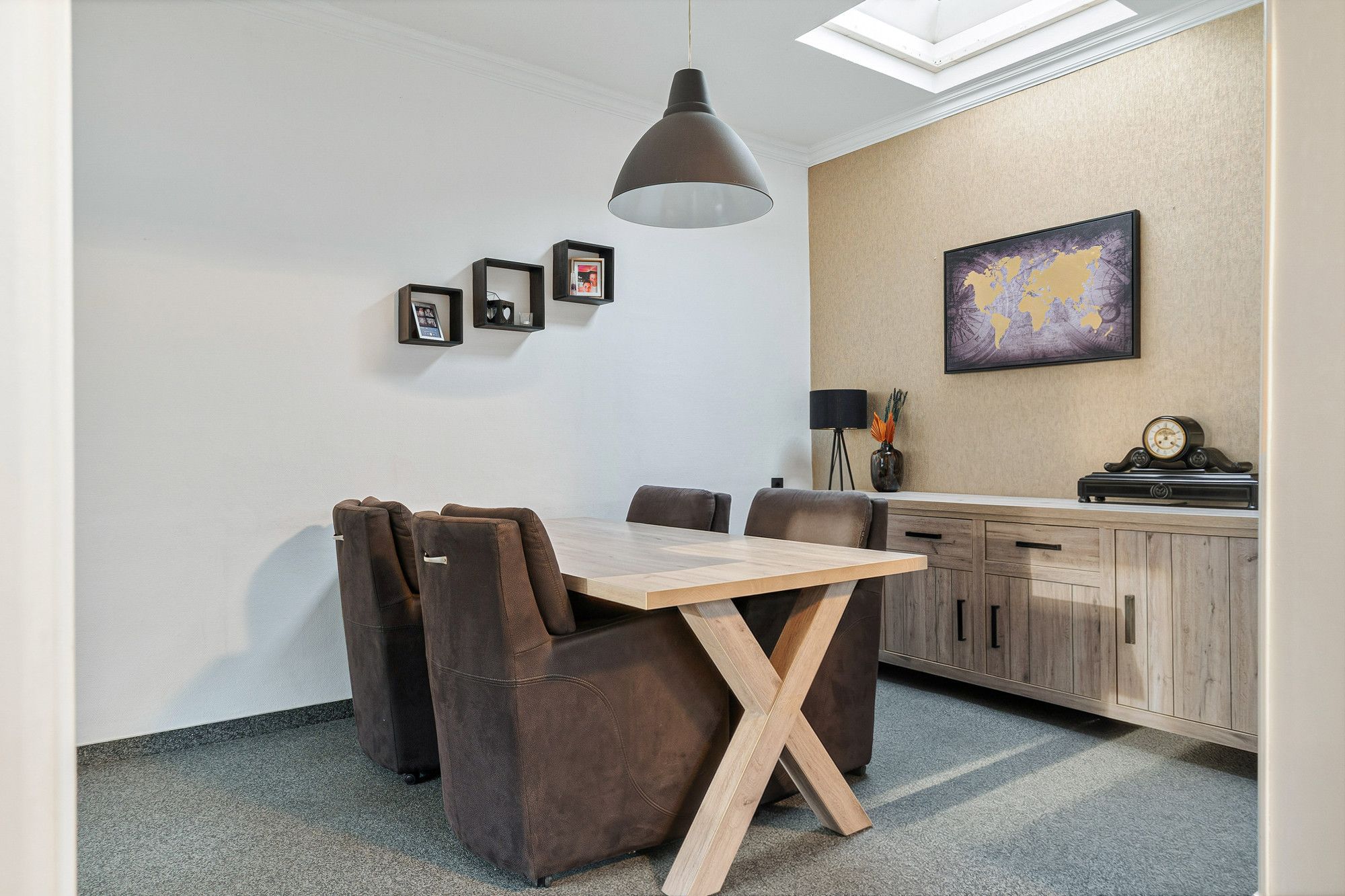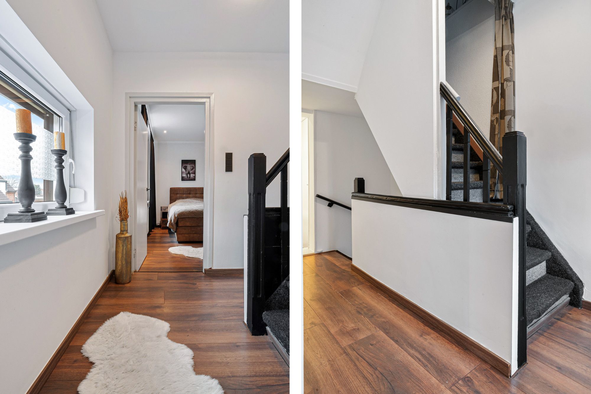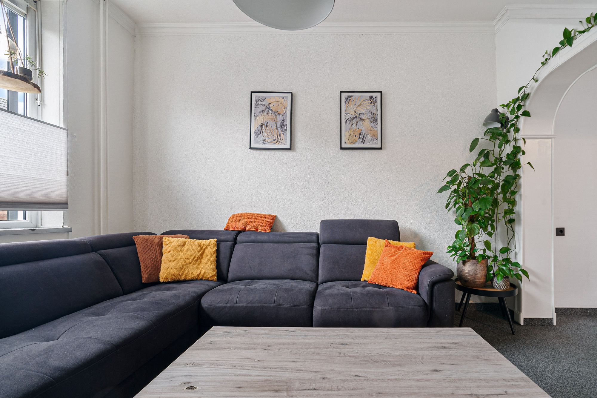 De doorlopende laminaatvloer geeft rust en een verzorgd geheel.