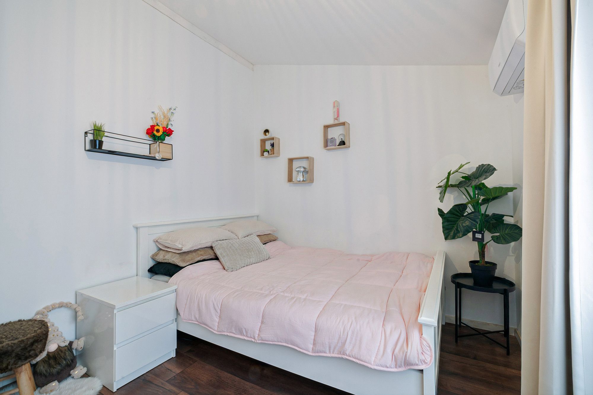 • De slaapkamer aan de achterzijde is voorzien van een praktische vaste kast;