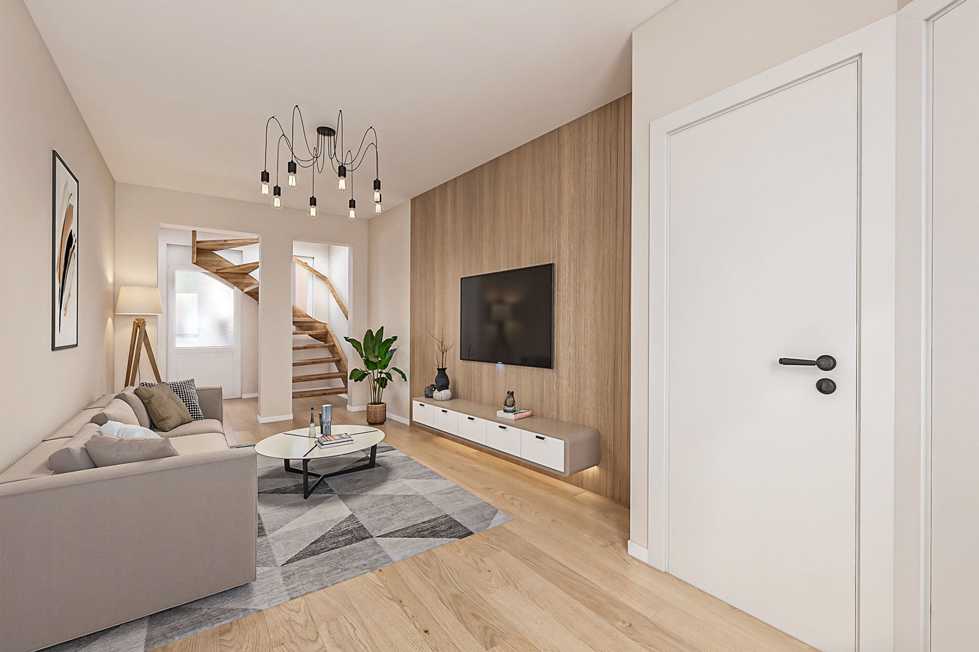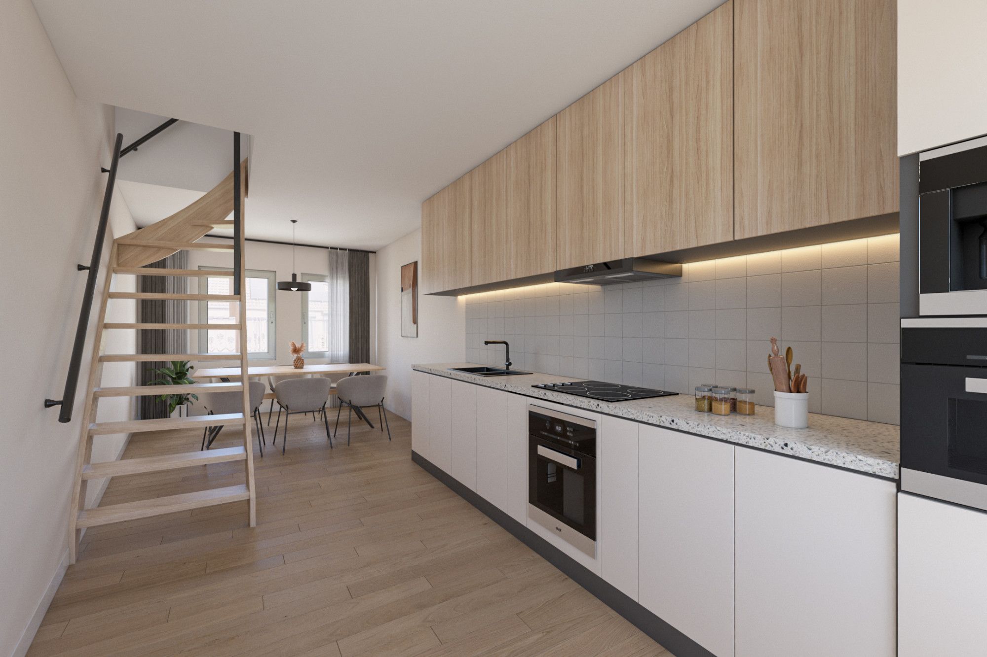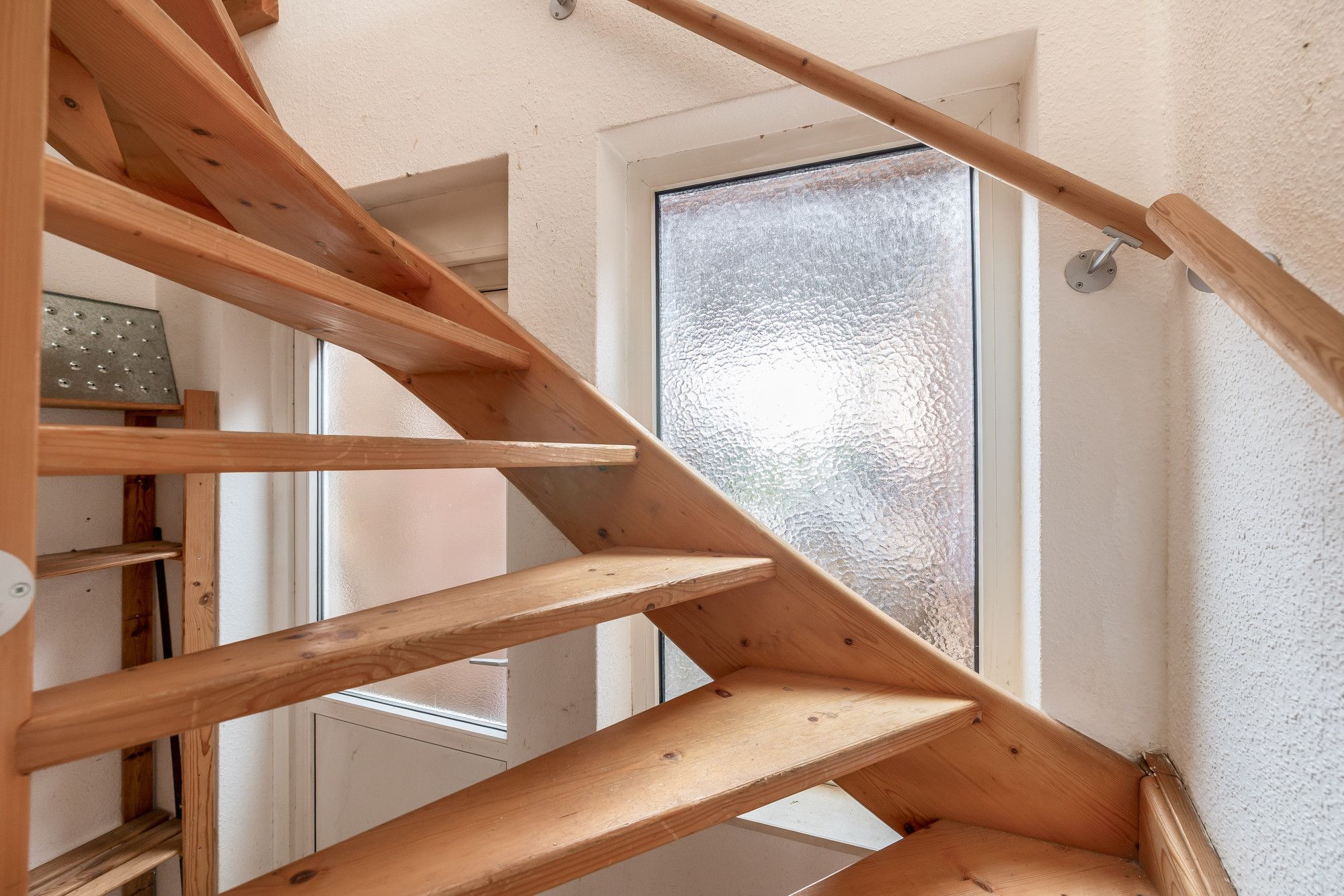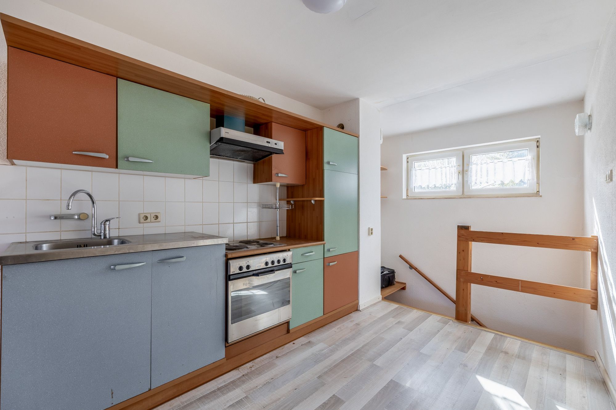 Op de eerste verdieping bevindt zich de woonkamer met een open, eenvoudig uitgevoerde keuken. De ruimte is praktisch ingericht en biedt diverse indelingsmogelijkheden. Vanuit de woonkamer bereikt u middels een vaste trap de tweede verdieping.