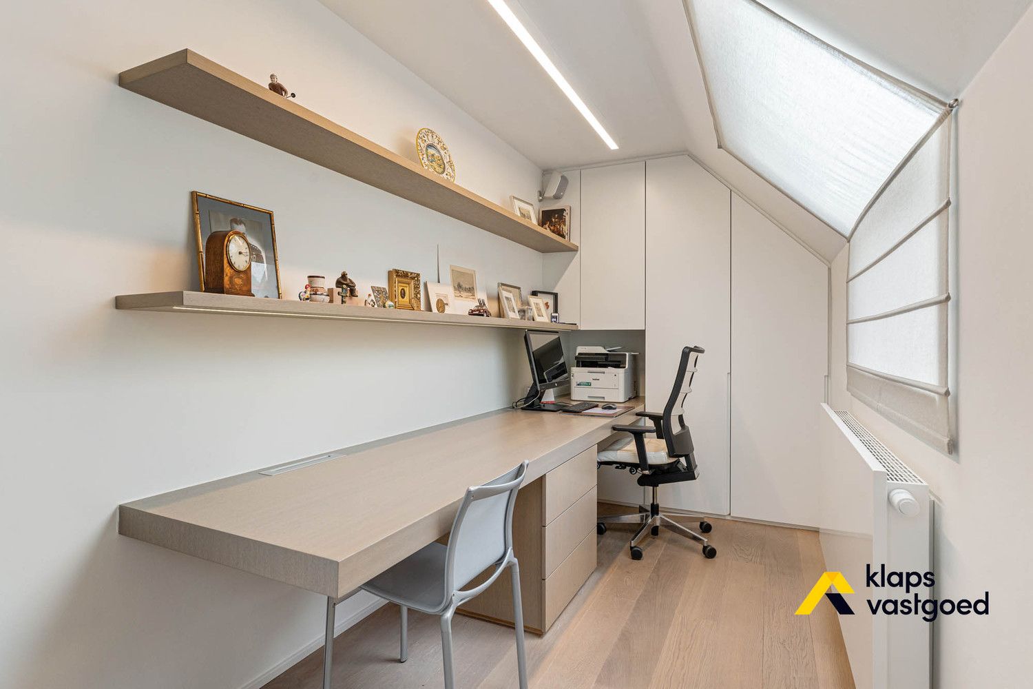 Achter de gevels wordt u verwend met een uitzonderlijk luxueus interieur, waaronder een prachtige keuken, verborgen T.V.-scherm, gashaard, massieve parket, tegelvloer en waterbestendig tapijt. De afwerking is van een superieure kwaliteit, met inbouwkasten en hoogwaardige materialen die zorgen voor een warme en stijlvolle sfeer.