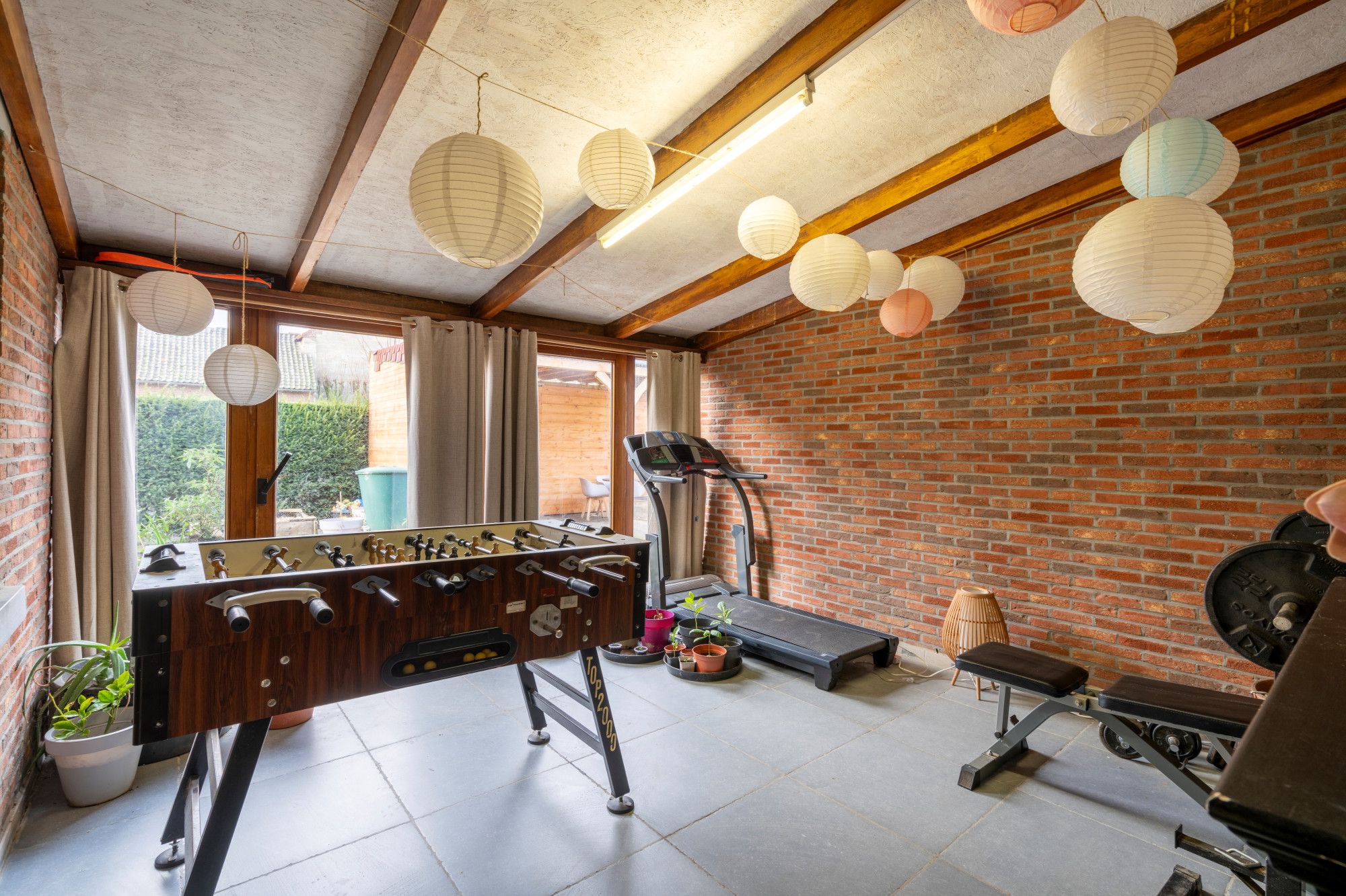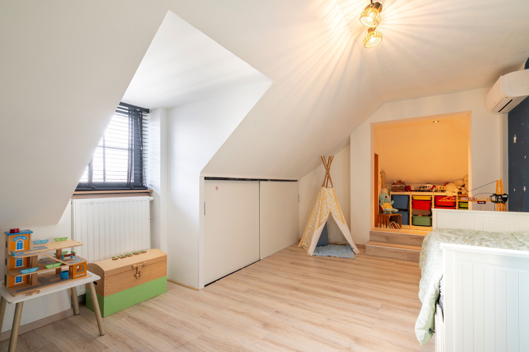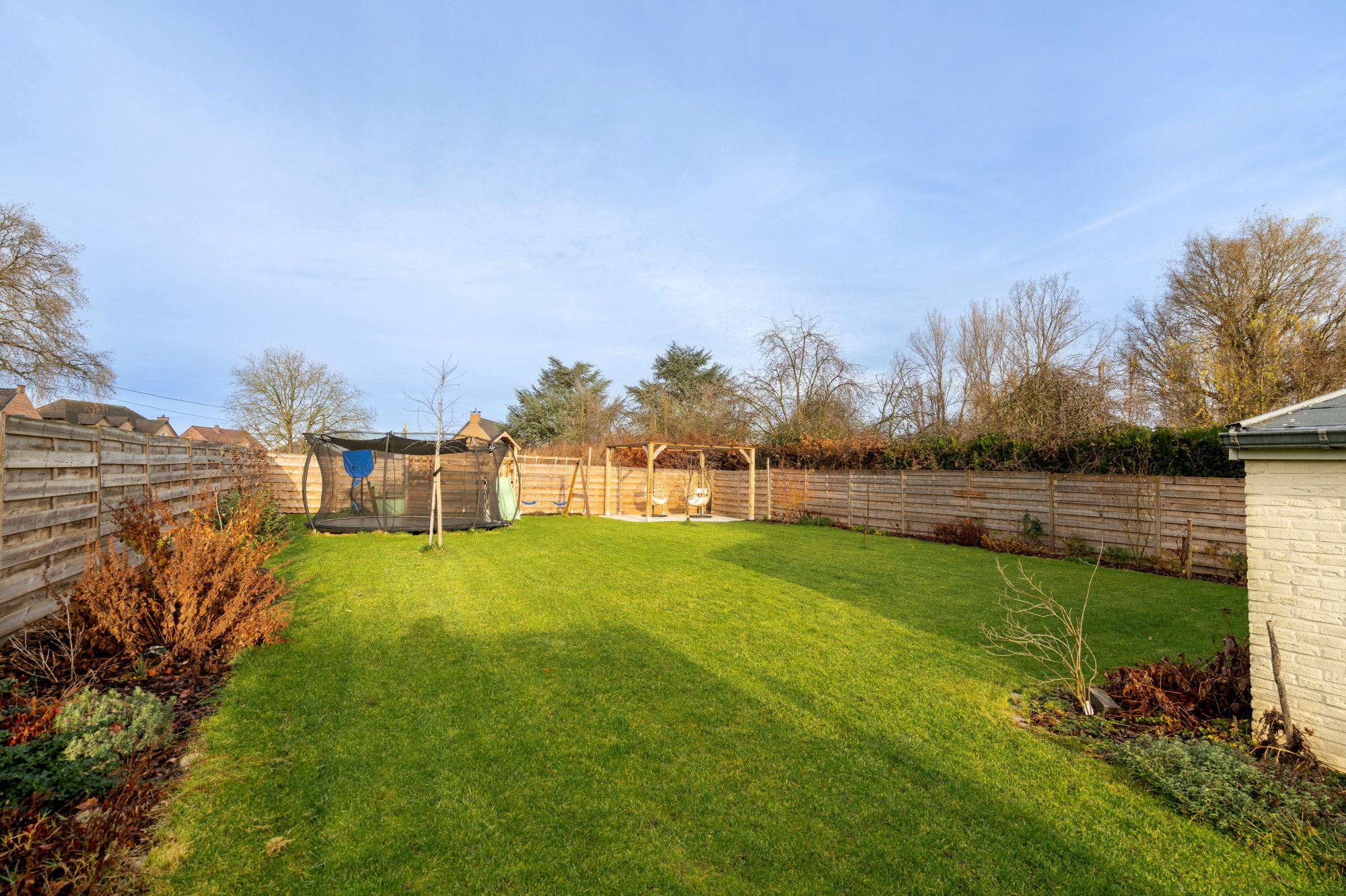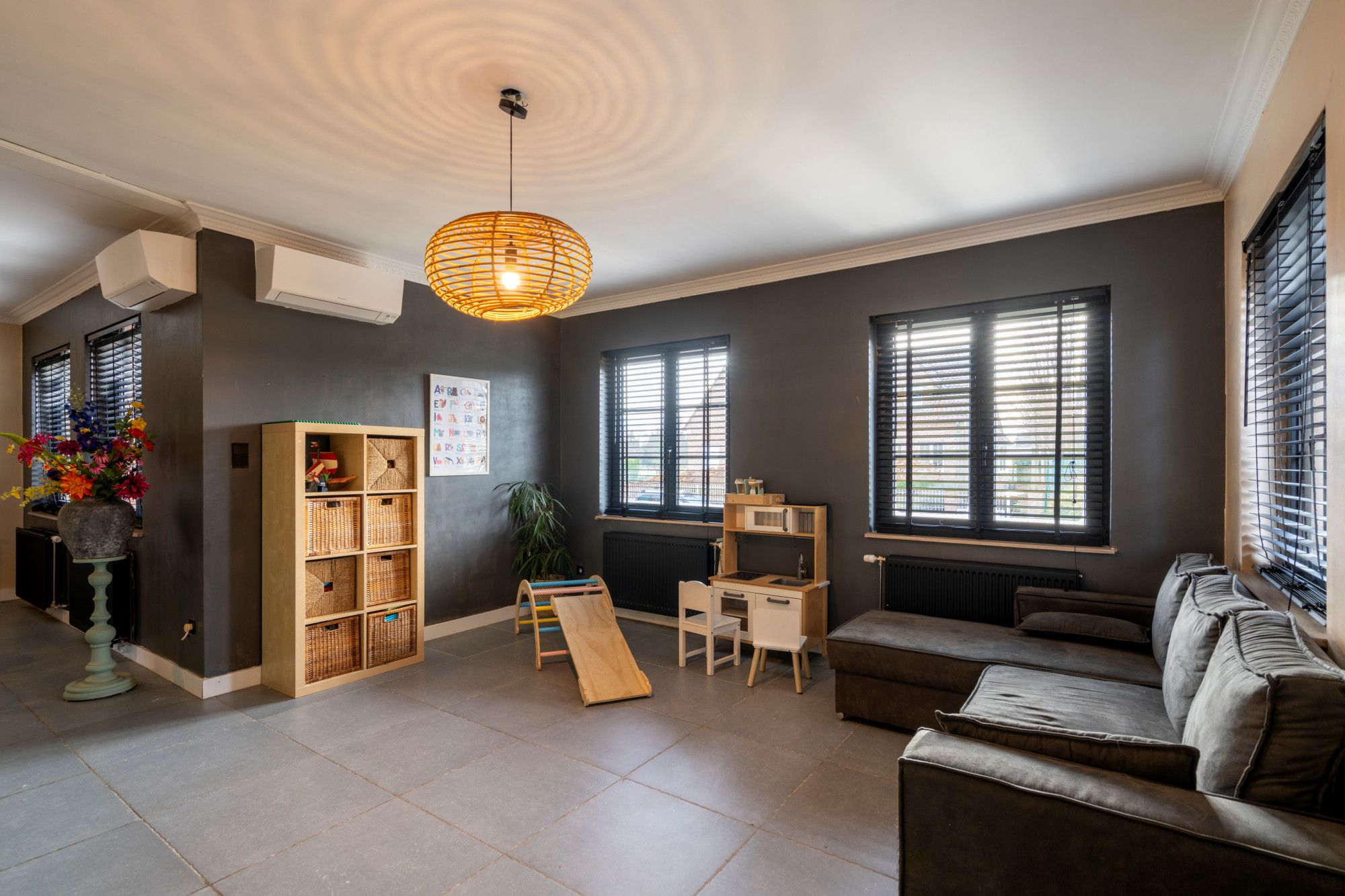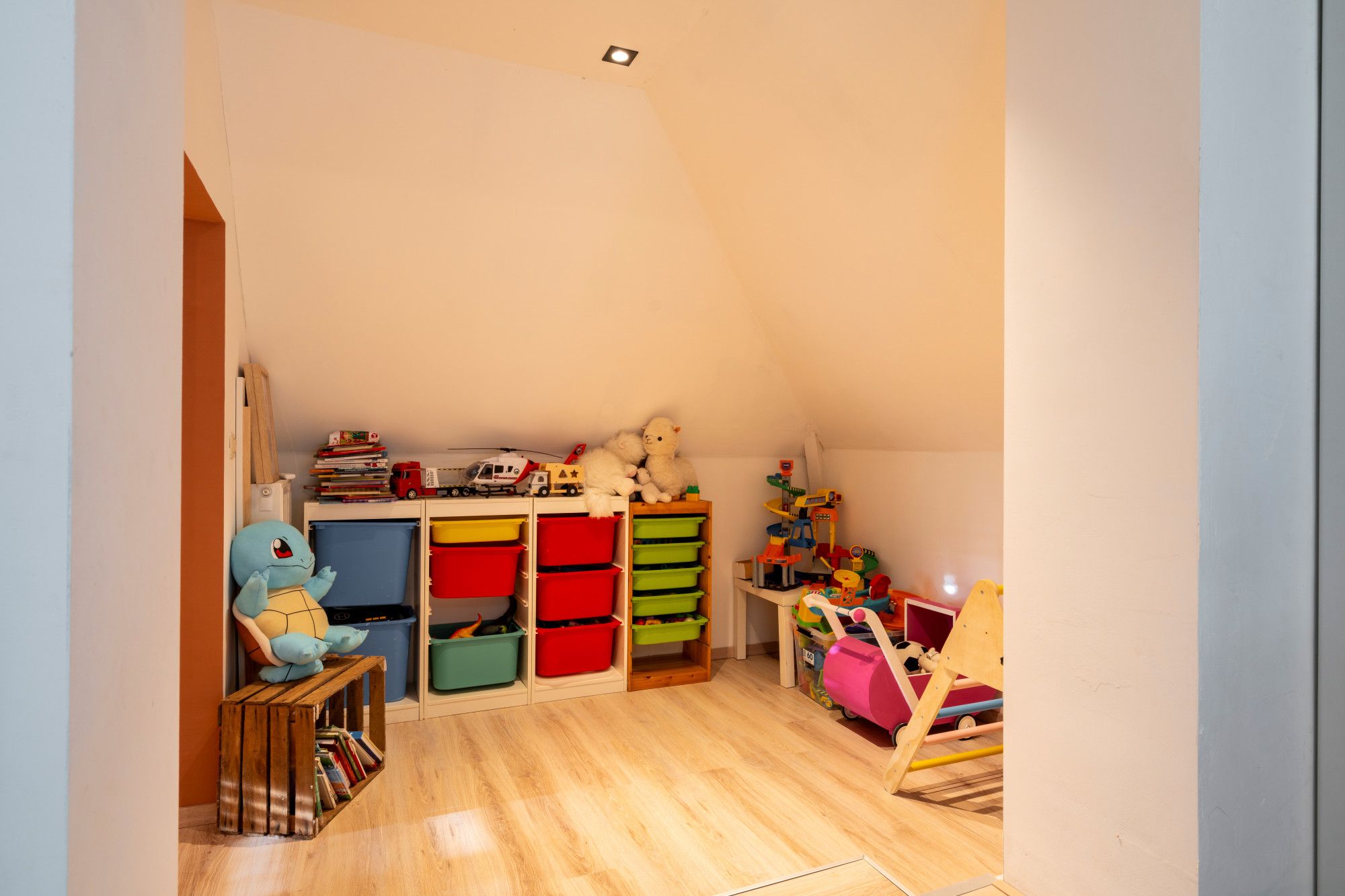 Het gelijkvloers beschikt over een ruime inkomhal, een woonkamer met twee gezellige zithoeken en een aparte eethoek, een volledig uitgeruste keuken, badkamer 1, slaapkamer 1, een wasruimte, een speelruimte en praktische bergplaats.